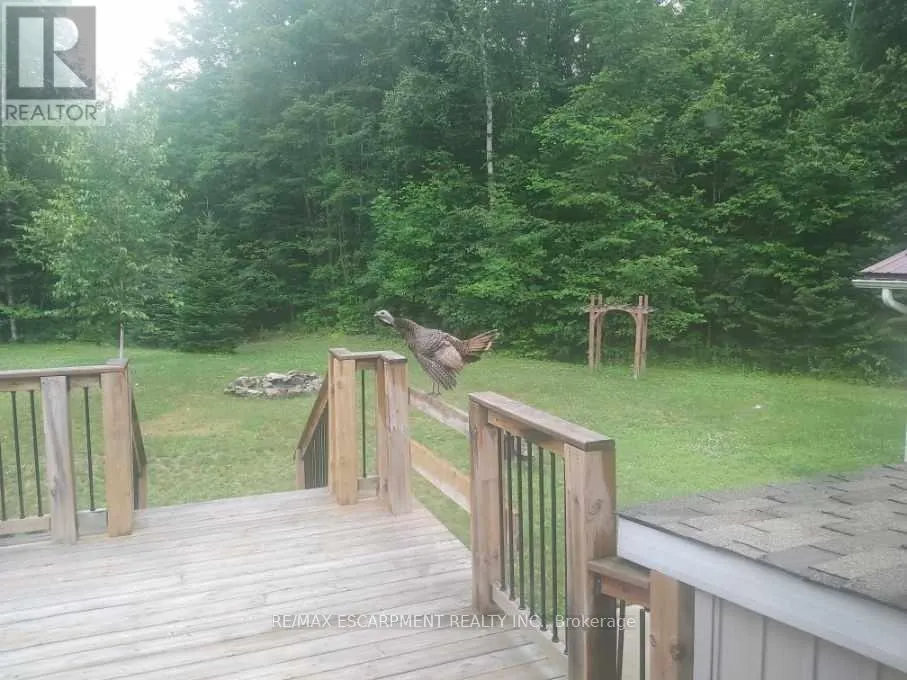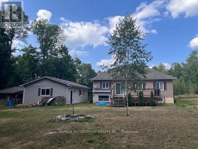 Cross Streets: -. ** Directions: From Haliburton take hwy 118 East and its about 10 mins on the right side. Tucked away on a generous 12 acre parcel of land, just minutes from the quaint town of Haliburton and surrounded by nature, this property is often visited by deer, wild turkeys , hummingbirds and many other wildlife. Scenic trails wind through the ample acreage making it a perfect spot for quads and snowmobiles or even just family hikes. Close to ATV and snowmobile trails as well as many lakes and boat launches. Inside, the homes spacious layout balances elegance with country charm. Hardwood floors, decorative ceilings and the inviting fireplace and woodstove create a cozy atmosphere throughout the open concept living and dining area, making it perfect for hosting family and friends. The kitchen is bright and spacious with tons of cupboard and counter space. The main level features a spacious primary bedroom with an ensuite and walk-in closet as well as 2 additional bedrooms and a full bathroom. The lower level includes a walk up and has excellent potential to be transformed into an in-law suite or rental space. The 4 year-old detached heated shop is great for those looking to run a business or even just tinker with hobbies. The possibilities are endless. You could use the land for making maple syrup, bee keeping, firewood, raising animals, chickens for eggs, or market farming. The possibilities are endless! This home would be great for all family types! Make this one your own! (id:27476)