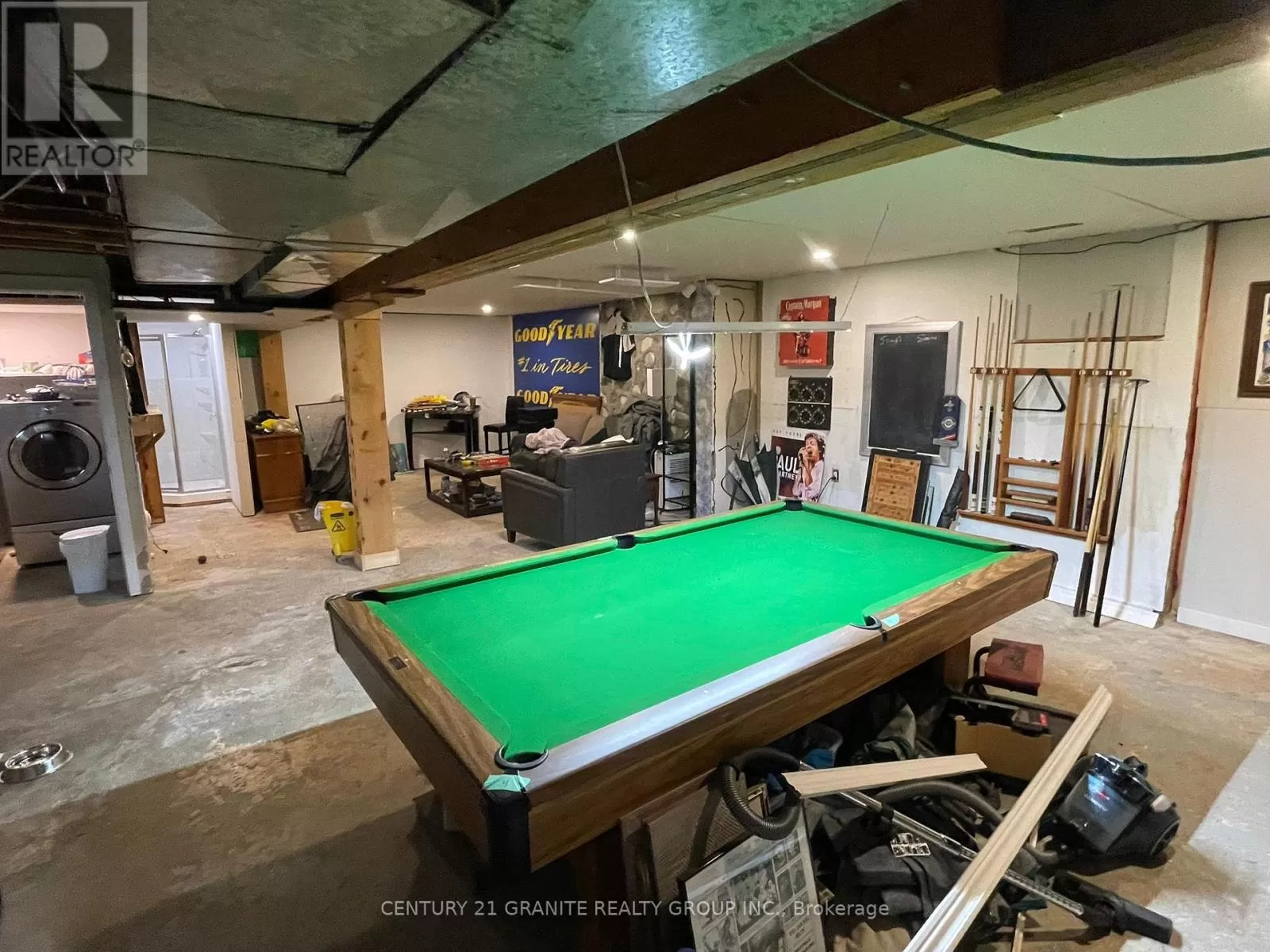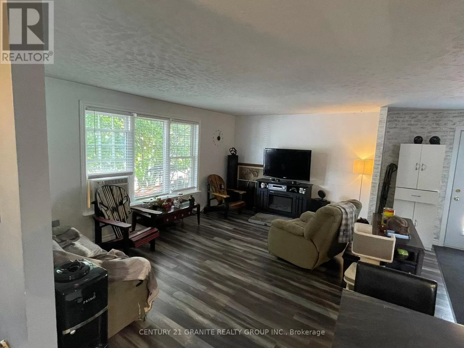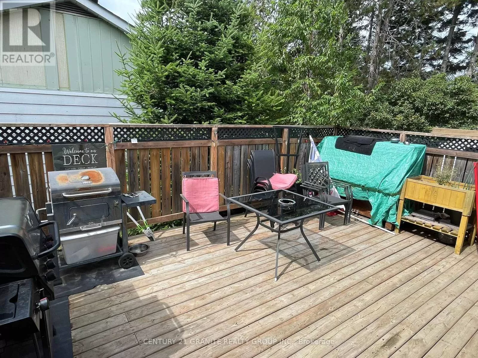 Cross Streets: Hemlock/Magnolia. ** Directions: From Bancroft, take Monck Road to Short St. Turn onto Short St then right onto Hemlock. Take to the end and turn left onto Magnolia. Cardiff- Welcome to a 3 bedroom, 2 bathroom home located on a quiet street in Cardiff. Situated beside a paved walking trail allows easy walking to the community pool, park, ice rink, school, post office, library, community center, and convenience store. Inside features include open concept kitchen, living room and dining room with 3 bedrooms and a bathroom. Downstairs is partially finished and is set up as an enjoyable 'man-cave' lounge that can be set up with a pool table, darts or your choice of recreation. The private backyard is fenced in and includes 2 portable sheds. A newer deck offers a place for BBQing and hosting. The home is heated with a 5 year old propane forced air furnace and features the added bonus of town water, sewer and garbage pickup. (id:27476)