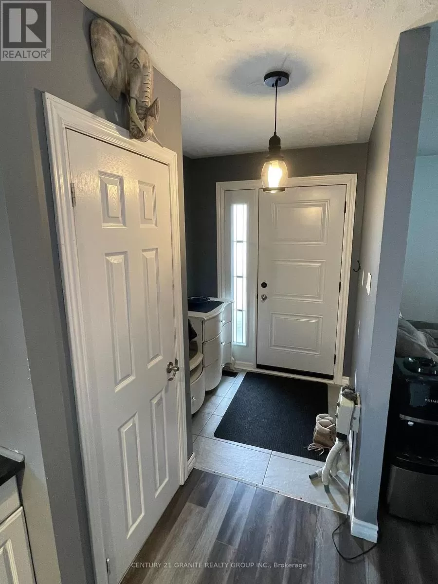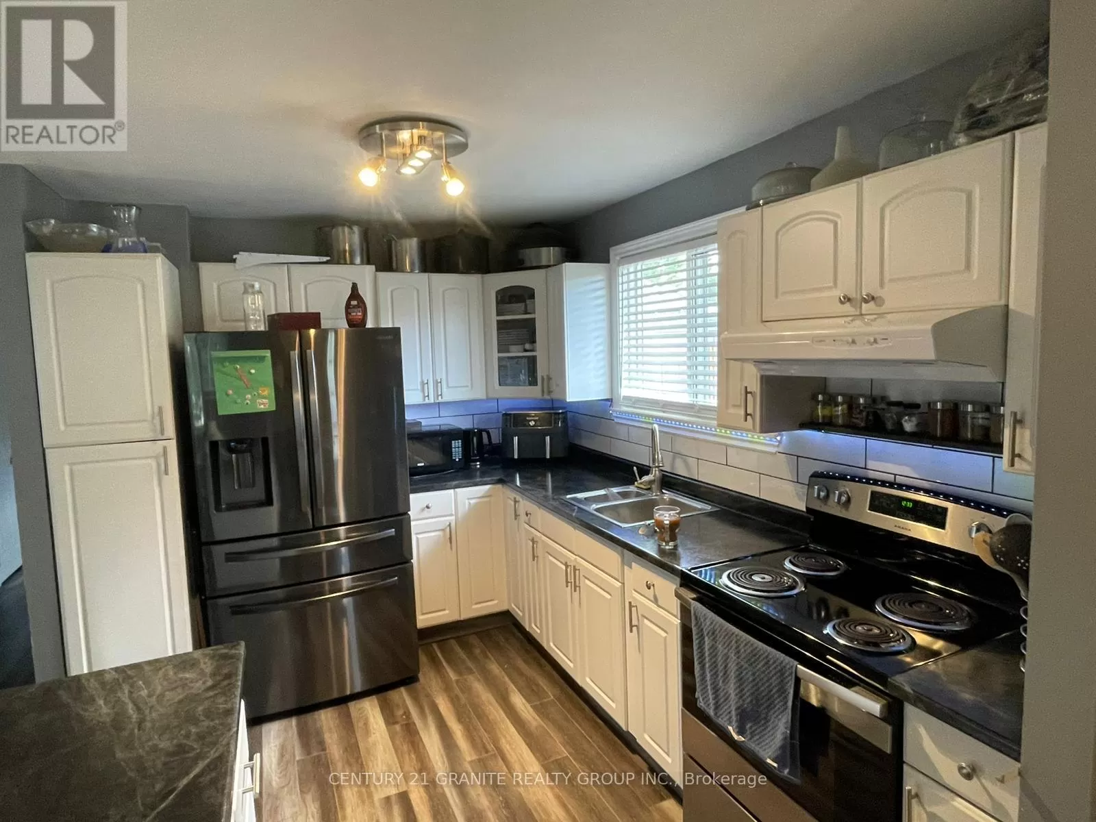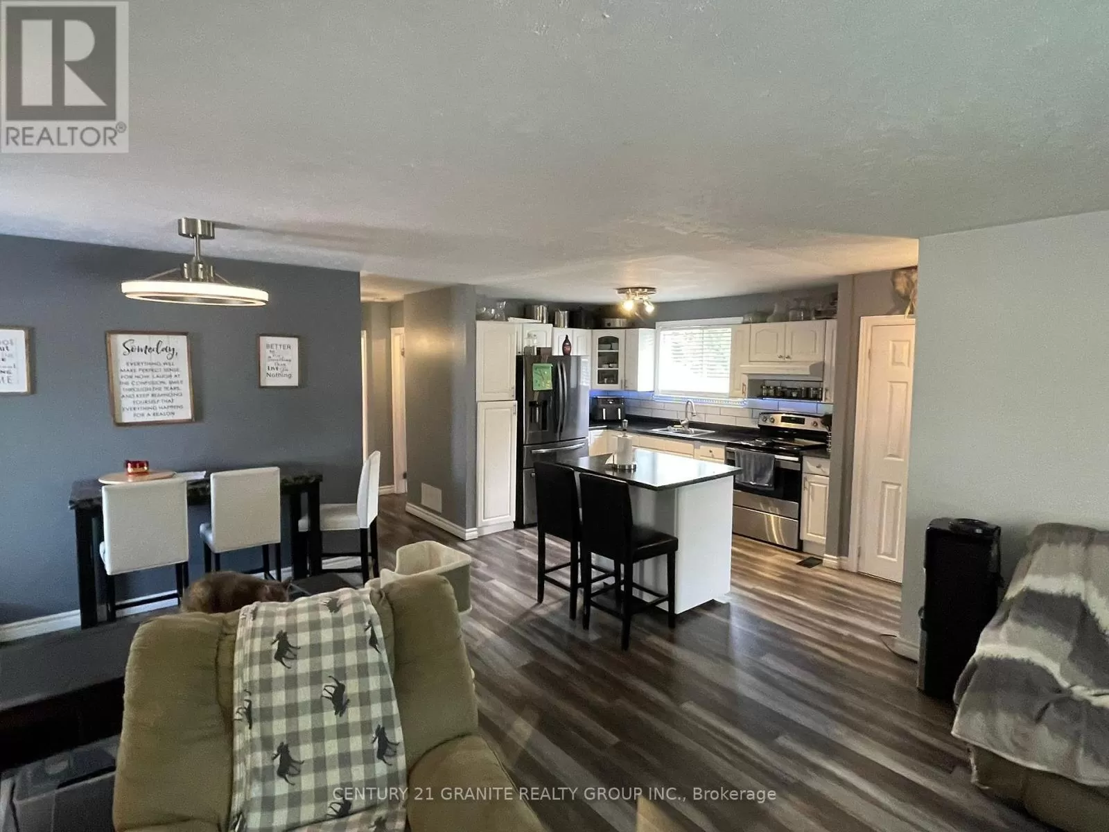 Cross Streets: Hemlock/Magnolia. ** Directions: From Bancroft, take Monck Road to Short St. Turn onto Short St then right onto Hemlock. Take to the end and turn left onto Magnolia. Cardiff- Welcome to a 3 bedroom, 2 bathroom home located on a quiet street in Cardiff. Situated beside a paved walking trail allows easy walking to the community pool, park, ice rink, school, post office, library, community center, and convenience store. Inside features include open concept kitchen, living room and dining room with 3 bedrooms and a bathroom. Downstairs is partially finished and is set up as an enjoyable 'man-cave' lounge that can be set up with a pool table, darts or your choice of recreation. The private backyard is fenced in and includes 2 portable sheds. A newer deck offers a place for BBQing and hosting. The home is heated with a 5 year old propane forced air furnace and features the added bonus of town water, sewer and garbage pickup. (id:27476)
