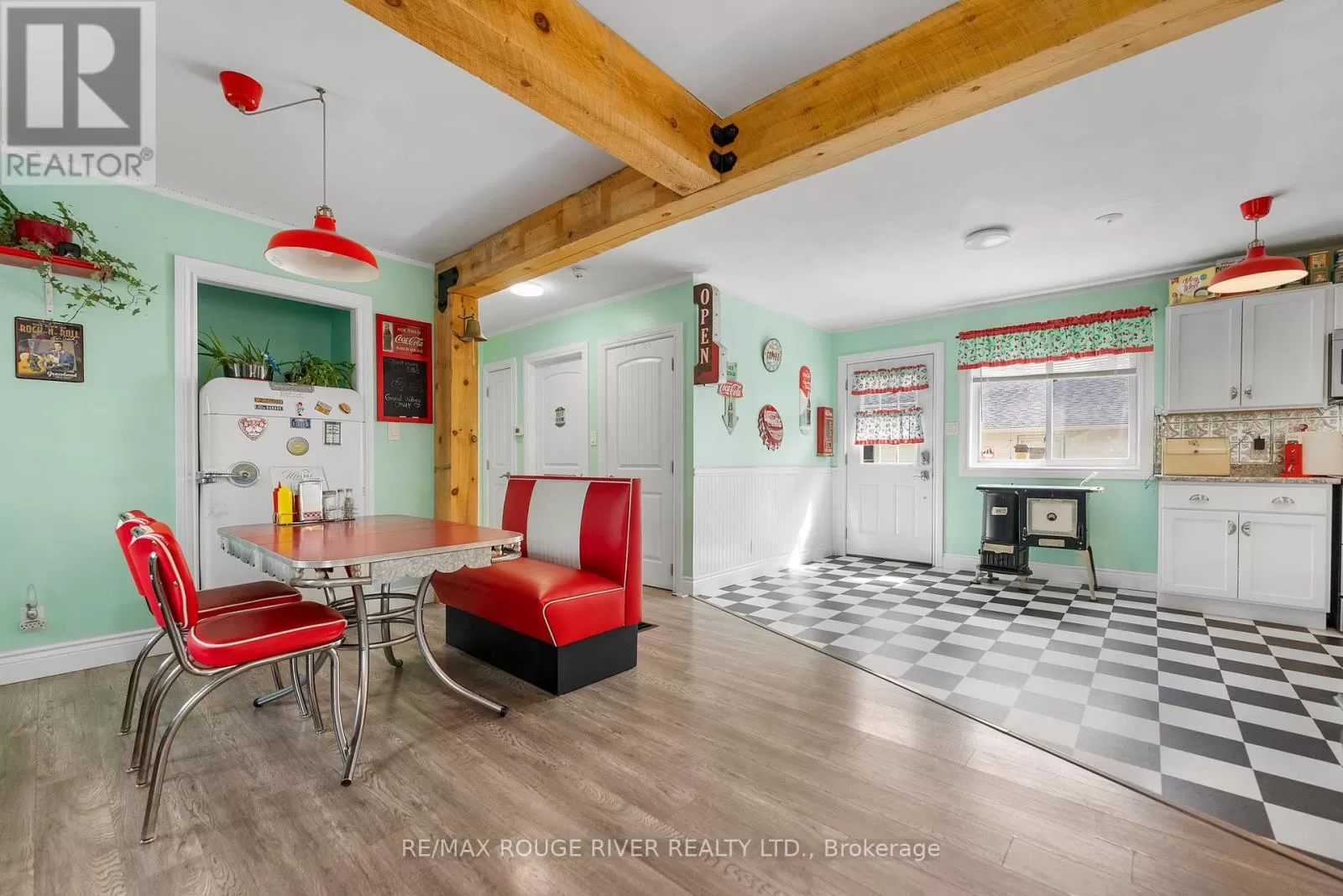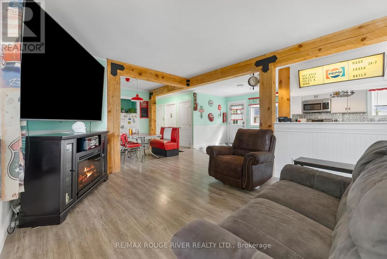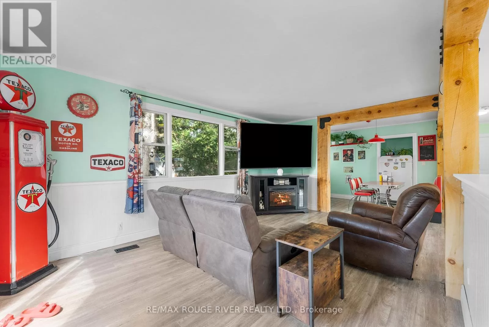 Monck and 118 Escape to Your Own Slice of Haliburton Paradise! Discover the perfect blend of comfort and tranquility at this charming 2+1 bedroom, 1 bathroom bungalow nestled on a large lot in the heart of Highlands East. This cozy retreat offers the ideal opportunity to embrace the coveted cottage country lifestyle while enjoying the convenience of year-round living. Step inside and enjoy the seamless flow of the kitchen, dining, and living area, creating generous living space that maximizes comfort and functionality. The move-in ready bungalow features single-level living for ultimate convenience, with 2 comfortable bedrooms that provide flexible space for family, guests, or a home office setup. The well-appointed full bathroom serves the home efficiently, while the practical floor plan offers privacy and convenience throughout. From the kitchen area, patio doors lead you to a private deck perfect for BBQ and outdoor gatherings, creating an ideal extension of your indoor living space. The large detached garage provides excellent space for storage or a workshop, adding valuable functionality to this well-designed property. Located in the sought-after Highlands East community, you'll enjoy easy access to pristine lakes, hiking trails, and all the outdoor adventures the Haliburton Highlands region has to offer. Whether you're looking for a peaceful retreat, weekend getaway, or smart investment in Ontario's cottage country, this property delivers on all fronts. The convenient single-level living makes it ideal for all ages, while the low-maintenance bungalow design provides an exceptional opportunity in one of Ontario's most desirable regions. Don't miss this opportunity to own your piece of the Haliburton Highlands just 15 minutes from Bancroft and 1 hour from Peterborough! (id:27476)