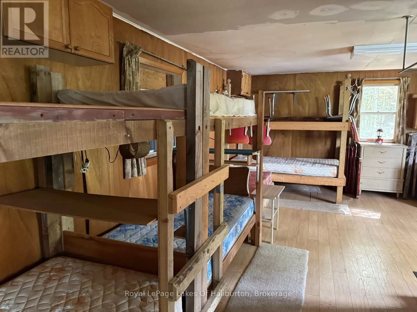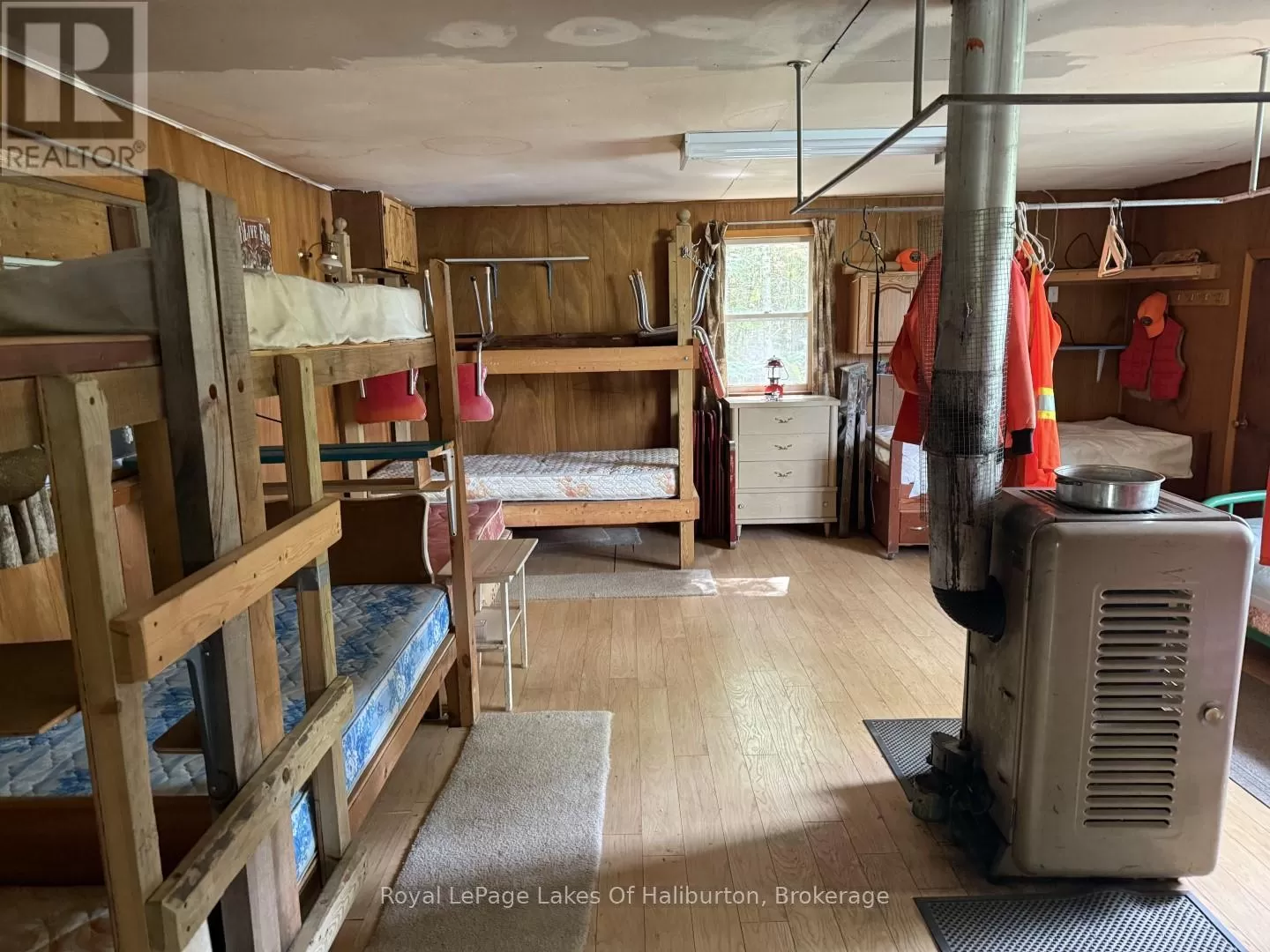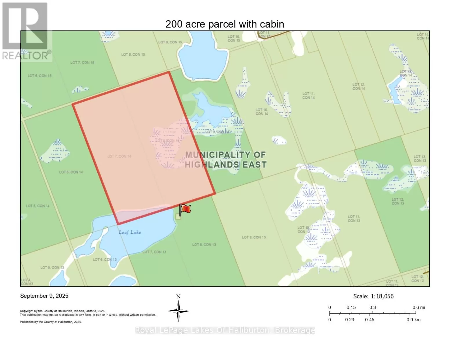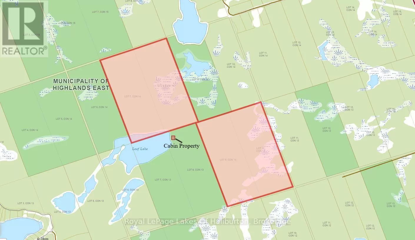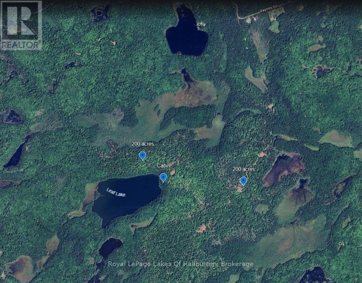 Cross Streets: Highway 118 & Paynes Road. ** Directions: Highway 118 to Paynes Road to #1407. Wilderness Retreat! A rare offering of two separately deeded 200-acre parcels abutting hundreds of acres of Crown land, creating unmatched privacy and opportunity. One parcel features an 860 sq ft cabin with over 1400 ft of waterfront on Leaf Lake. With only one other private owner on the lake, the rest being Crown land, this is truly a secluded retreat. Leaf Lake is approx. 50 ft deep and stocked with rainbow trout, offering excellent fishing and beautiful south/west exposure for unforgettable sunsets.The cabin includes a kitchen and common room, oil furnace, generator plug-in, lake water system, and two privies. Relax on the deck with spectacular views, or follow the path down to the shoreline. A 12' x 20' garage, crawl space under the kitchen, and good cell service with satellite add convenience. $32,000 spent on the 2.3 km access road from Paynes Road. The second 200-acre parcel is a mixed bush haven with two natural ponds, also adjoining extensive Crown land. Together, these properties provide an unparalleled playground for outdoor enthusiasts ideal for hunting, fishing, hiking, or creating your own private wilderness escape. 1407 Paynes Rd is not the legal or identified address of the subject properties, but merely a reference point for the laneway entrance off Paynes Rd. (id:27476)