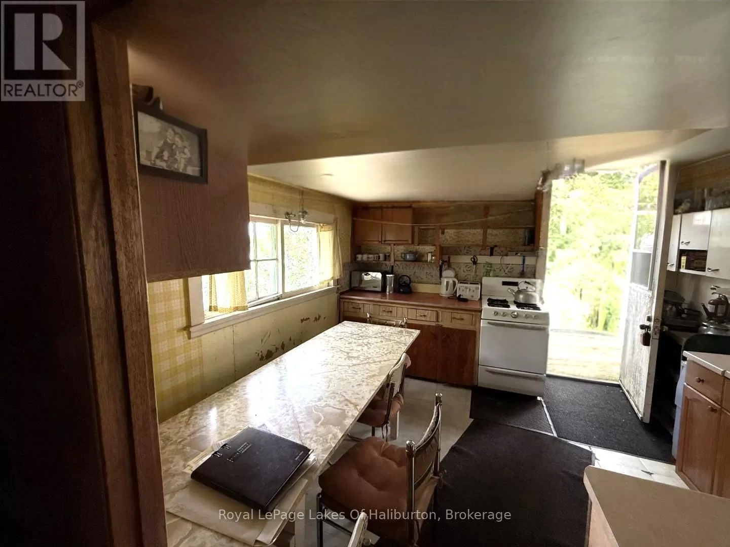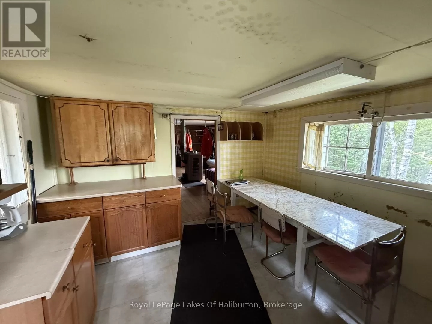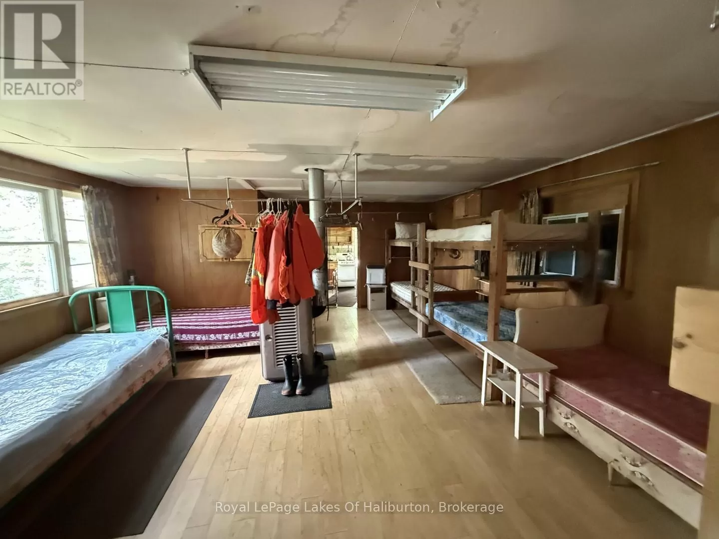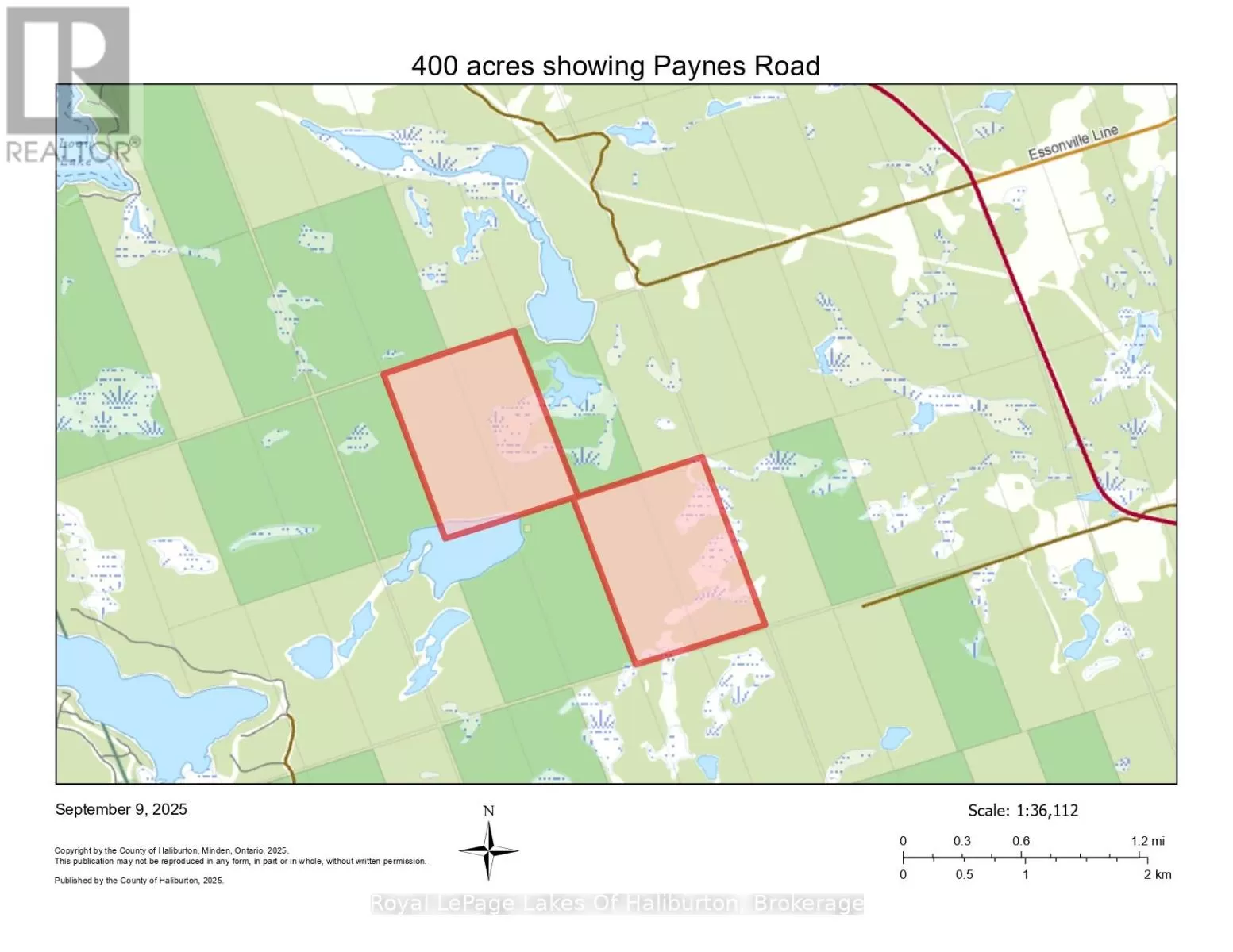 Cross Streets: Highway 118 & Paynes Road. ** Directions: Highway 118 to Paynes Road to #1407. Wilderness Retreat! A rare offering of two separately deeded 200-acre parcels abutting hundreds of acres of Crown land, creating unmatched privacy and opportunity. One parcel features an 860 sq ft cabin with over 1400 ft of waterfront on Leaf Lake. With only one other private owner on the lake, the rest being Crown land, this is truly a secluded retreat. Leaf Lake is approx. 50 ft deep and stocked with rainbow trout, offering excellent fishing and beautiful south/west exposure for unforgettable sunsets.The cabin includes a kitchen and common room, oil furnace, generator plug-in, lake water system, and two privies. Relax on the deck with spectacular views, or follow the path down to the shoreline. A 12' x 20' garage, crawl space under the kitchen, and good cell service with satellite add convenience. $32,000 spent on the 2.3 km access road from Paynes Road. The second 200-acre parcel is a mixed bush haven with two natural ponds, also adjoining extensive Crown land. Together, these properties provide an unparalleled playground for outdoor enthusiasts ideal for hunting, fishing, hiking, or creating your own private wilderness escape. 1407 Paynes Rd is not the legal or identified address of the subject properties, but merely a reference point for the laneway entrance off Paynes Rd. (id:27476)