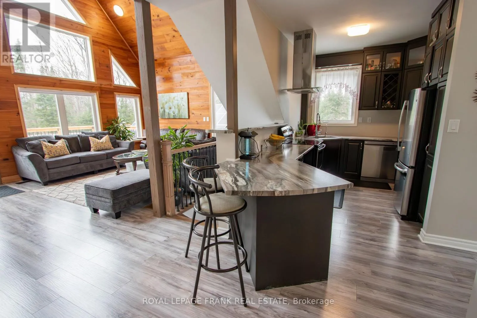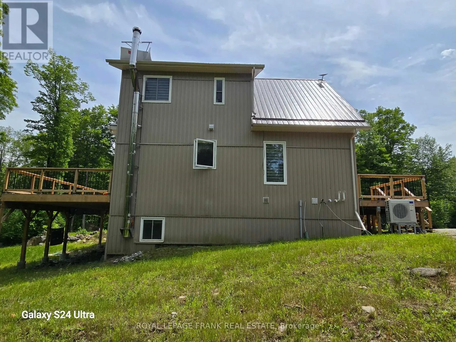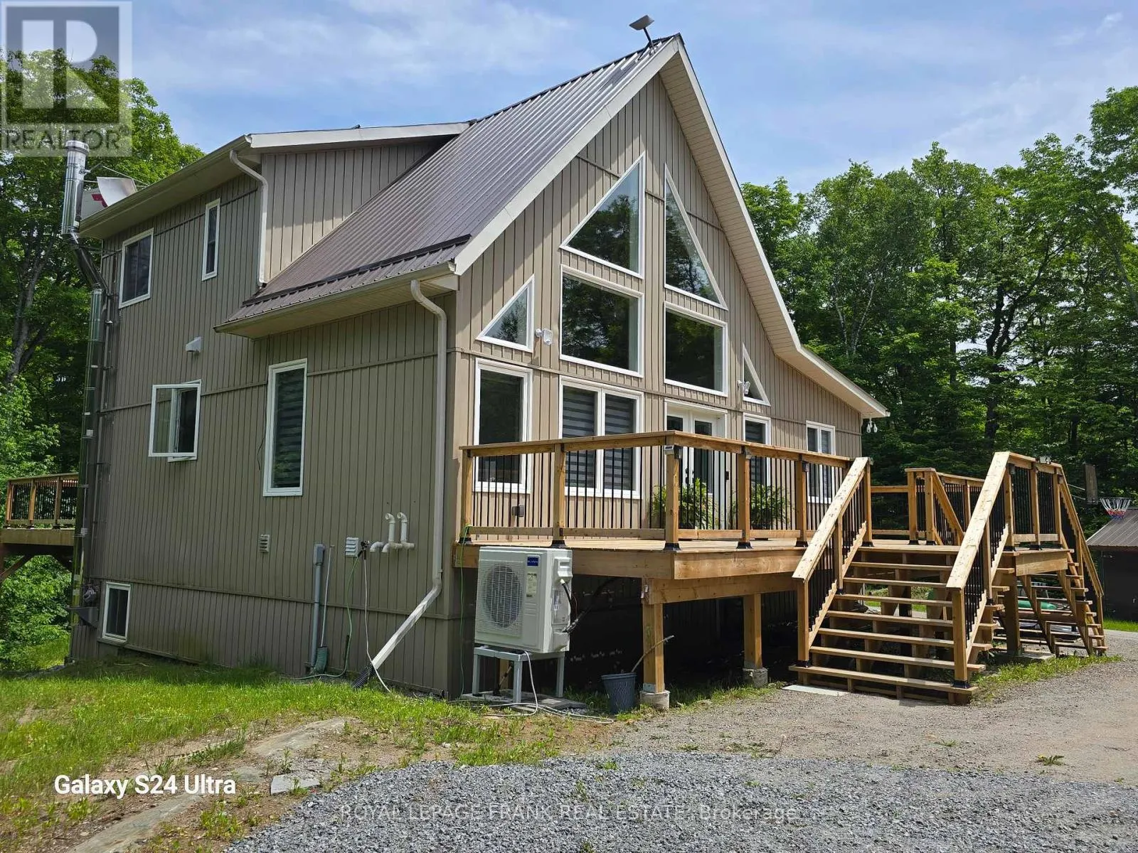 Cross Streets: HWY 118/Cheddar Rd. ** Directions: Hwy 118/Cheddar Road. **Luxury Off-Grid Muskoka-Style Home on 17 Wooded Acres**This stunning, newly constructed (2023) "Luxury Muskoka Style House" offers complete off-grid living on 17 wooded acres. While currently off-grid by choice, the property is conveniently located just 250m from the power lines on Hwy 118, making grid connection a straight forward option.**Key Features:*** **Off-Grid Power System:** A state-of-the-art 30KW solar panel system with 40KW batteries, installed in 2023, is complemented by a 15KW inverter, producing up to 30KW during peak summertimes.* **Backup Generators:** The system includes a 22KW Generac propane generator with automatic switch and a 20KW Briggs & Stratton generator with remote operation.* **Superior Construction:** Built with no expense spared, the home features ICF foundation walls, spray foam insulation with batts on top, and expansive bay windows on the west side for abundant natural light.**Recent Upgrades:**The current owners have invested significantly in recent upgrades, including:* House addition (\\$90k)* Front and rear decks (\\$70k)* Finished walk-out basement (\\$30k)* Solar system installation (over \\$100k)* New Generac generator (\\$14k)A final inspection document is available for your review.**Living Space:**This two-story home with cathedral ceilings offers 1840 sq.ft. above ground, plus a 932 sq.ft. finished walk-out basement, for a total of 2772 sq.ft. of finished living space.**Nature and Location:**Enjoy abundant wildlife, including deer, wild turkey, and moose, on this property adjacent to100 acres of Crown Land. Numerous lakes and beaches are just minutes away. Escape the stresses of city life and reconnect with nature in this beautiful setting, with all essential amenities nearby:* 20 minutes to Bancroft (hospitals, shopping)* 15 minutes to Wilberforce (elementary school). (id:27476)