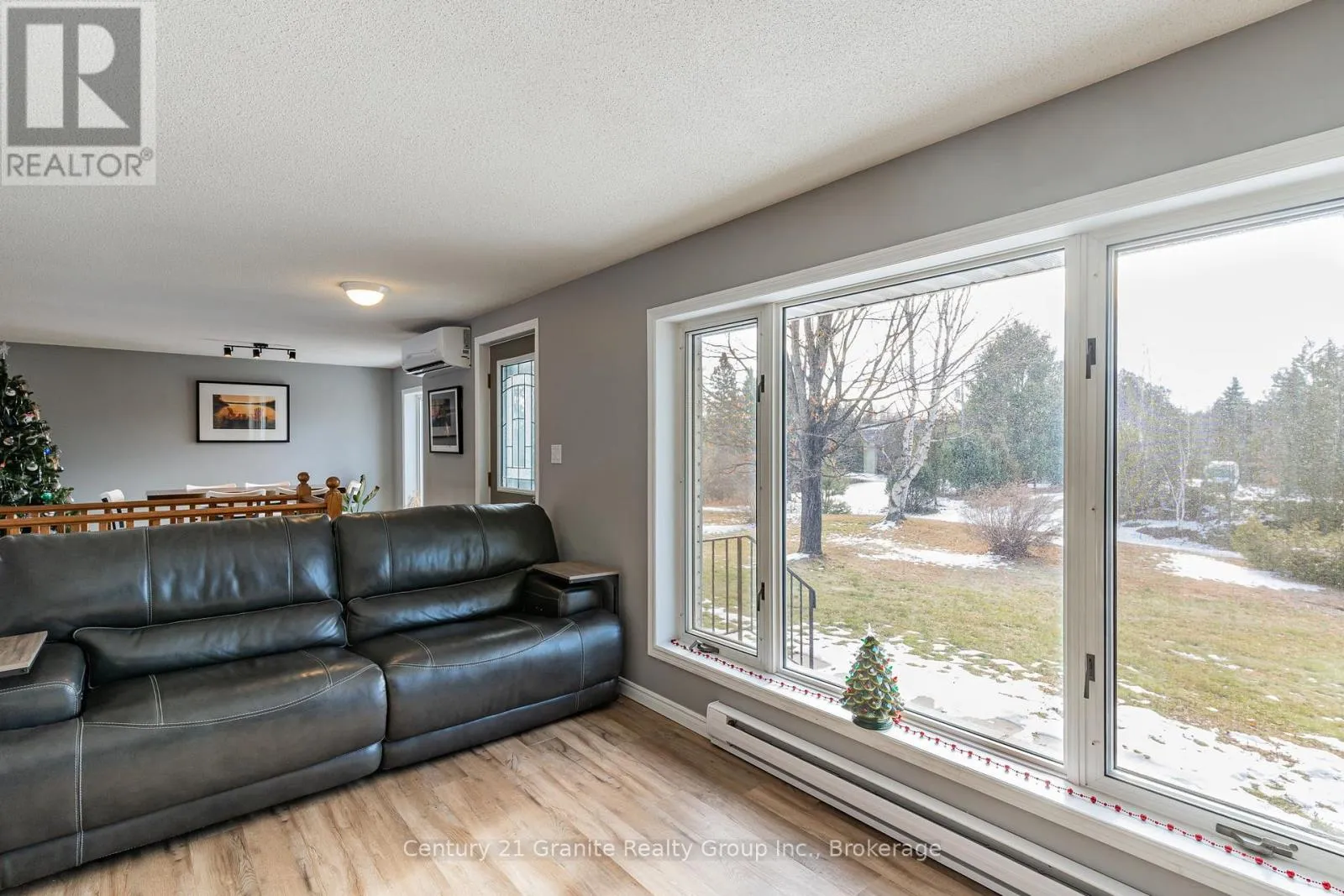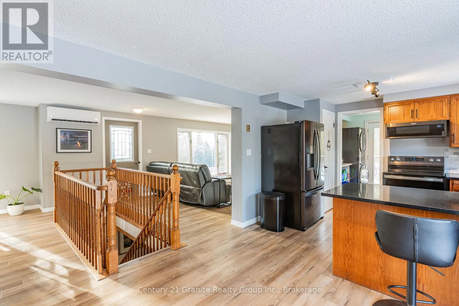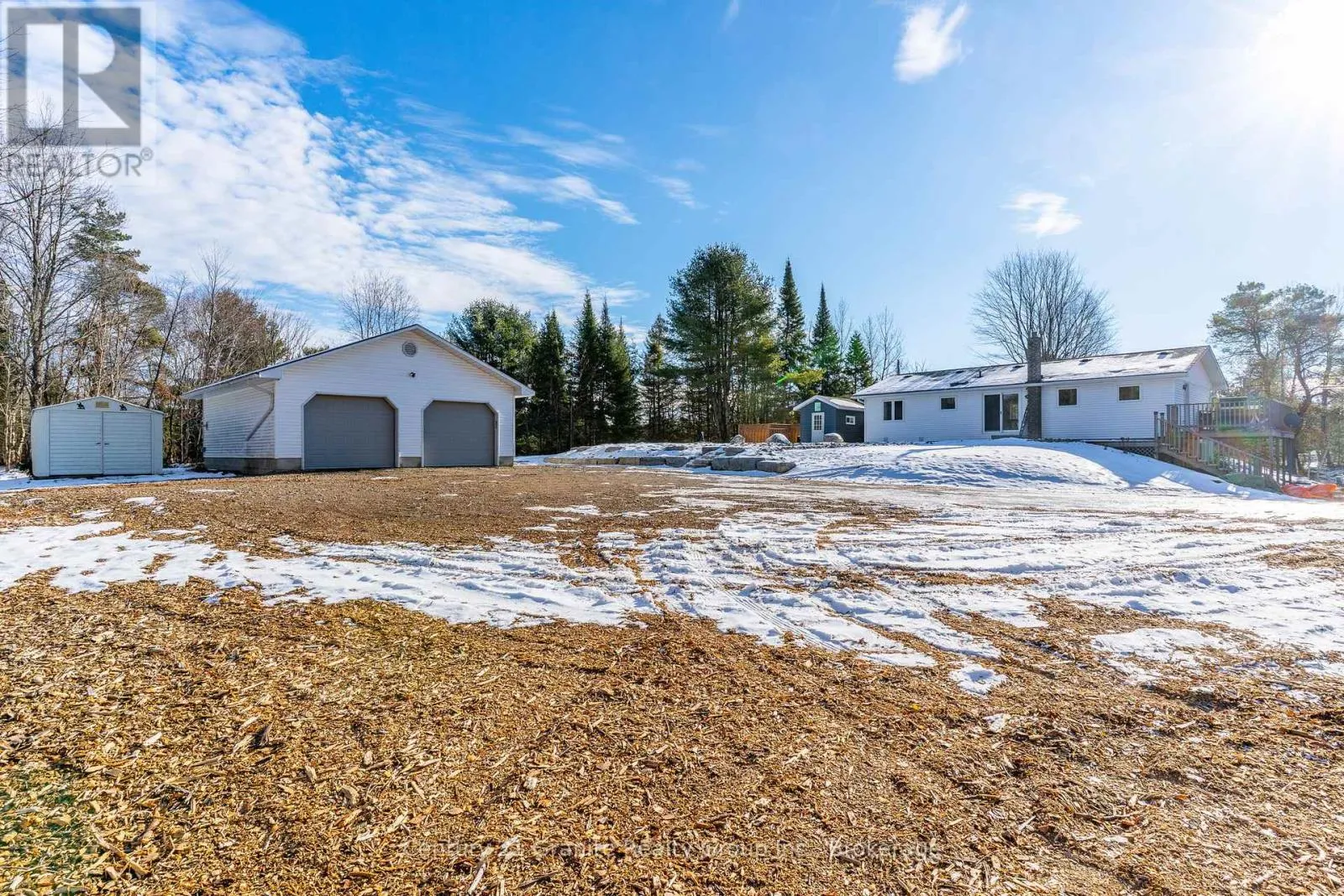 Cross Streets: 118/ Essonville. ** Directions: Highway 118 to Essonville Line. Less than 15 minutes from Haliburton, this beautifully updated home sits on 4.6 private acres with trails winding throughout the property perfect for nature lovers, families, or anyone seeking peaceful country living with easy access to town.Step inside to find a bright, refreshed interior featuring new flooring, fresh paint, brand-new appliances, and quartz countertops. Comfort is a priority with a new air conditioner and a brand-new drilled well, giving peace of mind for years to come.The home includes 1.5 bathrooms and 2 + 2 bedrooms, There is an oversized 28' x 32' detached garage, offering ample space for vehicles, workshop needs, or storage.The walkout basement adds even more functional living space, featuring a large rec room and a spacious entry area, perfect for families, guests, or creating a dedicated hobby or entertainment zone.Outside, the backyard has been completely transformed into a private oasis with a new heated saltwater in-ground pool and patio, and storage shed.A move-in-ready property with modern upgrades, acreage, and amenities like this rarely comes up this close to Haliburton. Don't miss your chance to make it yours! (id:27476)