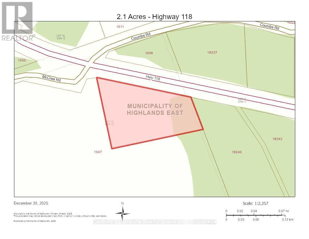 Cross Streets: Highway 118 and McCrea Rd. ** Directions: Highway 118, East of Haliburton. The subject property is at the corner of Highway 118 and McCrea Rd. Discover the perfect setting for your future Haliburton home on this private 2-acre parcel, ideally located just 20 minutes from Haliburton Village. A gated entrance at the corner of Highway 118 and McCrea Road welcomes you onto this fully fenced property, complete with an already installed driveway. The lot is cleared and level, offering multiple attractive building sites, while mature trees along the exterior boundaries provide excellent privacy. Enjoy easy, year-round access via a township-maintained road, with hydro and Bell services available at the lot line. Whether you're planning a year-round residence or a peaceful retreat, this property offers a fantastic opportunity to build in a desirable location. Book your private viewing today. Purchase price is subject to HST. (id:27476)