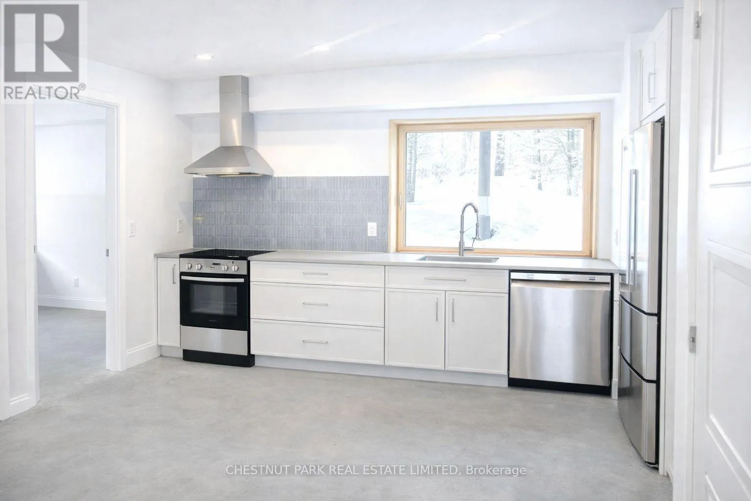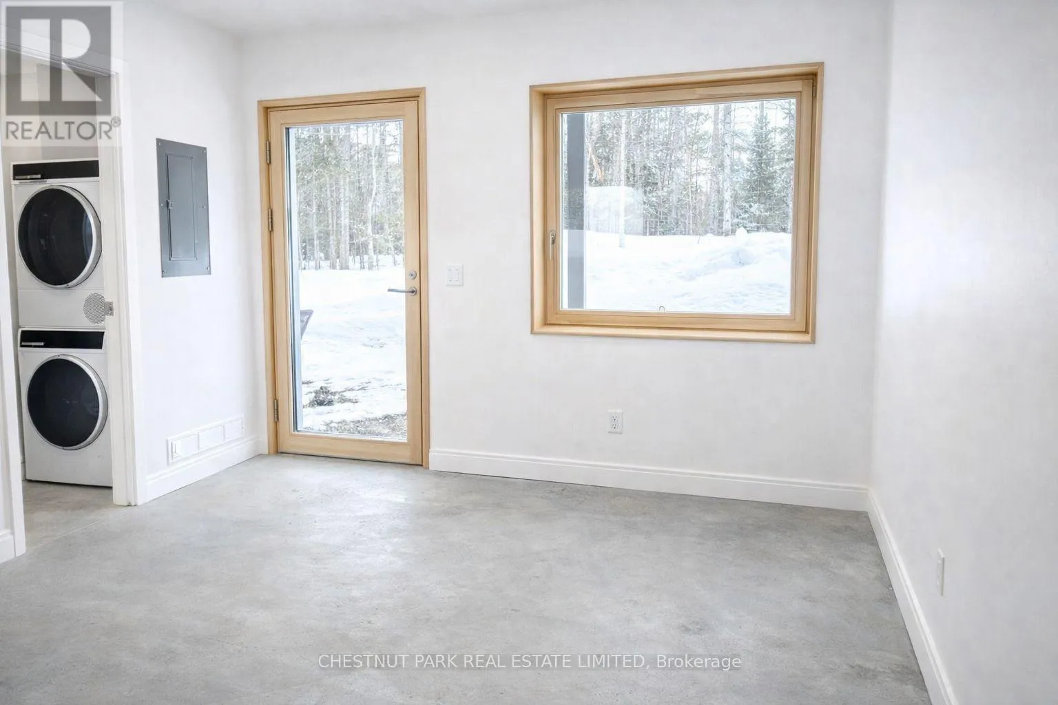 Cross Streets: Hwy 121 & Glamorgan Road. ** Directions: Hwy 121 to Glamorgan to property. Modern open-concept rental in the heart of the Haliburton Highlands, offering contemporary design and exceptional privacy just minutes from Haliburton Village. This newly constructed, never-occupied unit features sleek concrete floors, large windows that flood the space with natural light, and a functional layout ideal for comfortable everyday living. The kitchen is equipped with brand new appliances including stove, refrigerator, and dishwasher, while the convenience of in-suite laundry with new washer and dryer adds to the ease of living.The spacious bathroom is a standout, showcasing a massive walk-in tiled shower with multi-head faucet for a spa-inspired experience. Enjoy seamless indoor-outdoor living with a covered porch, perfect for creating a quiet and serene outdoor retreat.Set on a private acreage, tenants have the added benefit of enjoying the surrounding natural landscape with opportunities for walking and exploring, offering a true four-season lifestyle. Ample parking is available on site. Ideally located just a 5-minute drive to Haliburton Village, providing easy access to shops, restaurants, and amenities while maintaining a peaceful, country setting. Heat and hydro are included in the monthly rent of $1,800, offering excellent value for a modern, turnkey rental in one of Haliburton's most desirable areas. (id:27476)