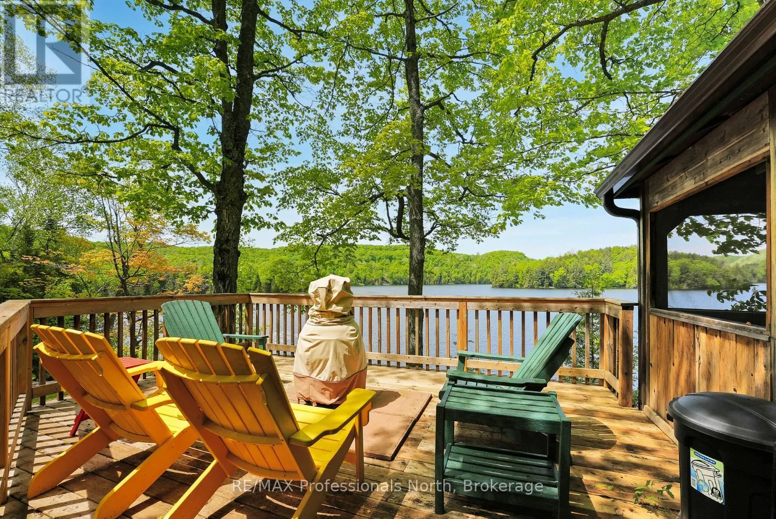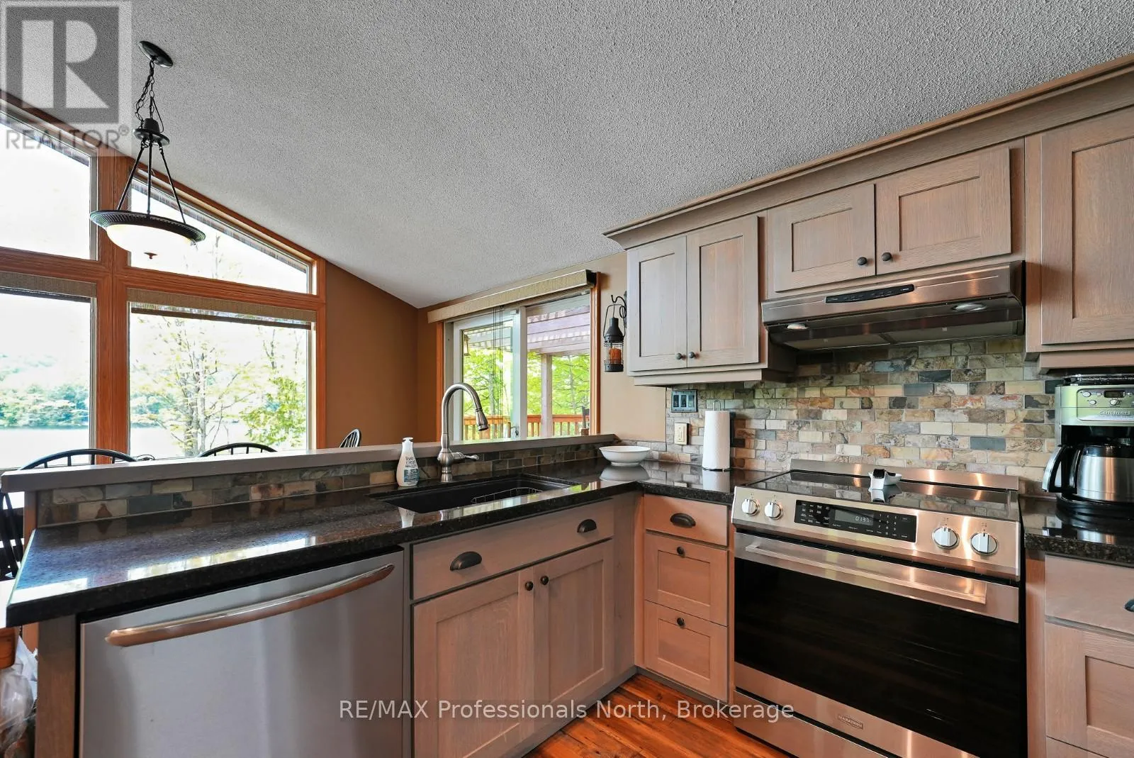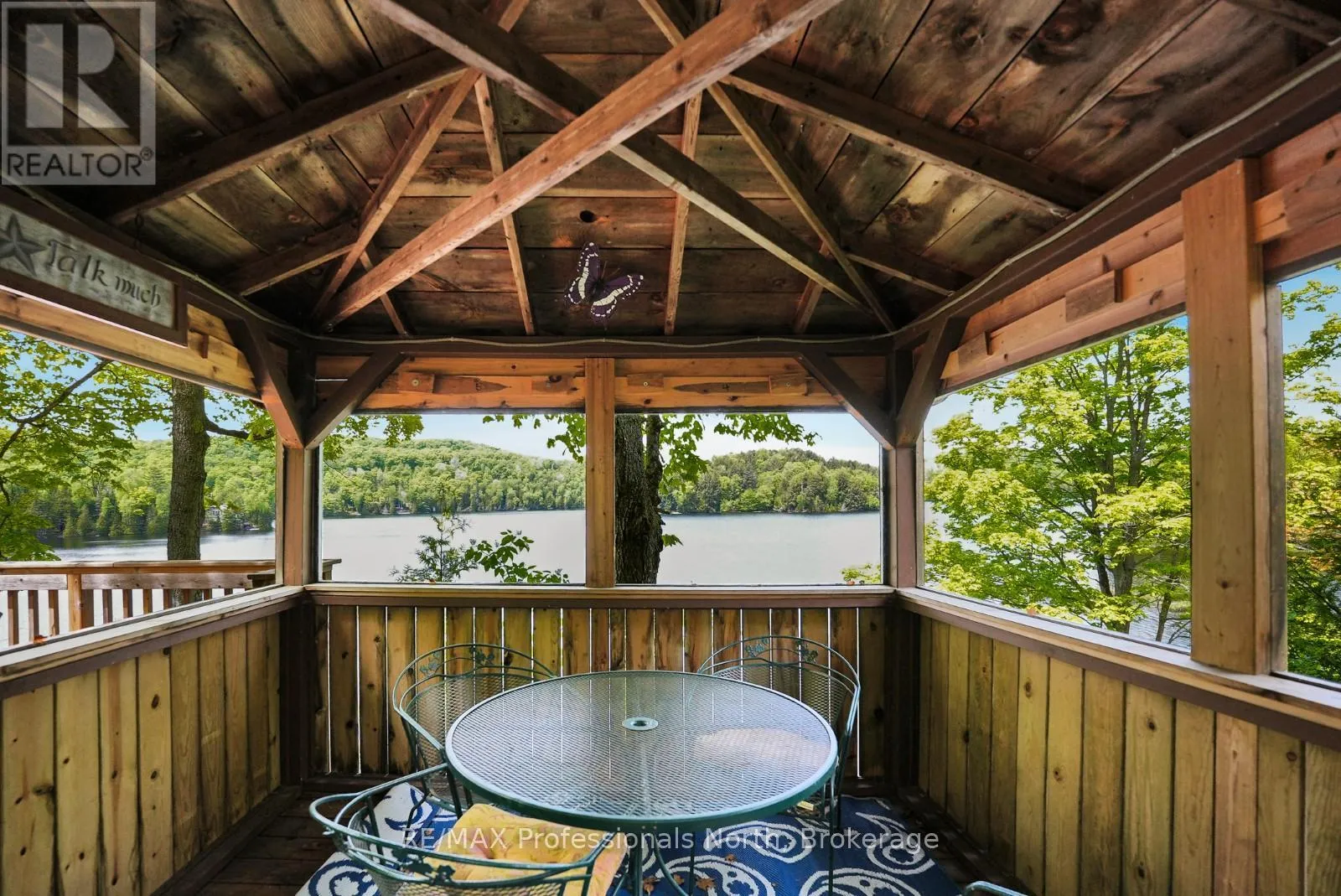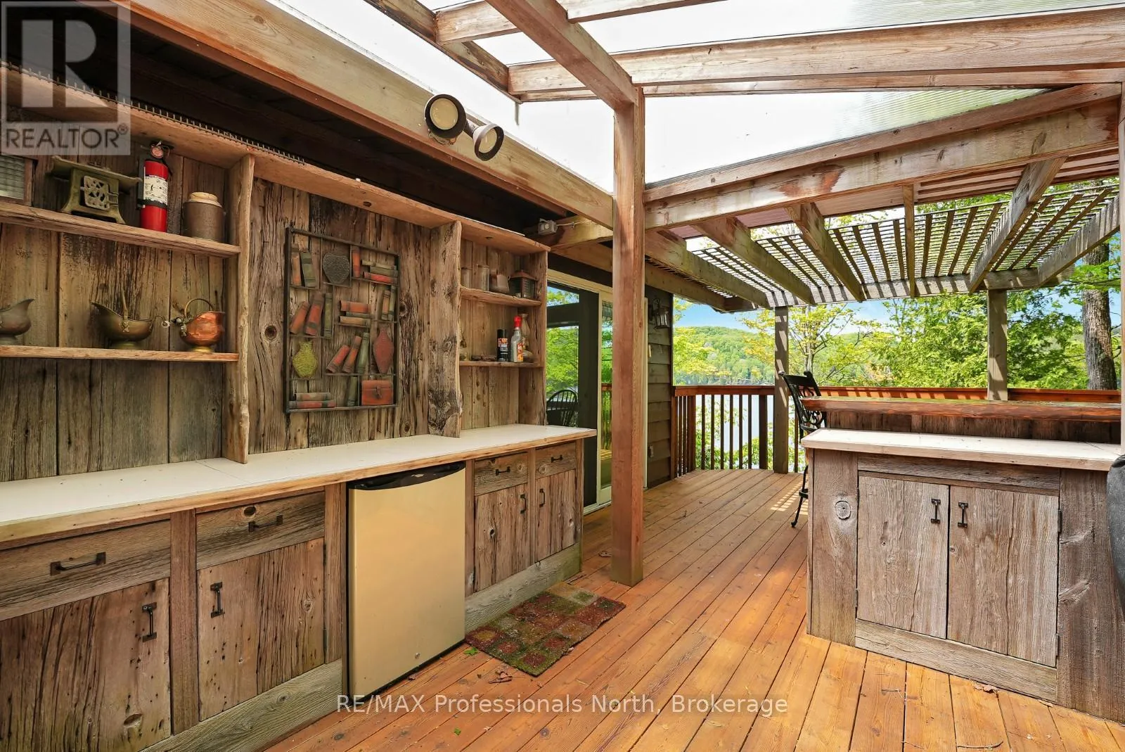 ON-118 E to Essonville Line Set on the shores of Esson Lake, this private four-level backsplit offers a quiet setting with deep water off the dock, excellent lake trout fishing, and miles of clean, navigable shoreline to explore. Known for its depth and clarity, Esson Lake is well-suited for those who enjoy swimming, boating, and time on the water. The main level features a bright, open-concept layout with cathedral ceilings, an updated kitchen, and a wall of windows framing full lake views. A wood stove adds warmth, and there is direct access to a lakeside outdoor kitchen designed for easy entertaining. Upstairs, the primary suite includes an ensuite and overlooks the main living space, alongside a second bedroom and a convenient 2-piece bath. The lower level offers an additional guest bedroom, office space, a 3-piece bath with laundry, and a utility room. On the walkout level, a spacious rec room with a pellet stove opens directly to the hot tub deck with views of the lake. A screened gazebo provides another comfortable space to take in the waterfront setting. An oversized two-car garage with an attached workshop adds practical year-round use, while the finished loft above offers flexible space for a gym, studio, or additional storage. Located just minutes from Wilberforce for everyday essentials and approximately 20 minutes to the Village of Haliburton for a wider range of amenities, this property combines privacy, space, and access to one of Haliburton County's sought-after lakes. (id:27476)