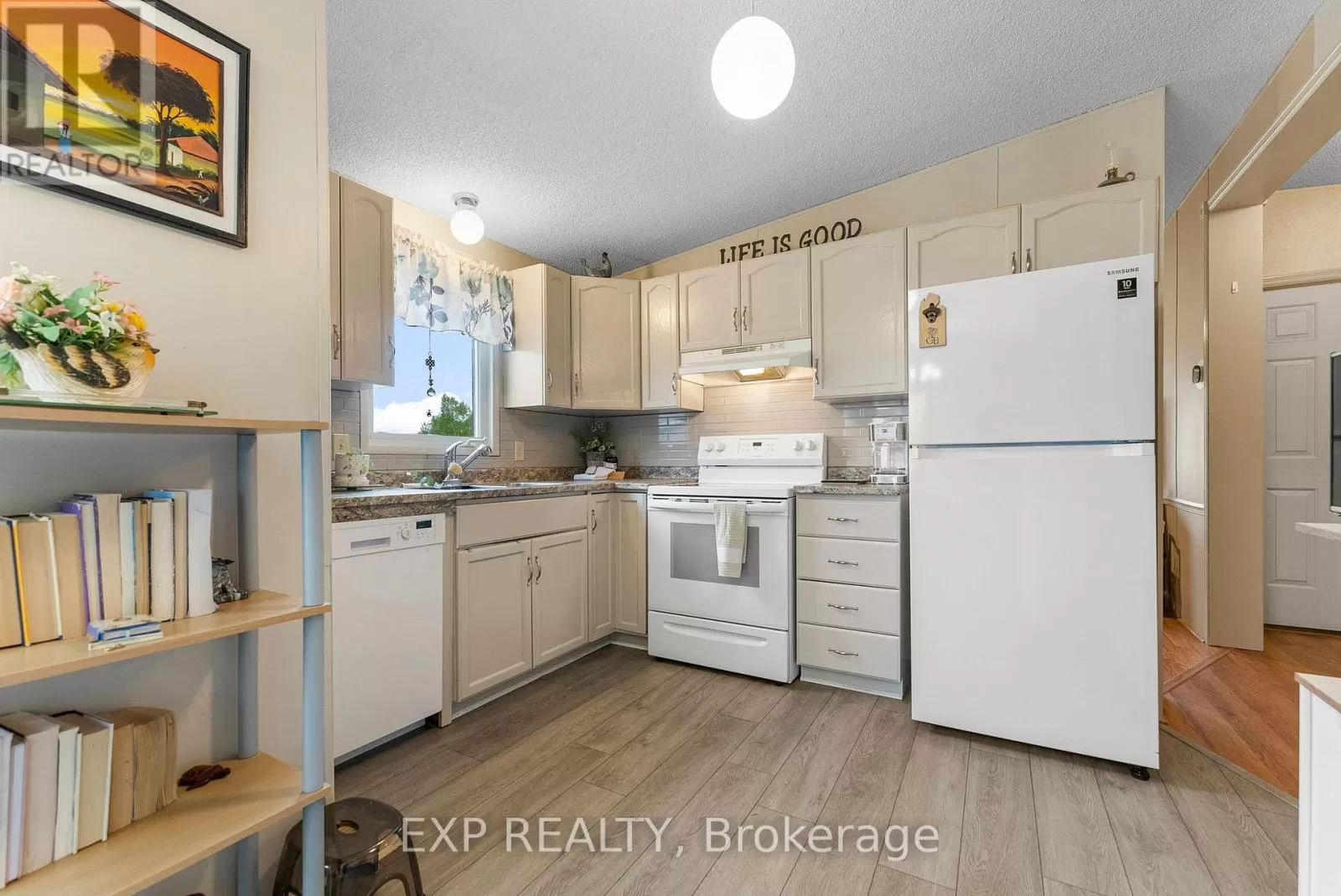Cross Streets: Lime Kiln and Gillan Roads. ** Directions: From Arnprior take the first entrance into Renfrew on Gillan Road, about 1/2 mile turn left on the Lime Kiln Road then enter Pleasant View Park on the left. Super on Sunset! Sitting in well managed and well cared for 55+ Pleasant View Park this is an ideal property for those winding down and seeking a quiet lifestyle close to the town of Renfrew with all the shopping and services along with a great hospital and yet less than 1 hour from the city of Ottawa. This home offers a low maintenance exterior along with a well kept cozy interior. Nice bright kitchen with separate dining area. Generous sized primary bedroom. Main floor laundry. Inviting living room with large windows providing lots of natural light. Generous sized deck. Detached garage with additional storage space. Comfortable living with gas heat and Central Air. Many updates including Gas furnace 2020. A/C 2018, Roof shingles 2019, Kitchen and Bath flooring 2020. Recreational trail close by. Economical Gas costs 80.00 monthly, Hydro 80.00 monthly. Park fees monthly are 587.00 that includes taxes and water testing. (id:27476)