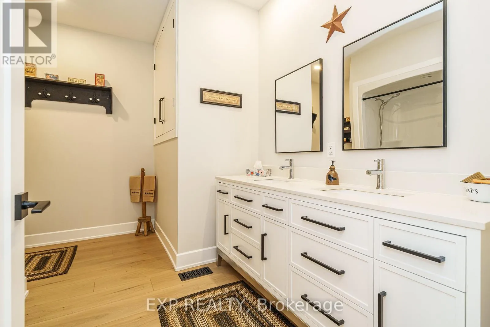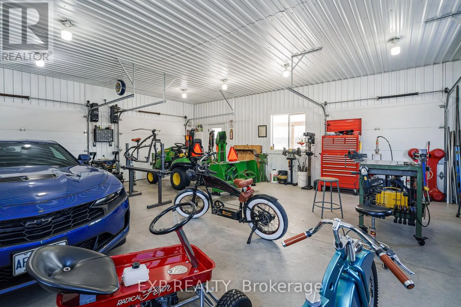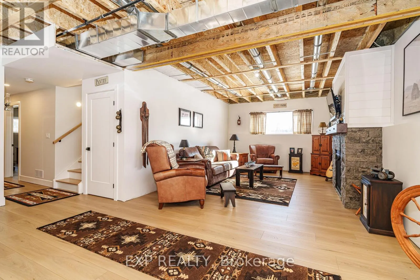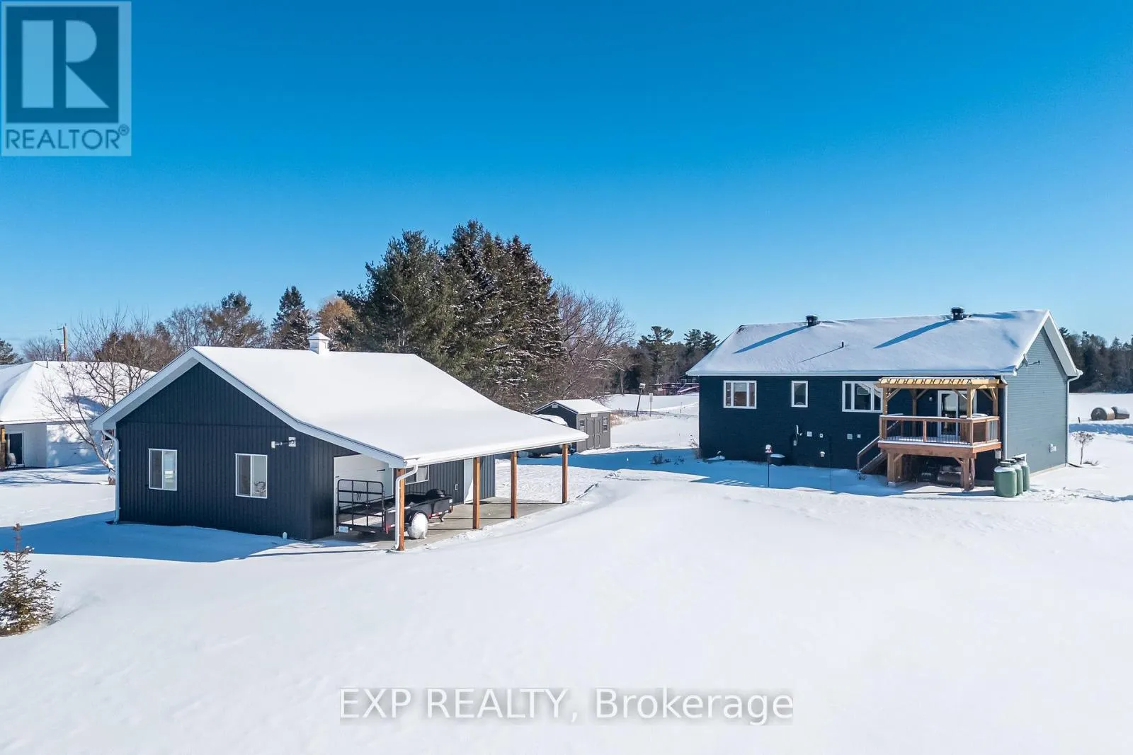 Cross Streets: River Road & Humphries Road. ** Directions: Follow River Road to the bridge over the Bonnechere River. Turn left on Humphries Road and property is on your right. Just minutes to Arnprior, located in Ferguson Beach on the Ottawa River, this exceptionally crafted high bungalow comes with a large workshop only seen in your dreams! It sits on a private, spacious 1.25 acre lot. The home offers approximately 1450 sqft above grade plus a finished basement adding another 1,000+, showcases outstanding attention to detail throughout. The main level features 9 foot ceilings, wide plank luxury vinyl flooring, quartz countertops across the entire level, pot lights, and custom lighting, creating a polished and modern feel. The layout includes four bedrooms and three bathrooms, with one bedroom currently used as a home office or workspace. Both upstairs bathrooms feature his and hers sinks, beautiful vanities and immaculate tile work. Two upstairs back-to-back electric fireplaces add warm and cozy vibes, while the propane fireplace and bar downstairs gives an additional entertainment lounge for the kids and family events. Due to the raised structural approach, the basement is bright with plenty of natural light and offers excellent additional living space for family to spread out in absolute comfort. Outside, enjoy a new deck with a custom pergola, perfect for relaxing or entertaining in the warmer months. The home is equipped with all the bell and whistle systems: water softener and filtration system, new washer and dryer, modern appliances, HRV and GenerLink. What makes this property extra special is the attached heated double garage which is spray foamed and finished with steel cladding. And here's the best for last: The $150,000 detached heated shop which offers 780 sqft of workspace plus a 300 sqft lean to for summer parties and relaxing, complete with running water, floor drains, wiring for welding, massive tube heater and 3 insulated bay doors! A 12 x 16 hickory shed with electricity provides even more storage, making this property ideal for those seeking space, functionality, and quality craftsmanship in a peaceful rural setting. (id:27476)