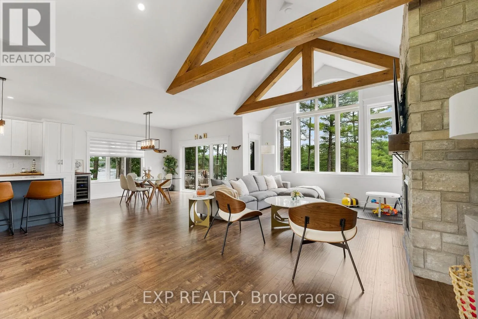 Cross Streets: Chenaux Road. ** Directions: From Hwy 17 take Chenaux Rd. Turn right onto Carriage Landing Road. Waterfront living at its finest - welcome to 103 B Carriage Landing on the Ottawa River. Surrounded by mature trees and miles of navigable water to explore, this year-round retreat offers a peaceful, private setting with exceptional fishing, boating, and outdoor recreation right outside your door. Step inside to an impressive two-storey foyer with soaring 20' ceilings and an upper balcony overlooking the grand entrance. The main level features a bright, open-concept kitchen and living area highlighted by vaulted ceilings with exposed beams and expansive windows that fill the space with natural light and showcase the surrounding landscape. The primary suite offers patio doors leading directly to the deck and hot tub - your own private outdoor escape. A walkout basement at ground level enhances the seamless connection between indoor and outdoor living, while the main floor balcony provides the perfect vantage point to relax and take in the tranquil river views. Car enthusiasts and hobbyists will appreciate the attached double garage plus an additional detached double garage, offering exceptional storage and workspace flexibility. Ideally located just minutes from Renfrew and under an hour to Ottawa, this property delivers the perfect balance of waterfront serenity and everyday convenience. Whether you're seeking a weekend getaway or a full-time waterfront residence, this Ottawa River gem truly has it all. (id:27476)