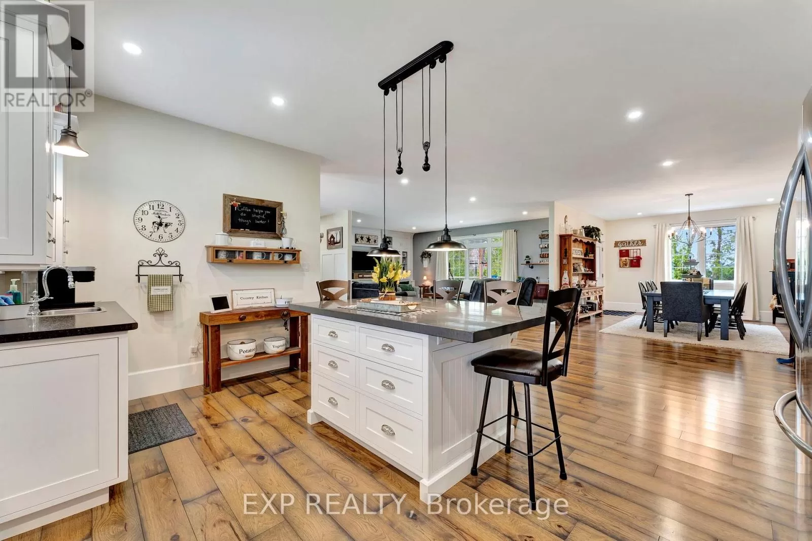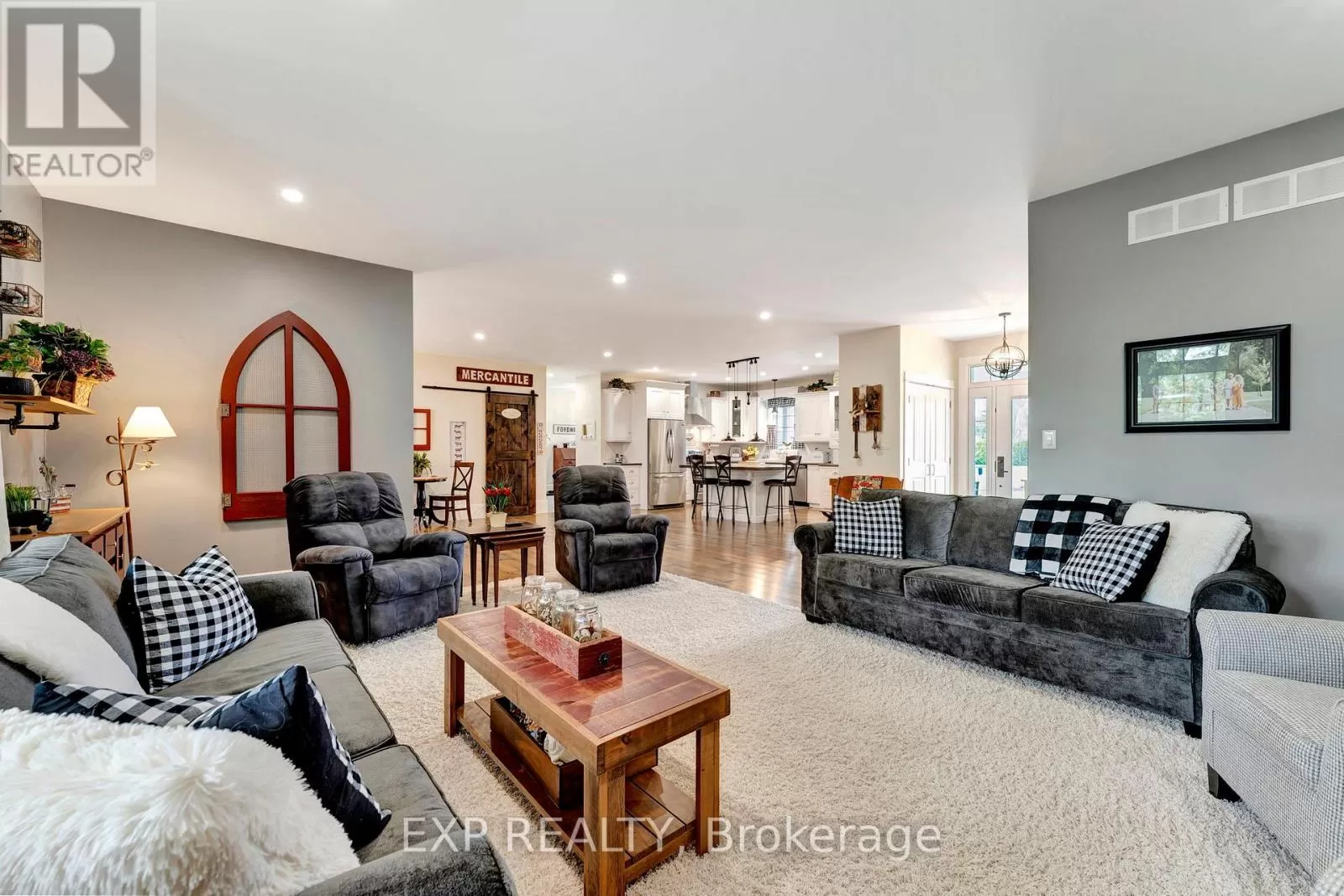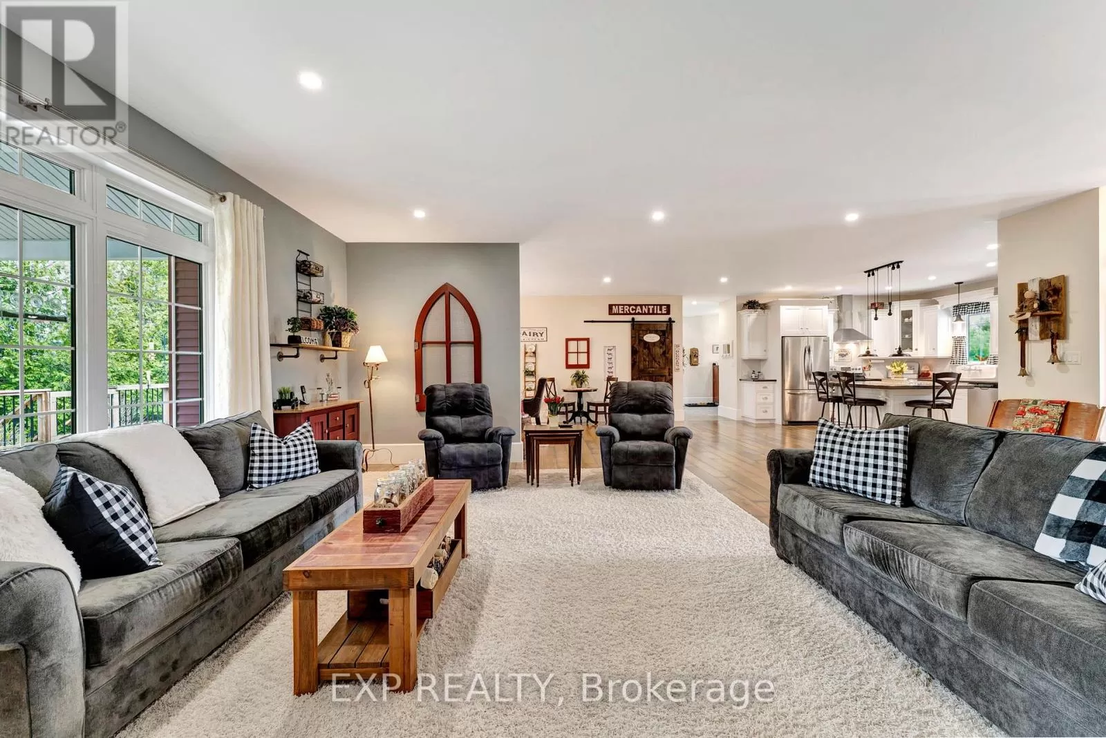 Left on Station from main Welcome to 3034 Station Road, Fordwich where luxurious country living meets thoughtful design and functionality on nearly 3.4 acres of beautifully landscaped land. This custom-built bungalow boasts over 3,000 sq. ft. above grade with accessibility in mind, offering wide hallways, doors, and a main-floor layout perfect for families or retirees alike. Inside, you'll find 4 bedrooms, 4 bathrooms, a gourmet kitchen with high-end appliances, and a sprawling dining area ideal for entertaining. The finished basement includes a massive rec room, extra bedroom, ample storage, and even a cold cellar. The heated attached triple garage and oversized workshop with separate heat, power, and water are a dream for hobbyists or entrepreneurs. Modern comforts include a high-efficiency propane furnace, central air, water treatment systems, partial generator, and smart layout with main-floor laundry and mudroom. Enjoy tranquil pond views, peaceful walking trails, and nature right outside your door, all while being minutes from the heart of Fordwich and nearby towns like Wingham and Listowel for shopping, schools, and healthcare. Whether you're raising a family, downsizing with style, or need space to grow your business from home, this stunning property offers unmatched versatility, privacy, and quality craftsmanship. Book your private showing today and discover everything this one-of-a-kind home has to offer! (id:27476)