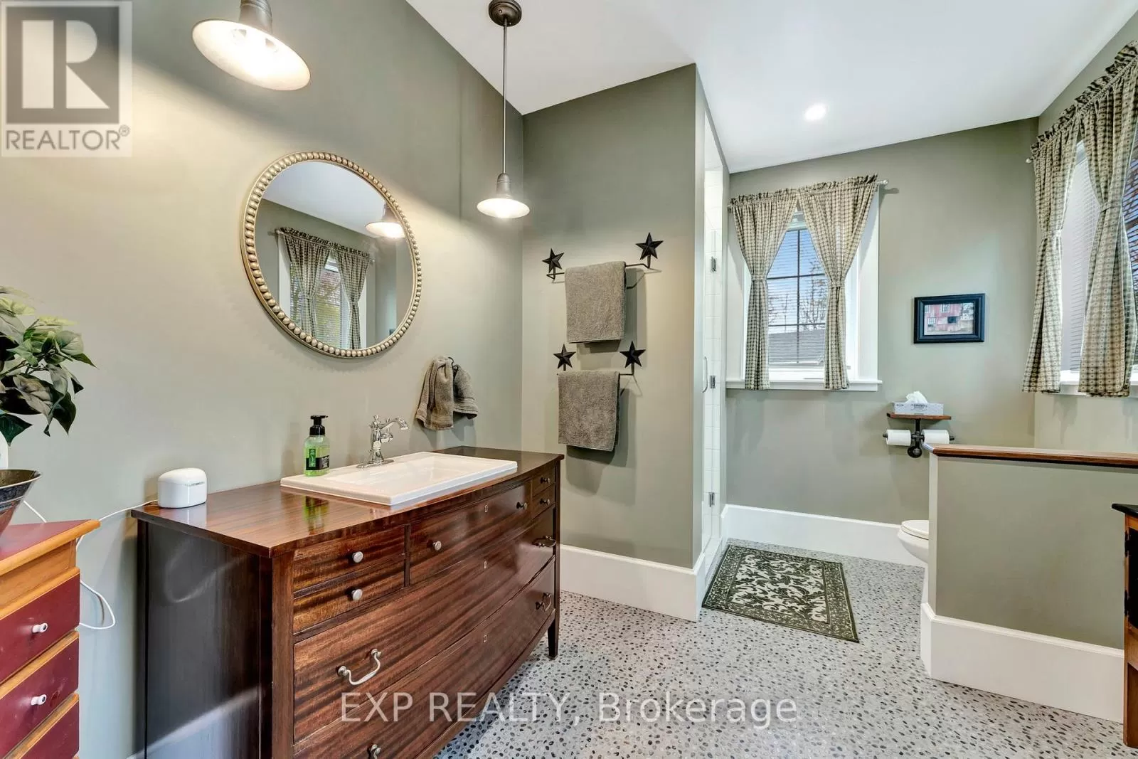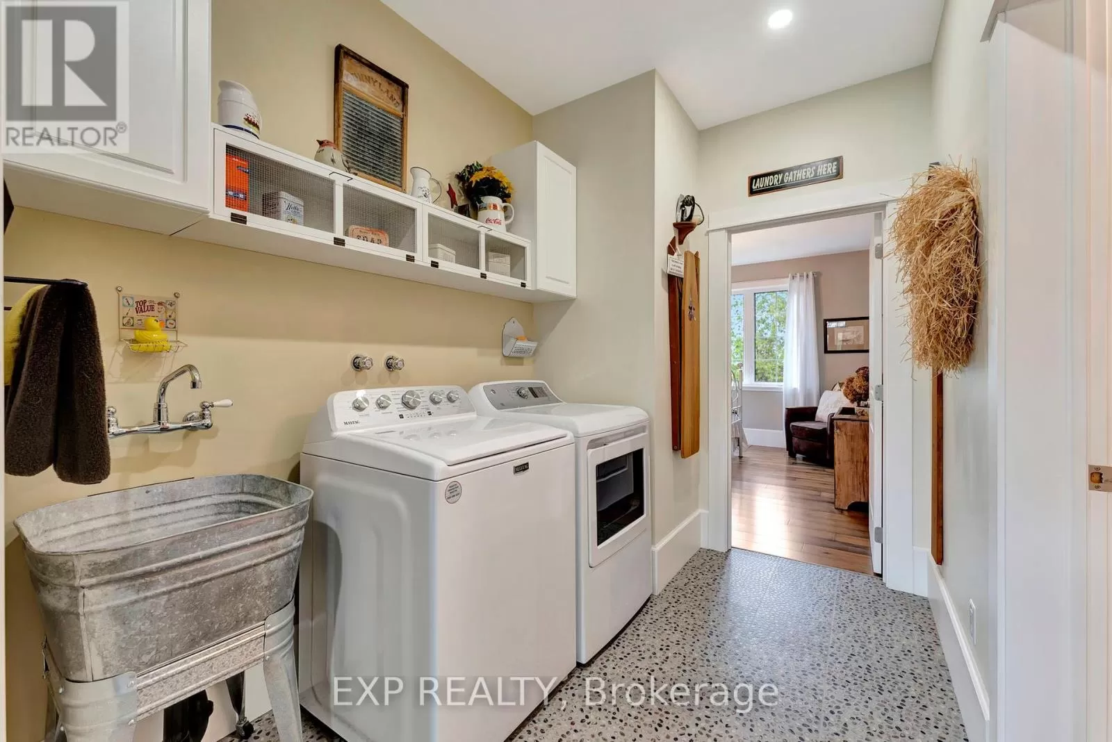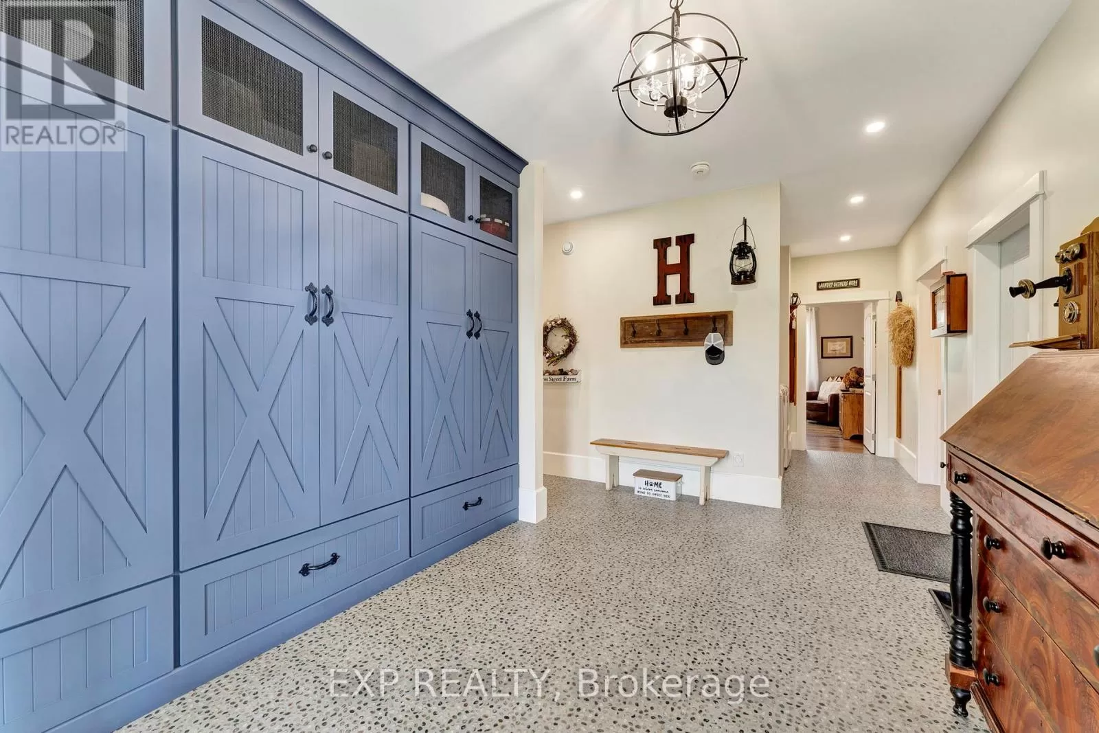 Left on Station from main Welcome to 3034 Station Road, Fordwich where luxurious country living meets thoughtful design and functionality on nearly 3.4 acres of beautifully landscaped land. This custom-built bungalow boasts over 3,000 sq. ft. above grade with accessibility in mind, offering wide hallways, doors, and a main-floor layout perfect for families or retirees alike. Inside, you'll find 4 bedrooms, 4 bathrooms, a gourmet kitchen with high-end appliances, and a sprawling dining area ideal for entertaining. The finished basement includes a massive rec room, extra bedroom, ample storage, and even a cold cellar. The heated attached triple garage and oversized workshop with separate heat, power, and water are a dream for hobbyists or entrepreneurs. Modern comforts include a high-efficiency propane furnace, central air, water treatment systems, partial generator, and smart layout with main-floor laundry and mudroom. Enjoy tranquil pond views, peaceful walking trails, and nature right outside your door, all while being minutes from the heart of Fordwich and nearby towns like Wingham and Listowel for shopping, schools, and healthcare. Whether you're raising a family, downsizing with style, or need space to grow your business from home, this stunning property offers unmatched versatility, privacy, and quality craftsmanship. Book your private showing today and discover everything this one-of-a-kind home has to offer! (id:27476)