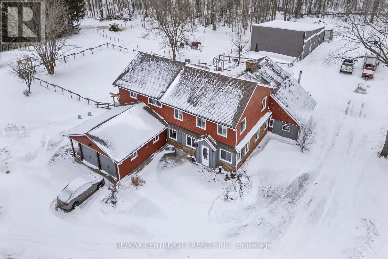Cross Streets: Orange Hill Road and Belmore Line. ** Directions: From Wroxeter head North on Belmore Line 1.5KM and the property will be on the East side of the Road. Here is an opportunity to own and live in a piece of rural delight. Enjoy 12 acres on a paved road with 8 acres of nice, mature forest, set around a modern, 5,200 square foot house. The 6 bedroom, 2.5 bath home with updated kitchen has a sunroom, family room, den, living room and an insulated 2 car garage. Enjoy your own country property with trimmed trails and 3 ponds in the hardwood bush. There is a small cabin in the corner of the property for your own staycation. The 40 X 47 horse barn is attached to a fenced grazing area in view from the house. An additional feature to this retreat is a new (2023) open span steel structure that is 130 X 60 ft. with 17 foot walls. It is currently used as a riding arena but has potential for many other purposes (repair shop, manufacturing, etc.) with its own road entrance. Updates include the roof which was replaced with 50 year shingles, eavestroughing, some new windows, UV, RO, water softener in 2022, furnace in 2025. Perfect for a hobby farm, home business, multi-generational living, or simply enjoying the peace and charm of country living. (id:27476)