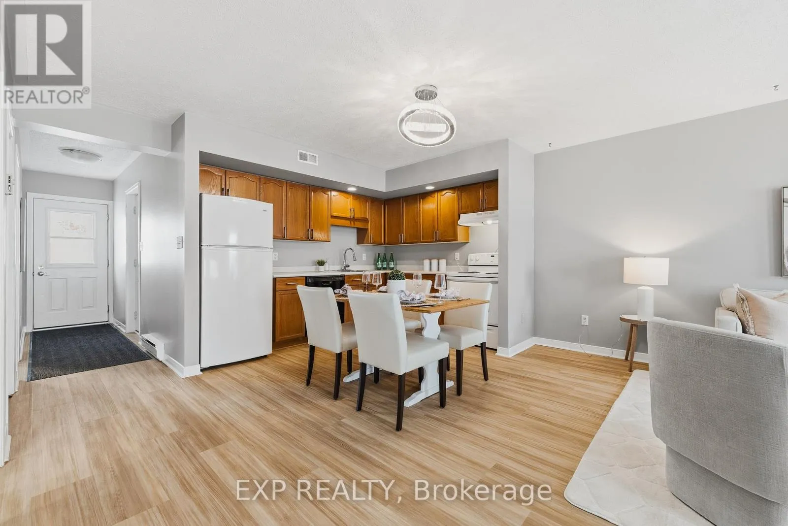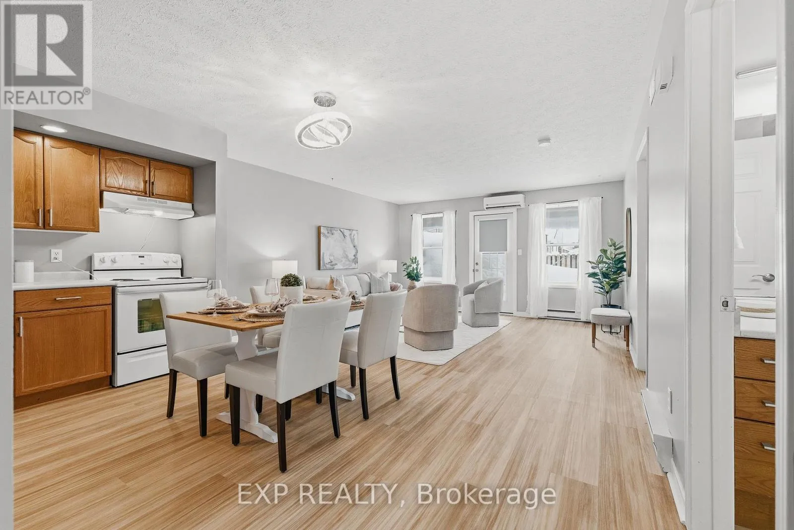 Cross Streets: Marietta and Currie. ** Directions: Follow Howick st to Ann St, turn west and follow to the end. Welcome to 10-1028 Ann Street in the quiet village of Wroxeter, located in the Township of Howick, Huron County. This charming two-bedroom, one-bath condo townhouse offers comfortable, one-floor living in a peaceful rural setting, ideal for retirees, first-time buyers, or snowbirds seeking a low-maintenance lifestyle. Thoughtfully designed with an open-concept layout, the living, dining, and kitchen areas flow seamlessly together, creating a bright and inviting space for everyday living and entertaining. Freshly painted with new flooring (2026), the home feels clean, modern, and move-in ready. Year-round comfort is provided by an efficient electric heat pump with air conditioning, and the convenience of in-suite laundry adds to the home's practical appeal. Enjoy your private outdoor space, perfect for relaxing and taking in the serene surroundings. The attached garage provides secure parking and additional storage. Condo fees include lawn care and snow removal, allowing you to enjoy a worry-free lifestyle without the upkeep.Nestled on a quiet street in a welcoming small-town community, this property offers the charm of rural living while remaining within reasonable driving distance to surrounding towns and amenities. If you're looking for comfort, simplicity, and peace of mind, this delightful condo is ready to welcome you home. (id:27476)