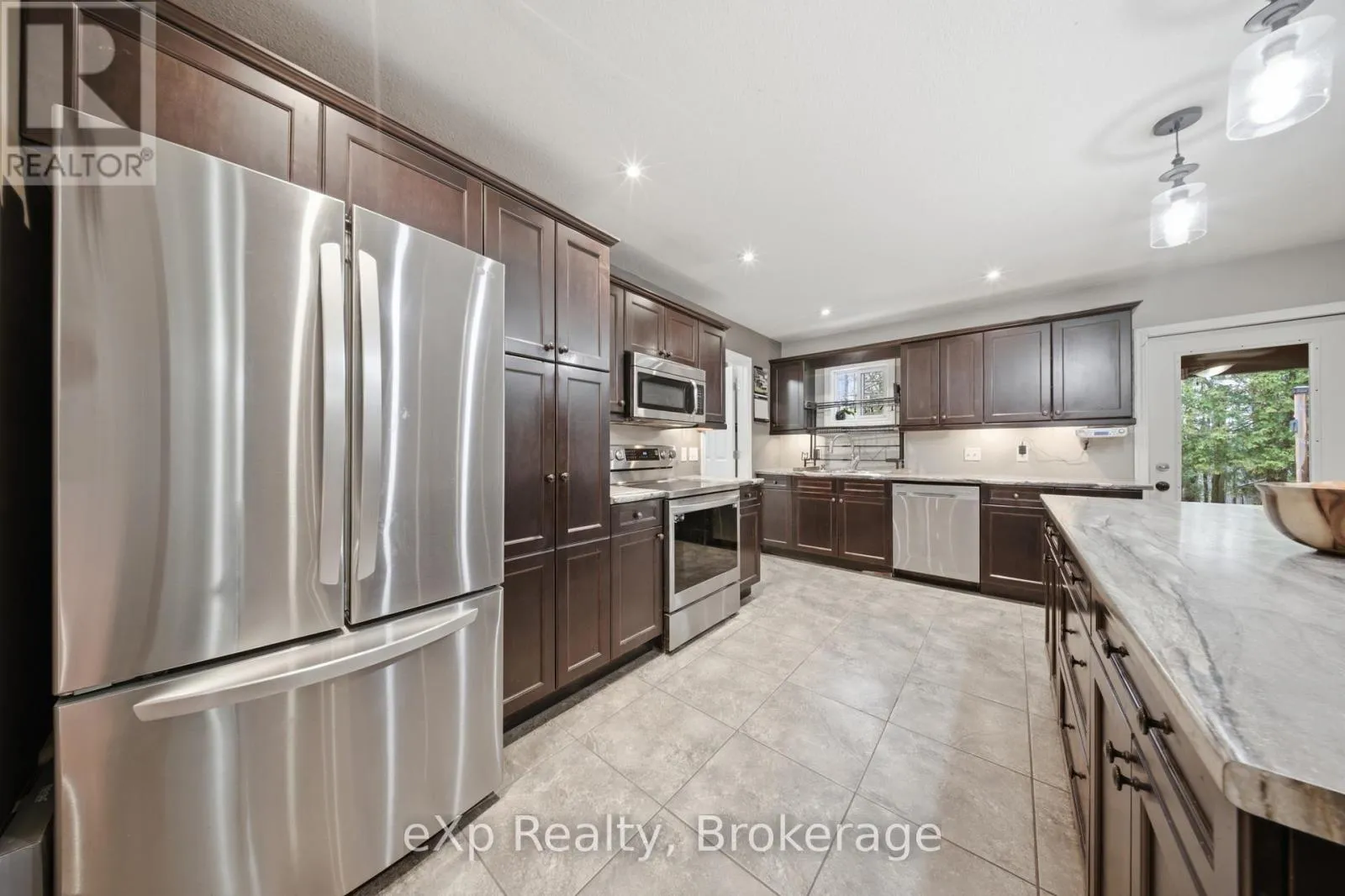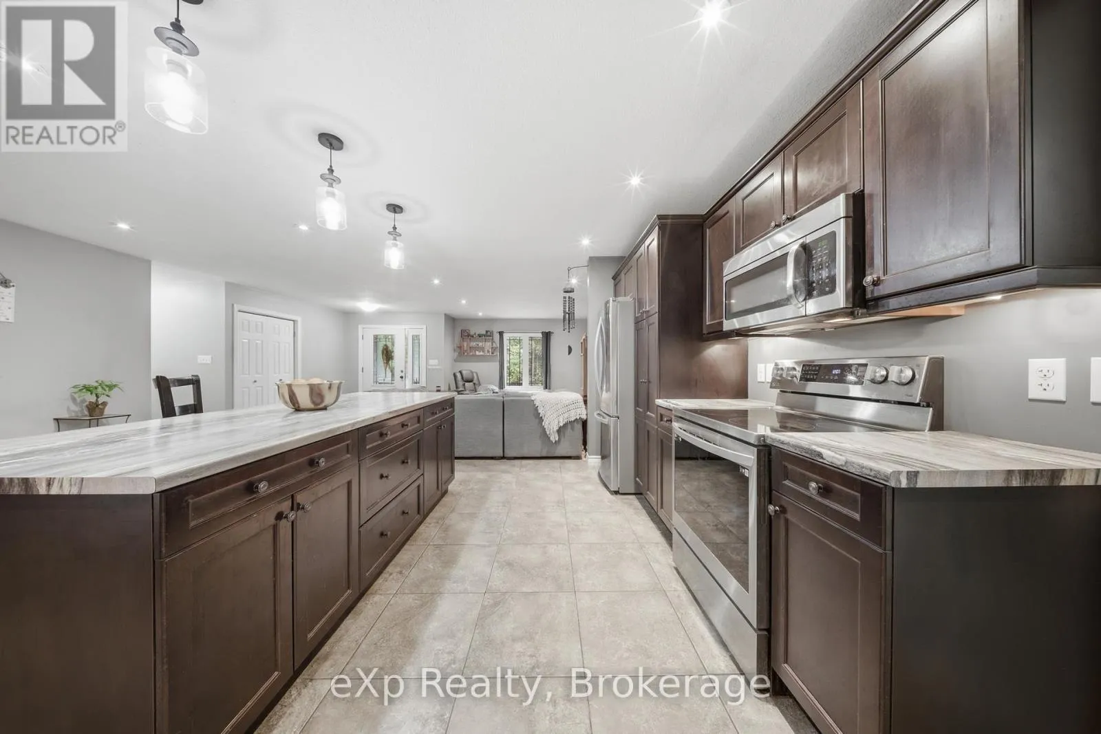 Cross Streets: Huron County Rd 30. ** Directions: From north on Hwy 9 turn on County Rd 35 to County Rd 30, west to Driftwood Beach Rd. North to property on the right. Nestled on a scenic 21+ acre, elevated lot overlooking Driftwood Beach Road, this stunning 2014 built bungalow offers the perfect blend of modern comfort and serene waterfront living. With 1,717 sq ft of thoughtfully designed space, this stone and vinyl home is surrounded by nature and enhanced by direct access to a portion of picturesque Blind Lake, creating a private retreat you'll never want to leave. Step inside to a bright, open-concept layout ideal for both everyday living and entertaining. The spacious main floor features three generously sized bedrooms, including a primary suite complete with a walk-in closet and private en-suite. Large windows invite in natural light while showcasing tranquil views of the surrounding landscape. The basement offers endless potential, ready for your custom finishing to expand living space, add a recreation area, or create the ultimate guest suite. Outdoors, a large, uniquely designed patio provides the perfect setting to relax, host, and take in the peaceful natural surroundings. The expansive property offers privacy and mature greenery, ideal for enjoying waterfront activities, wildlife, and year-round scenic beauty. Car enthusiasts and hobbyists will appreciate the impressive attached 3-bay garage (22 ft x 38 ft), offering ample space for vehicles, storage, and workspace. Ideally situated for convenience, the property is only a short drive to Clifford, approximately 20 minutes from Hanover and Walkerton, about 24 minutes to Listowel, and roughly an hour from both Kitchener and Owen Sound. This is more than a home, it's a lifestyle. Experience the best of lakefront living with unmatched privacy, natural beauty, and modern convenience all in one exceptional property. (id:27476)