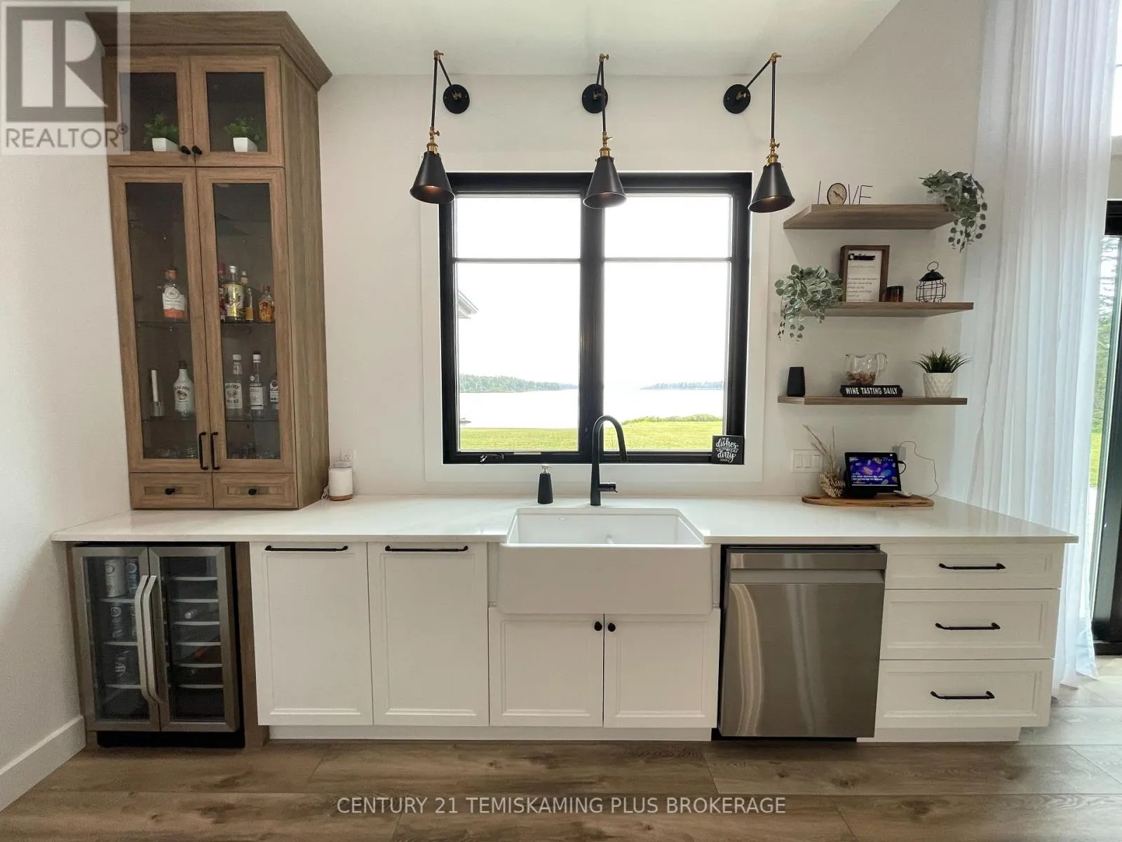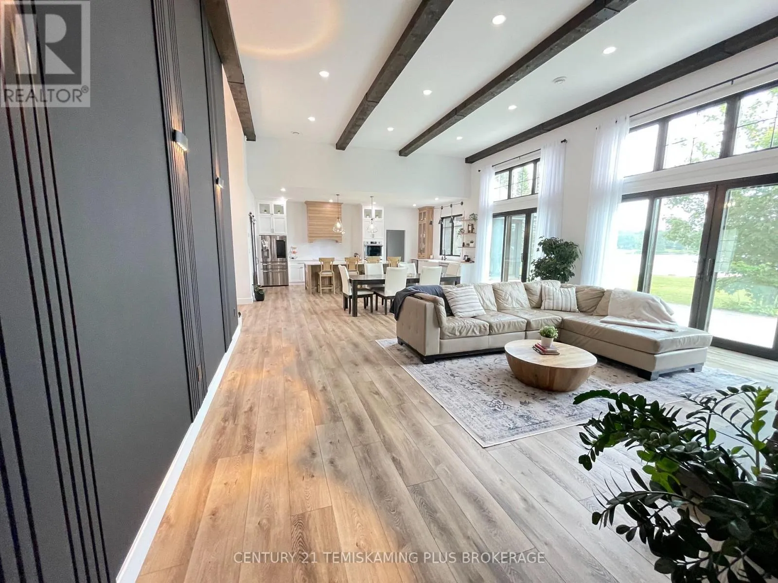 Cross Streets: Near end of Pike Lake Road. ** Directions: From Hwy 65 West, turn South on Twin Lakes Road, go until you reach Twin Lakes Mail box repository, turn Right onto Bartle Lake, then Right onto Pike Lake Rd., house will be on your left passed ball park. Luxurious 2,700+ sq ft executive home with over 250 feet of pristine frontage on beautiful Pike Lake! Custom-built in 2021 with exceptional craftsmanship and high-end finishes throughout, this home is a true retreat. Step into a grand foyer with soaring 16' ceilings and an abundance of natural light. A spacious mudroom off the attached heated garage offers a 2-piece bath, generous storage, an oversized laundry room, and access to the show stopping 16x25 screened-in gazebo with vaulted cedar ceilings and stunning lake views. The gourmet kitchen is an entertainers dream, featuring a large granite island, walk-in chefs pantry, abundant cabinetry, and a massive dining area. The living room is anchored by a dramatic 14' floor-to-ceiling brick wood-burning fireplace, perfect for cozy evenings. There are three generous bedrooms, including a spa-like primary suite with a luxurious soaker tub, double shower, dual sinks and massive walk-in closet. Even the guest bedrooms are designed to impress, one having a Murphy bed. There is also a sleek guest bathroom with custom-tiled glass shower modern cabinetry. Set on 1.85 acres with year-round paved road access, just 15 minutes from Temiskaming Shores, this exceptional property offers privacy, luxury, and lakeside living at its finest! (id:27476)