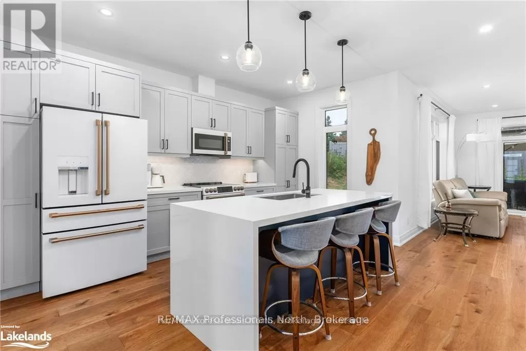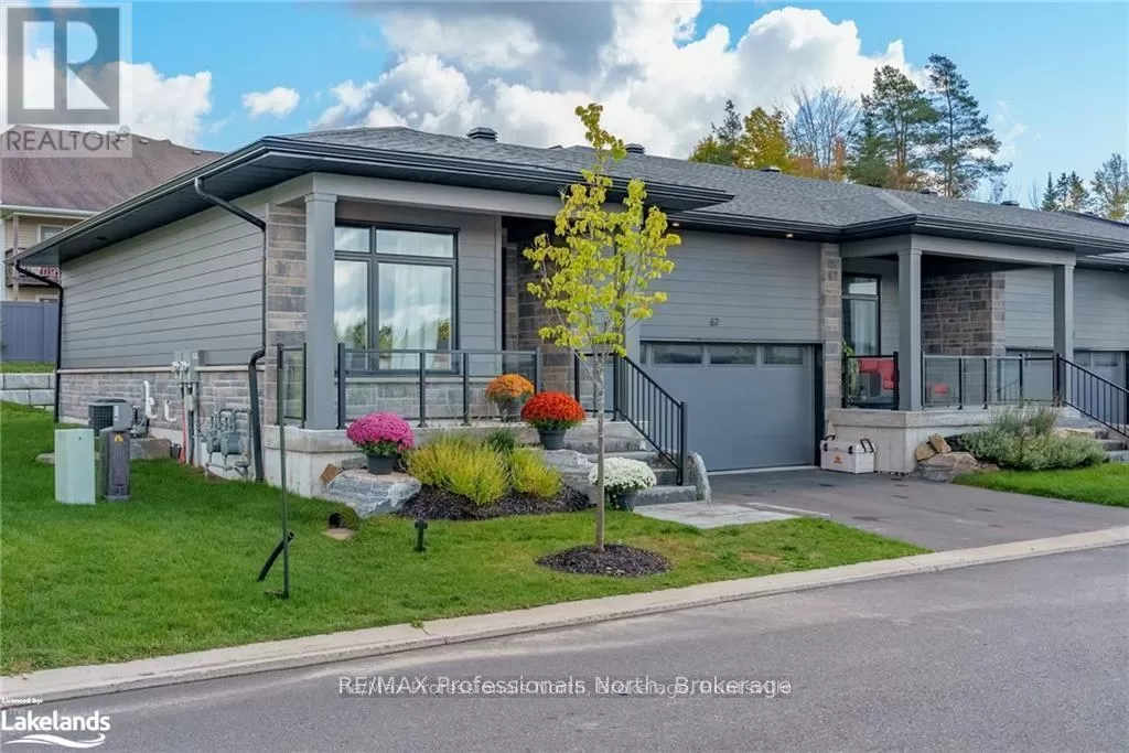 Cross Streets: Jack St/Hanes Rd. ** Directions: Take Hanes Rd, turn on Jack St and follow to the sign on the property. Welcome to this beautiful end-unit bungalow in the desirable community of Highcrest Homes. This spacious home has been upgraded throughout and features the largest windows of any of the homes in this complex. The floorplan itself is unique and is one of three which the builder considered 'custom'. Many upgrades include flooring, kitchen counters, light fixtures, bathrooms and more (contact agent for complete list). The main floor is bright and open with a gorgeous kitchen overlooking the dining and living areas. There is a natural gas line installed at the stove. upgraded light fixtures in the kitchen and dining room. The Primary Bedroom with a large walk-in closet and well-appointed ensuite on the same floor has a 'fandelier' for comfort. There is also a guest room / office by the front door and close to the main washroom and main-floor laundry. A large deck extends your interior living space to the outside. There is even a natural gas connection for a BBQ. Glass railings and hot tub rough-in have been added as well. Going down to the lower level, there are two bedrooms and a sitting area which were finished by the builder and that area is therefore covered under the Tarion warranty, along with the rest of the house. There is a brand new bathroom which has just been completed as well. Laundry hook-up is also in the large bathroom. A large, unfinished utility room is ideal for storage and there are 2 additional natural gas nipples installed for future use. The large garage has been insulated and drywalled and a 600 pound capacity hanging storage rack installed. Additionally, the convenience of an Ecobee thermostat and a Nest doorbell are installed. The location of this home is close to a trail with a sitting area, a gazebo (to be built) and visitor parking. (id:27476)
