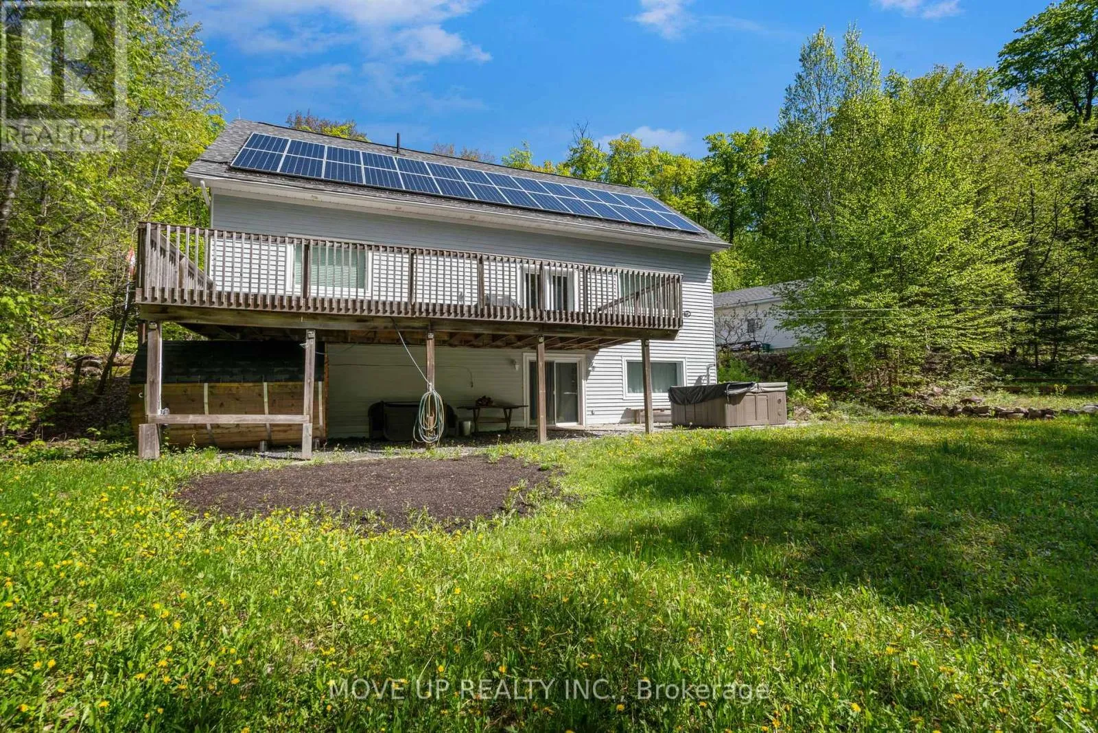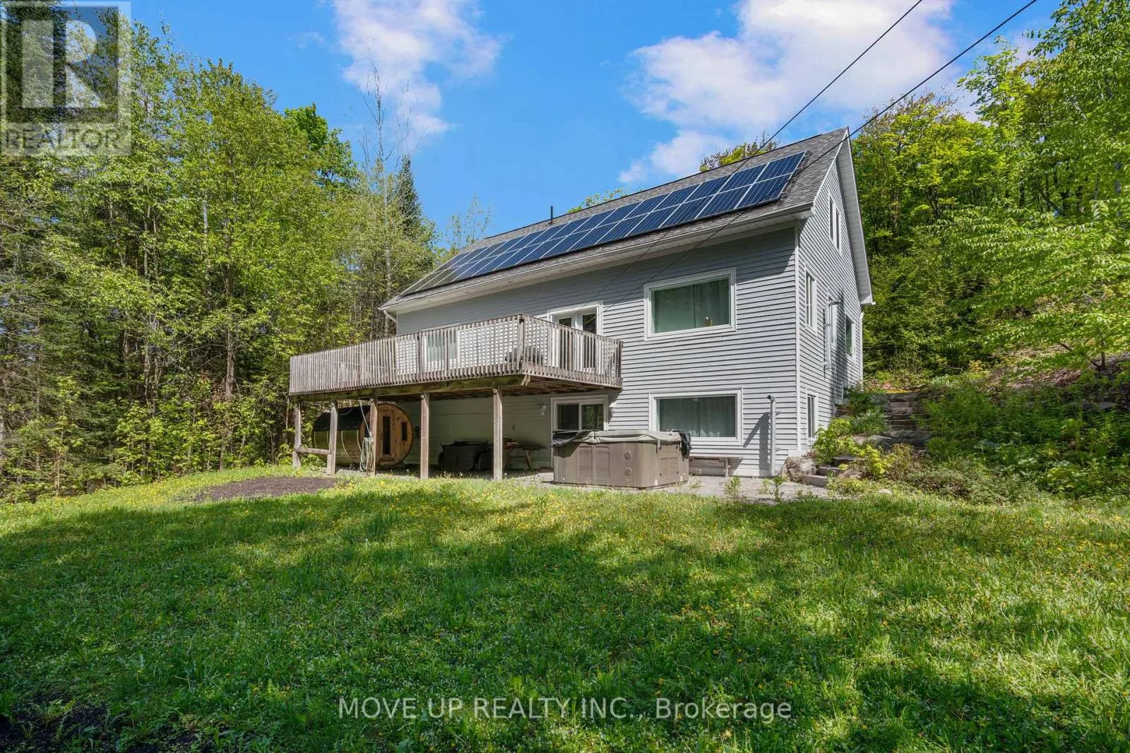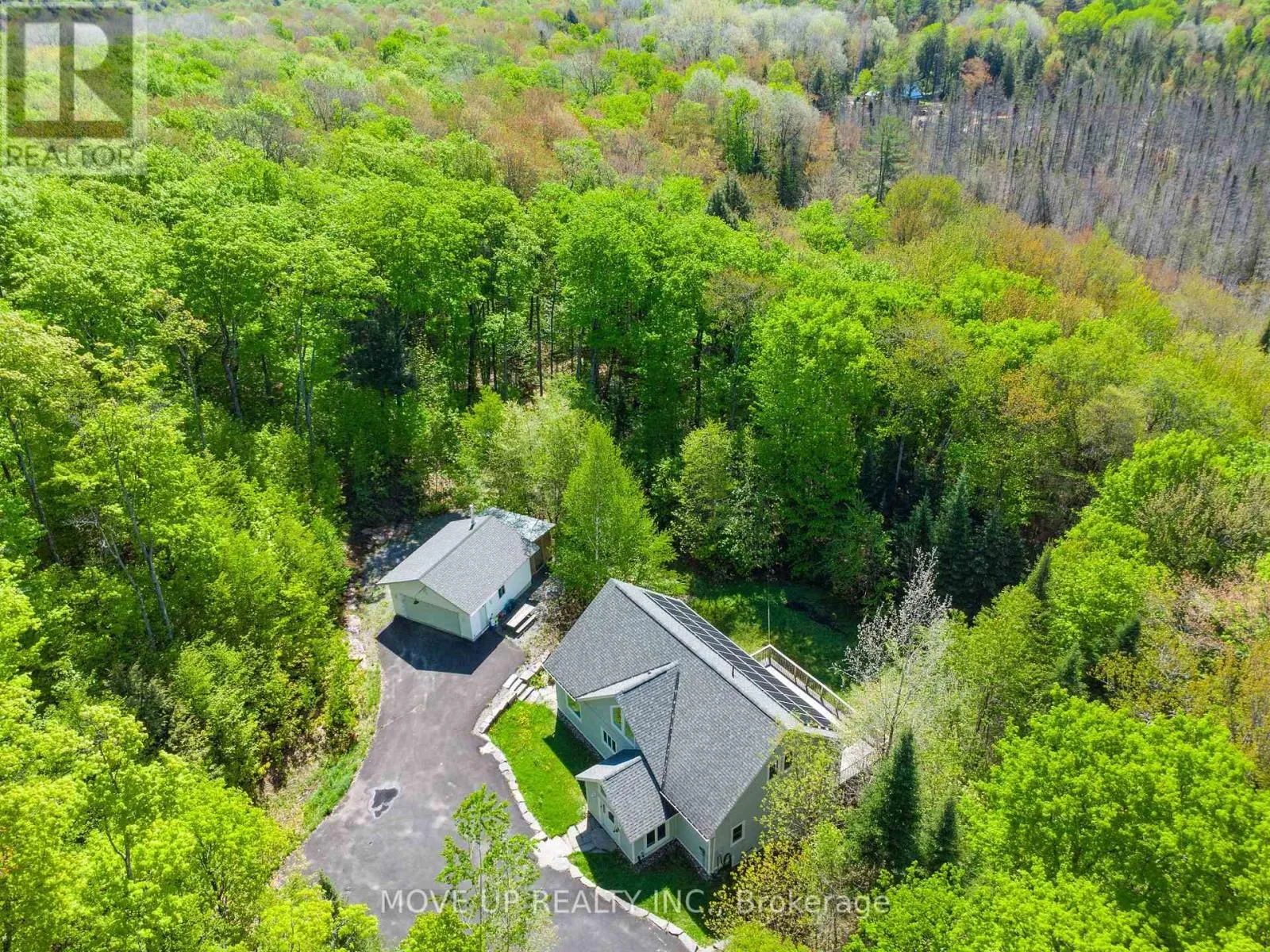 Cross Streets: Brunel Road to #1884. ** Directions: n. 6.45 acres **Unique Muskoka Retreat: A Dream Freehold Detached 3br+1br 2717 sq.ft. house plus finished W/O basement. Home Awaits**Discover a spectacular offering in the highly sought-after Muskoka area of Ontario, where nature's beauty meets modern comfort. This remarkable property, set on over 6 acres of pristine land, offers ultimate privacy surrounded by lush forests and breathtaking trails, just minutes from the charming town of Huntsville. As you step into this custom-built home, you're greeted by a welcoming foyer with heated floors that set the tone for the exceptional quality throughout. The residence boasts floor-to-ceiling ICF construction, ensuring durability and energy efficiency. A paved driveway leads to a heated and insulated 21x23 garage, providing ample parking and convenience. This family-friendly home features three spacious bedrooms, with two offering ensuite privileges, along with a main washroom on the upper level and a convenient two-piece bath on the main floor. The open-concept design seamlessly connects the kitchen, dining room, and living room, where a patio door invites you to a 30x10 deck overlooking beautifully landscaped gardens adorned with large Muskoka stone steps and borders. The walkout basement is an entertainer's dream, featuring an oversized rec room, media area, and workshop, all leading out to a fabulous patio equipped with a relaxing hot tub. Perfect for enjoying the serene surroundings year-round. Enjoy the outdoors with a variety of features, including a wood shed, fire pit area, and a large storage tent under the deck for summer essentials. The grounds are adorned with perennial gardens and fruitful bushes, including rhubarb, black currants, and raspberries, along with maple trees perfect for producing your own syrup in the spring. Recent upgrades include a $65,000 paid-off solar panel system,Fiber optic internet is available, making this home ideal for remote work (id:27476)