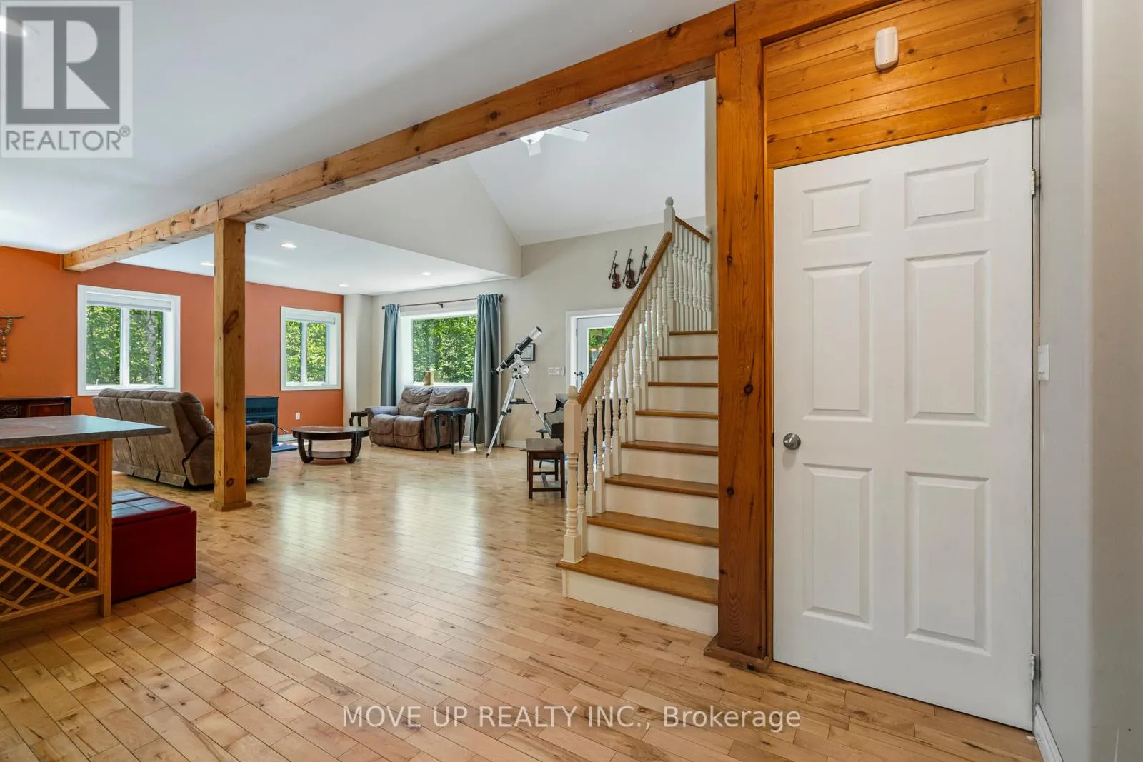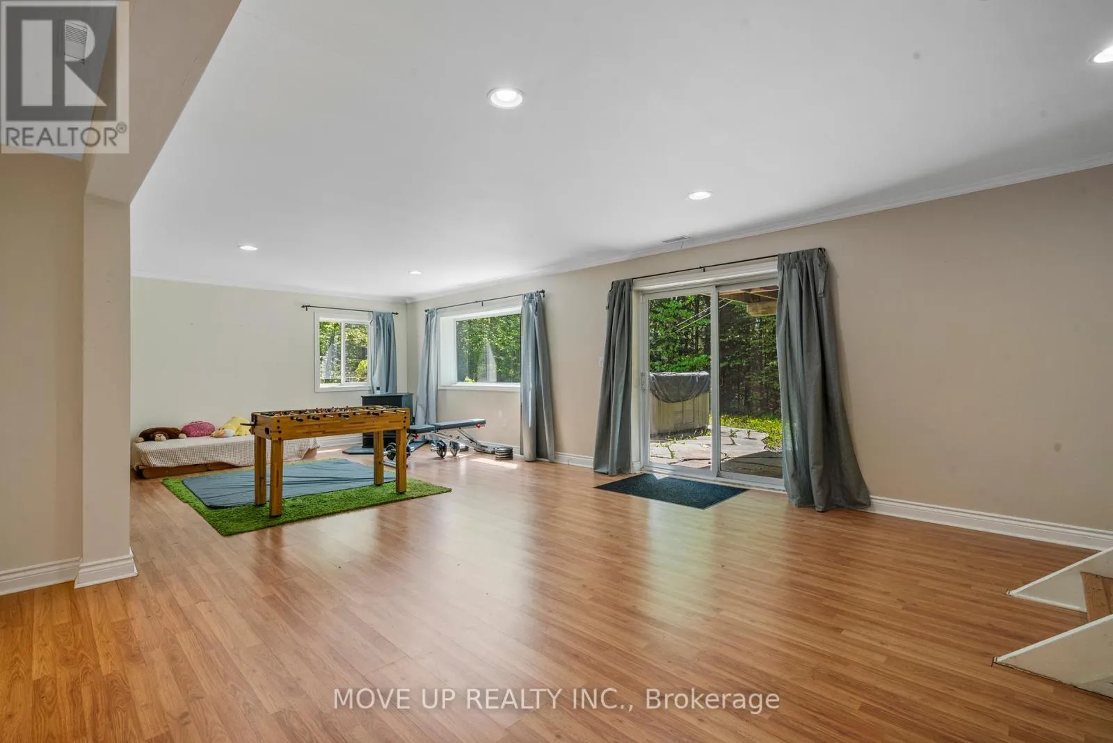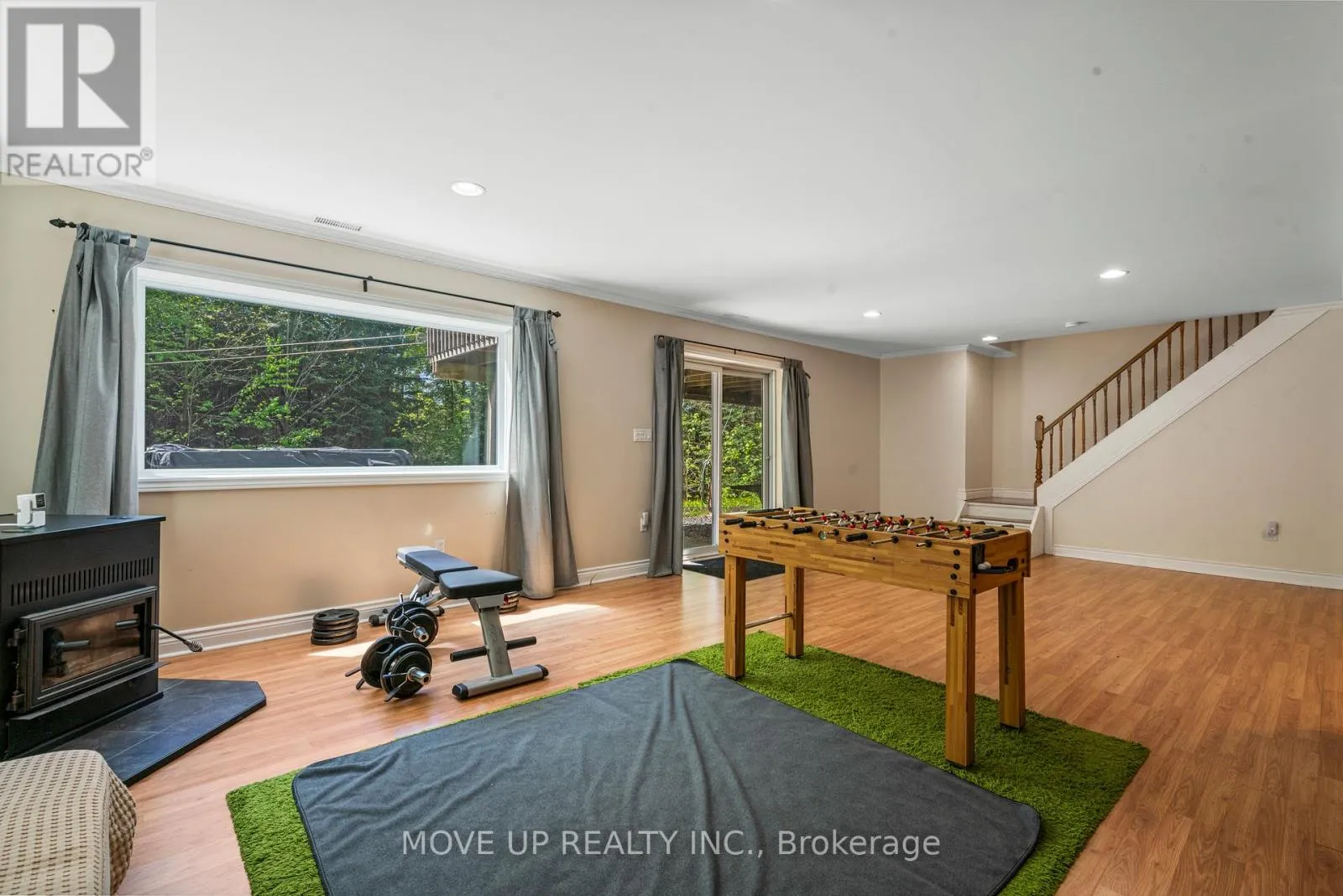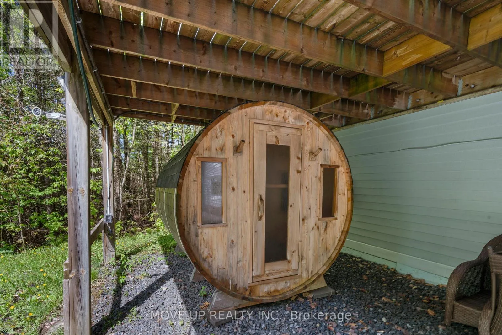 Cross Streets: Brunel Road to #1884. ** Directions: n. 6.45 acres **Unique Muskoka Retreat: A Dream Freehold Detached 3br+1br 2717 sq.ft. house plus finished W/O basement. Home Awaits**Discover a spectacular offering in the highly sought-after Muskoka area of Ontario, where nature's beauty meets modern comfort. This remarkable property, set on over 6 acres of pristine land, offers ultimate privacy surrounded by lush forests and breathtaking trails, just minutes from the charming town of Huntsville. As you step into this custom-built home, you're greeted by a welcoming foyer with heated floors that set the tone for the exceptional quality throughout. The residence boasts floor-to-ceiling ICF construction, ensuring durability and energy efficiency. A paved driveway leads to a heated and insulated 21x23 garage, providing ample parking and convenience. This family-friendly home features three spacious bedrooms, with two offering ensuite privileges, along with a main washroom on the upper level and a convenient two-piece bath on the main floor. The open-concept design seamlessly connects the kitchen, dining room, and living room, where a patio door invites you to a 30x10 deck overlooking beautifully landscaped gardens adorned with large Muskoka stone steps and borders. The walkout basement is an entertainer's dream, featuring an oversized rec room, media area, and workshop, all leading out to a fabulous patio equipped with a relaxing hot tub. Perfect for enjoying the serene surroundings year-round. Enjoy the outdoors with a variety of features, including a wood shed, fire pit area, and a large storage tent under the deck for summer essentials. The grounds are adorned with perennial gardens and fruitful bushes, including rhubarb, black currants, and raspberries, along with maple trees perfect for producing your own syrup in the spring. Recent upgrades include a $65,000 paid-off solar panel system,Fiber optic internet is available, making this home ideal for remote work (id:27476)
