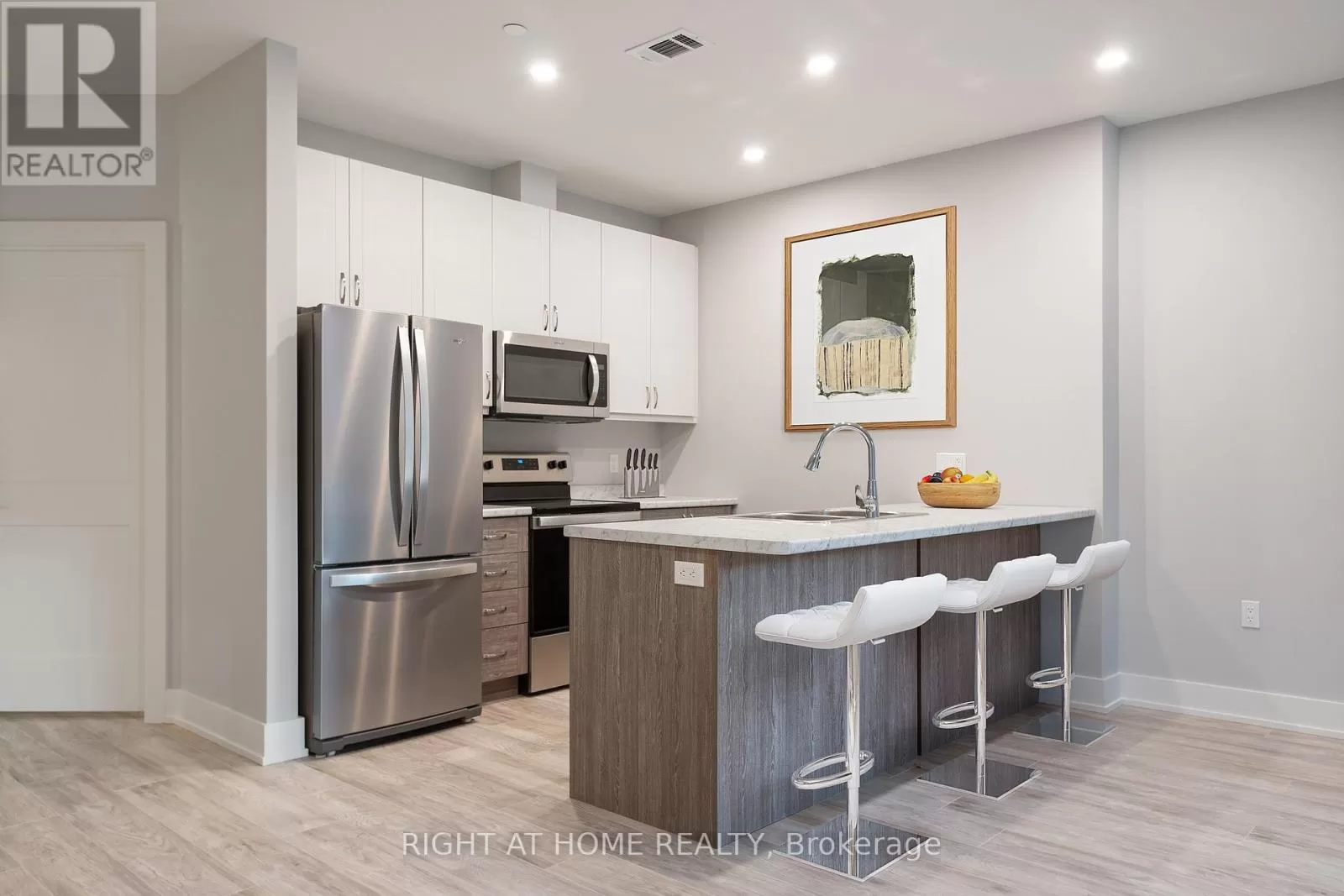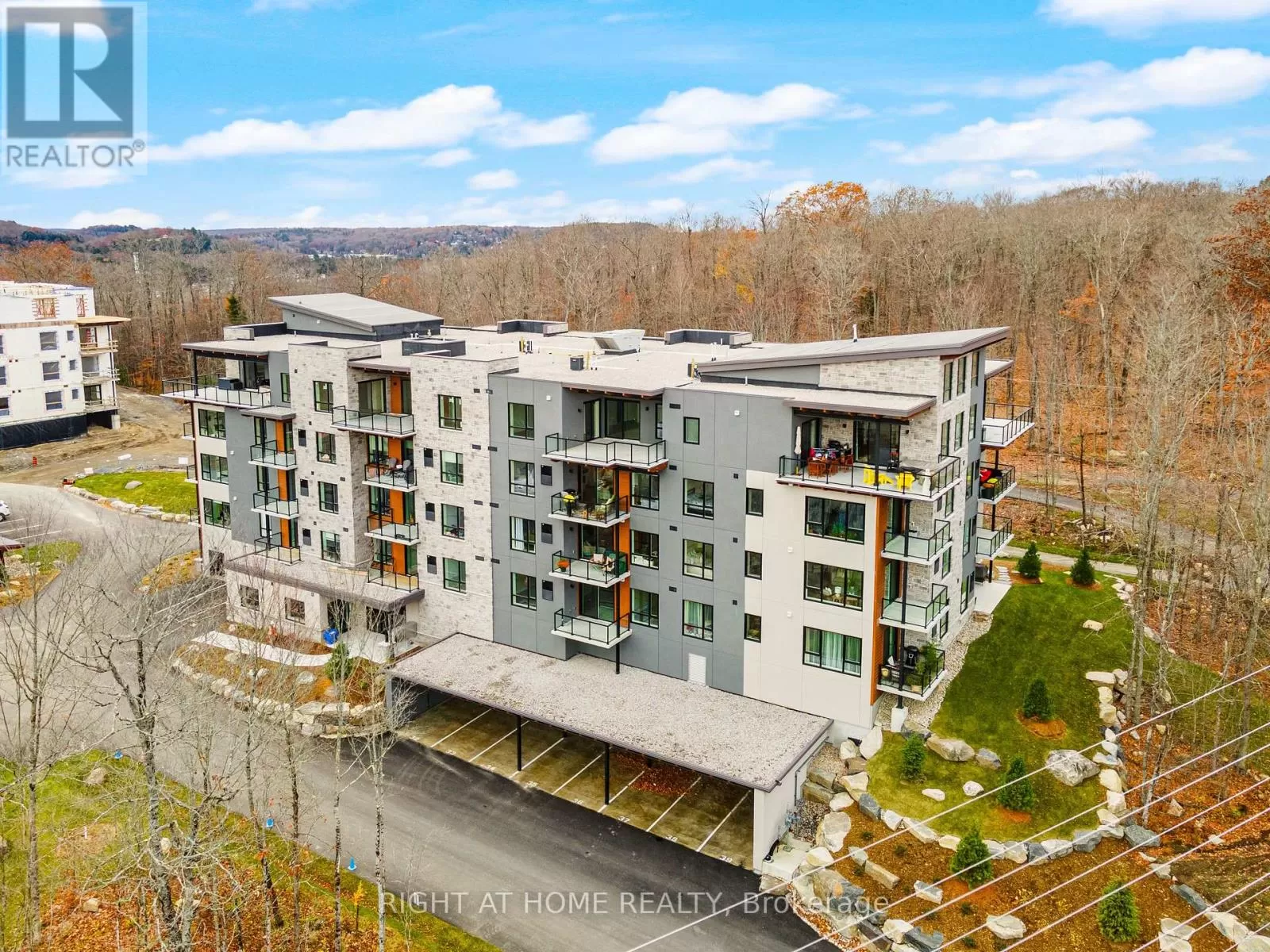 Hwy 60 / Muskoka Rd 3 N Discover The Alexander at Campus Trail, where this first-floor condo shines with a spacious 1-bed plus den layout and 2 full baths across nearly 1000 sq ft. Modern luxury meets practical design, complete with high-end stainless steel kitchen appliances. Crafted with both style and practicality in mind, this modern sanctuary is kitted out with all the latest must-haves. You'll love the wide-open feel of the living, dining, and kitchen areas. Bask in the natural light from large windows, and step out to a serene patio. Embrace smart-home tech, keyless entry, and energy-efficient ICF construction. Charge your EV at your own spot prewired for a 240V plug, store gear in a heated locker, The Alexander doesn't skimp on amenities, with a social room perfect for hosting, and outdoor delights like a firepit lounge, a pickleball court and many nature trails. Located in Huntsville, you're amidst Muskoka's calm and town conveniences. Say goodbye to shoveling snow, and hello to your new lifestyle. You get the tranquility of Muskoka with the convenience of countless town amenities - all within easy reach, including a hospital for your peace of mind. So don't let this gem slip away - it's ready to be called your new home. (id:27476)