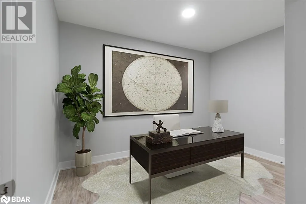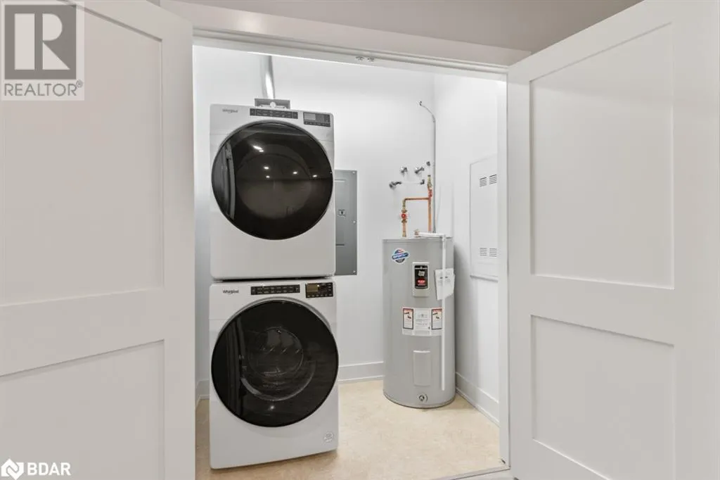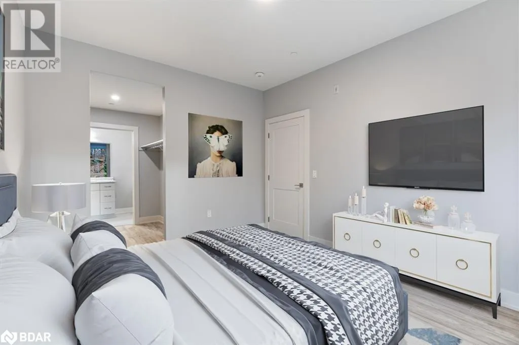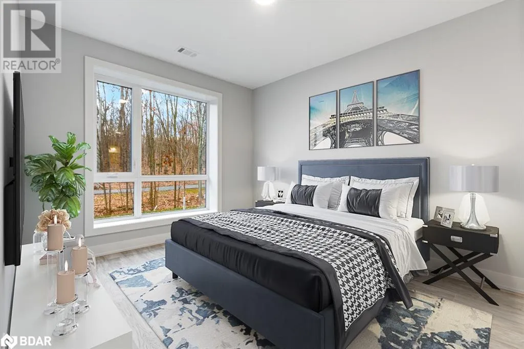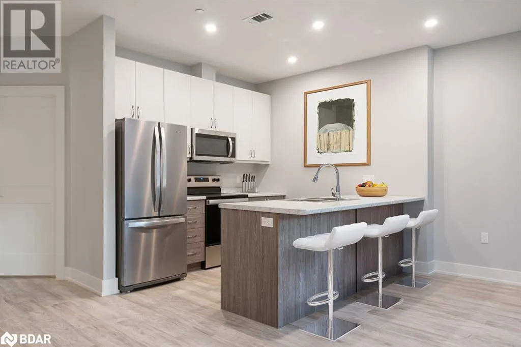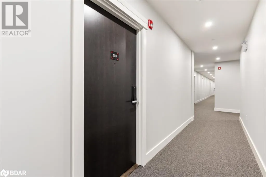 Hwy 60 E bound turn left onto Muskoka Rd 3 North then Left onto Campus Trail. Discover The Alexander at Campus Trail, where this first-floor condo shines with a spacious 1-bed plus den layout and 2 full baths across nearly 1000 sq ft. Modern luxury meets practical design, complete with high-end stainless steel kitchen appliances. Crafted with both style and practicality in mind, this modern sanctuary is kitted out with all the latest must-haves. You'll love the wide-open feel of the living, dining, and kitchen areas. Bask in the natural light from large windows, and step out to a serene patio. Embrace smart-home tech, keyless entry, and energy-efficient ICF construction. Charge your EV at your own spot prewired for a 240V plug, store gear in a heated locker, The Alexander doesn't skimp on amenities, with a social room perfect for hosting, and outdoor delights like a firepit lounge, a pickleball court and many nature trails. Located in Huntsville, you're amidst Muskoka's calm and town conveniences. Say goodbye to shoveling snow, and hello to your new lifestyle. You get the tranquility of Muskoka with the convenience of countless town amenities - all within easy reach, including a hospital for your peace of mind. So don't let this gem slip away - it's ready to be called your new home. Furniture is virtually staged. (id:27476)