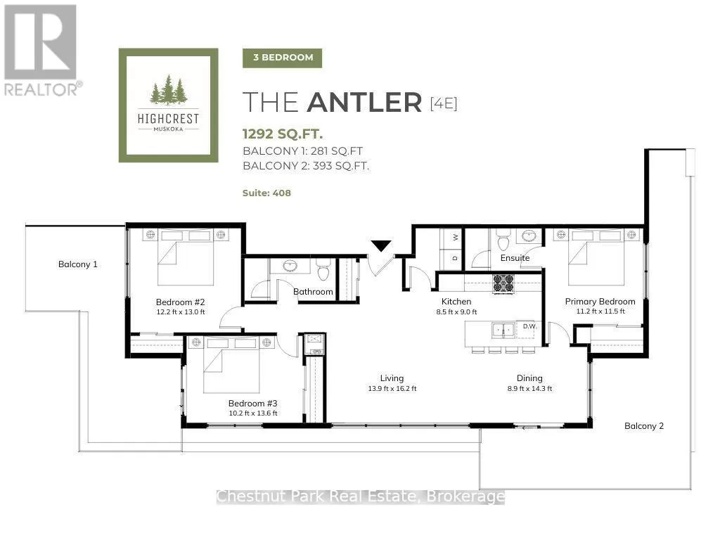 Cross Streets: Jack Street & Hanes Road. ** Directions: Centre Street to 46 Hanes Rd to Builder's showroom on site. Appointments required. Discover The Ridge at Highcrest by Edgewood Homes - a community where modern design meets the simplicity of hassle-free living. Among its standout offerings is Suite 408, The Antler, a rare and sunlit gem with windows spanning East, South, and West, ensuring natural light fills your space throughout the day. This 3-bedroom, 2 bathroom suite features a spacious 1,292 SQFT of interior living space paired with 674 SQFT of outdoor bliss across two balconies. Start your mornings with coffee on the East-facing balcony and unwind in the evenings with breathtaking sunsets from the West-facing one. Thoughtful design shines through with an open concept kitchen, living, and dining area, an in-suite laundry room, and a primary bedroom complete with an ensuite. Highcrest residents also gain access to exclusive amenities, including a state-of-the-art fitness centre, indoor and outdoor kitchens, an expansive terrace, and a stylish residents' lounge. Residents will also enjoy the amenities, including a fitness centre, indoor and outdoor kitchen and dining areas, an outdoor terrace, and a residents' lounge. For a limited time, Edgewood Homes is offering early bird incentives to all buyers, which include a full suite of stainless steel appliances, washer and dryer, storage locker, one parking space, $0 assignment fees, and included development charges. The Ridge at Highcrest offers the ultimate blend of luxury, convenience, and the serenity of Muskoka living. Photos are artist's concepts. (id:27476)