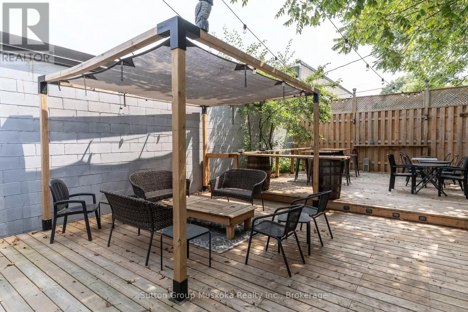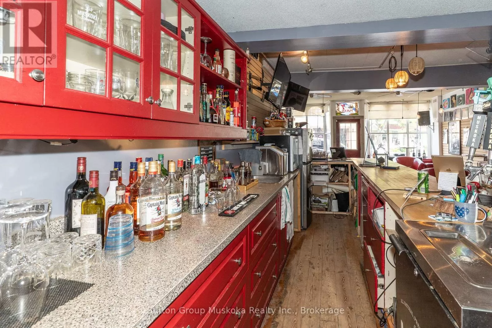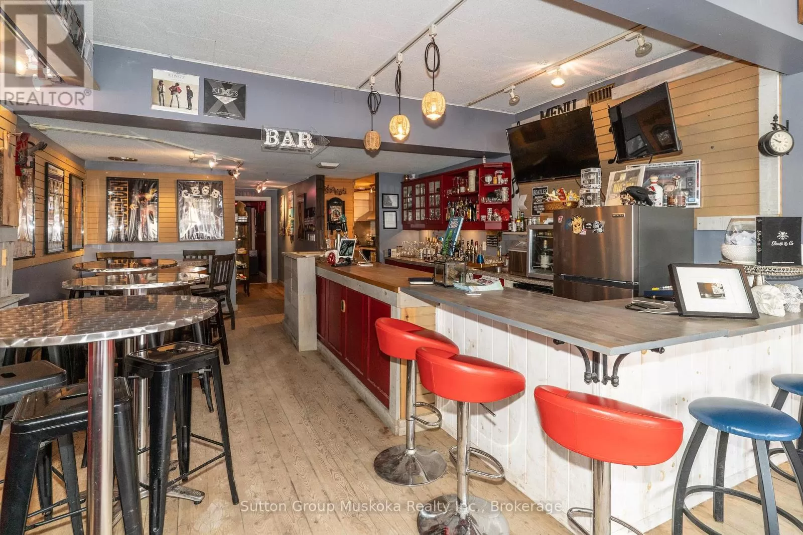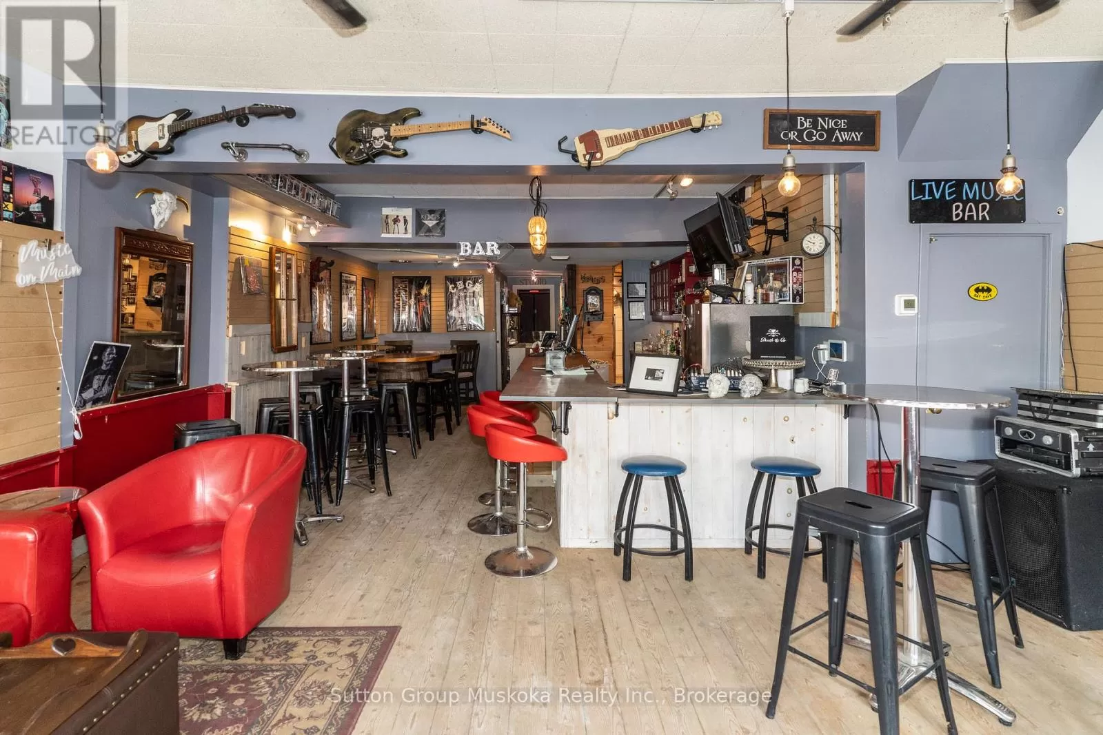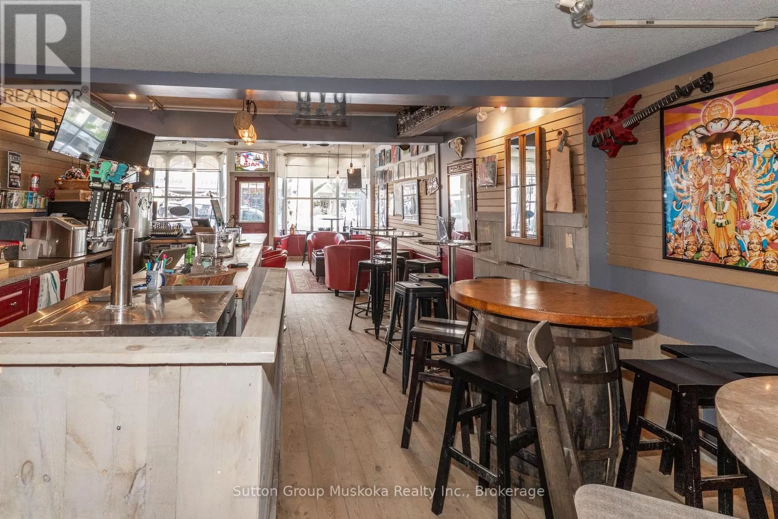 Cross Streets: Centre and Main. ** Directions: Aspdin exit via highway 11 north to Main Street. What a wonderful opportunity to own a piece of Historical Downtown Huntsville. This Main Street location in Muskoka, offers a great space both inside and outside to accommodate your ideas of what you want to bring to the town. Currently used as a live music venue / bar , the casual sitting atmosphere leads to an awesome patio. So many ways to utilize this open outside area. Current liquor license does cover outside tables at the entry , the main level and the patio. Also features a kitchen to provide some food for your patrons . The upstairs is a great space for the nights you work late with its own bedroom and bathroom . This building is zoned CBD. Please see documents for allowable uses. The Seller is willing to leave almost ALL contents for the next Buyer to start right back up! (id:27476)