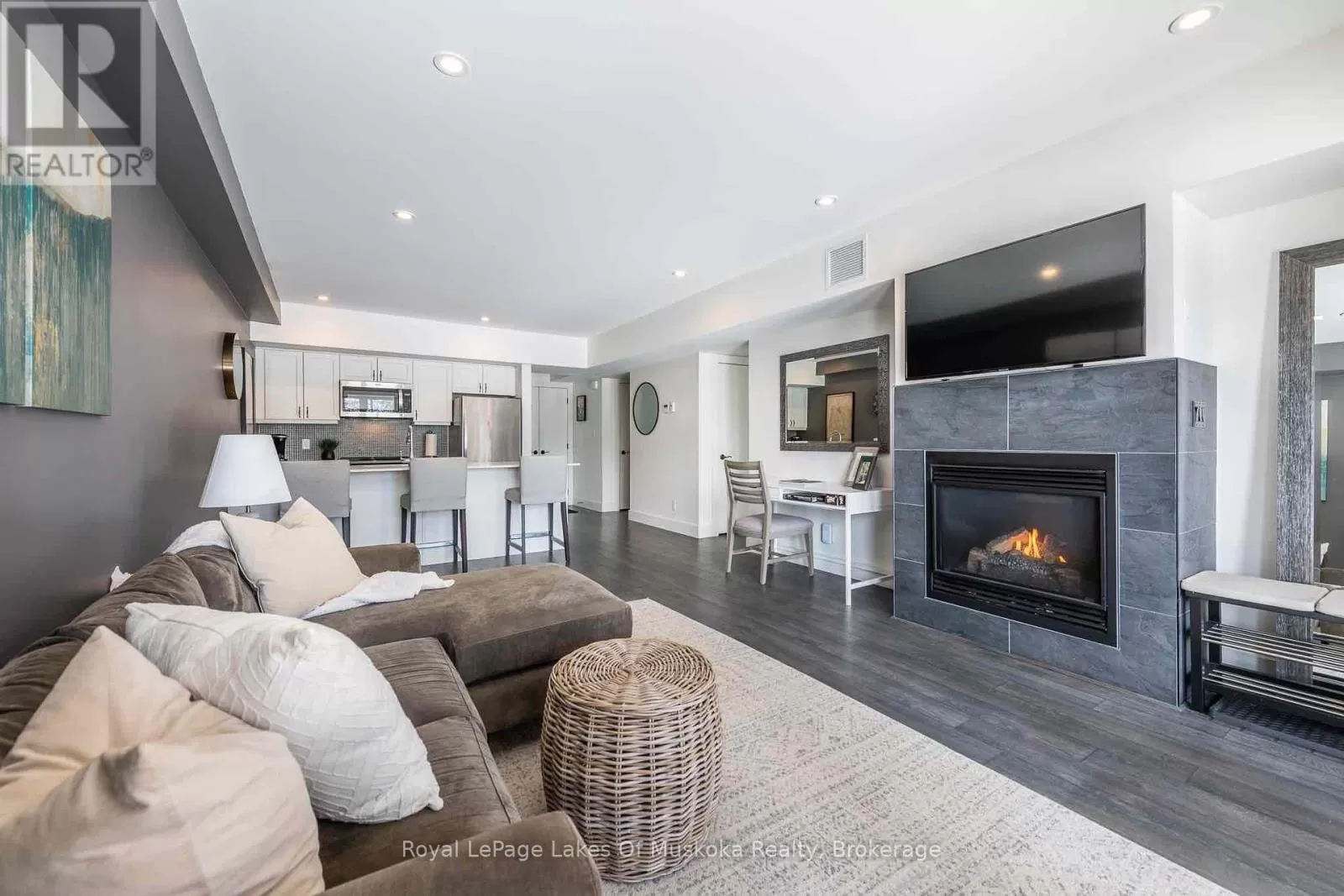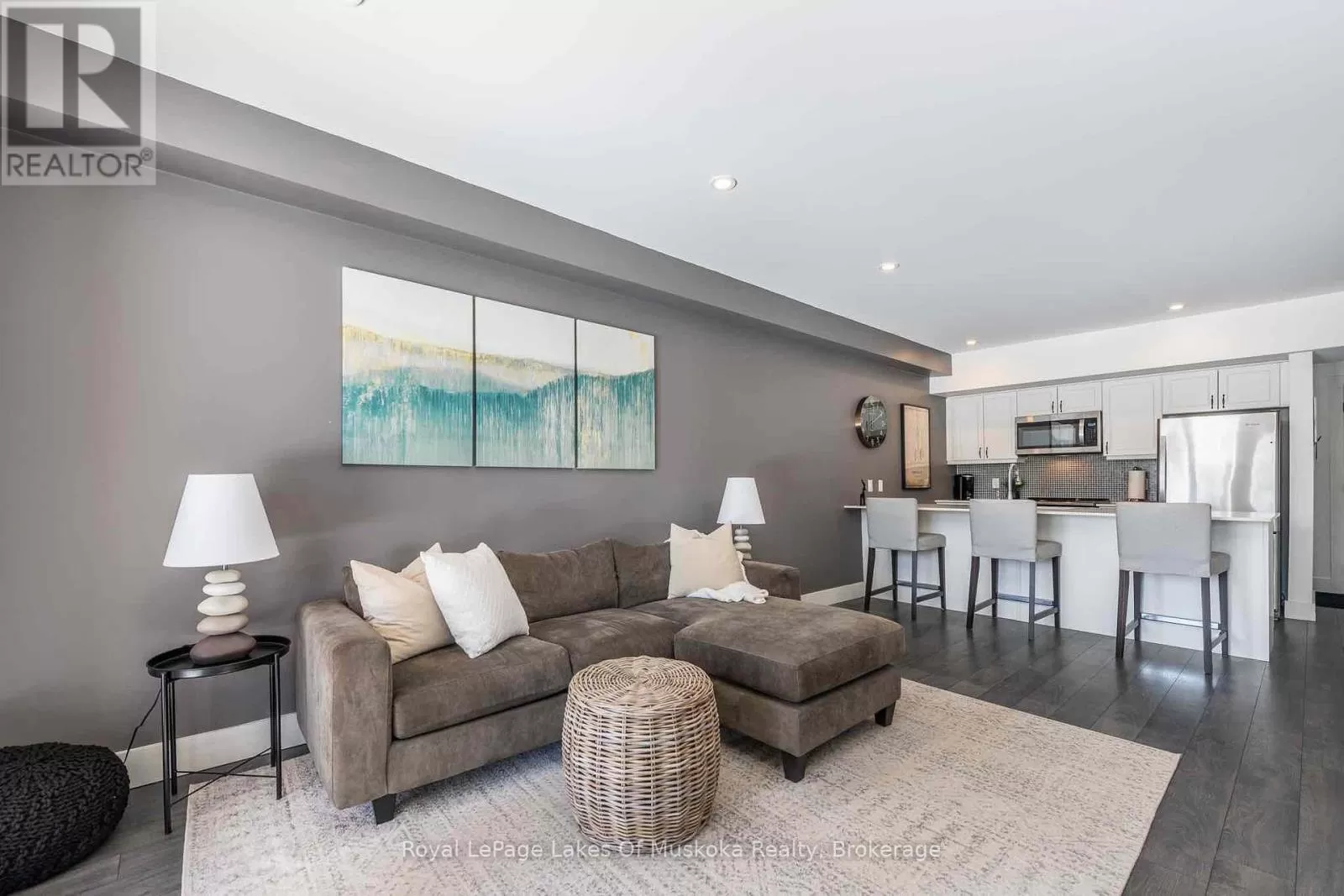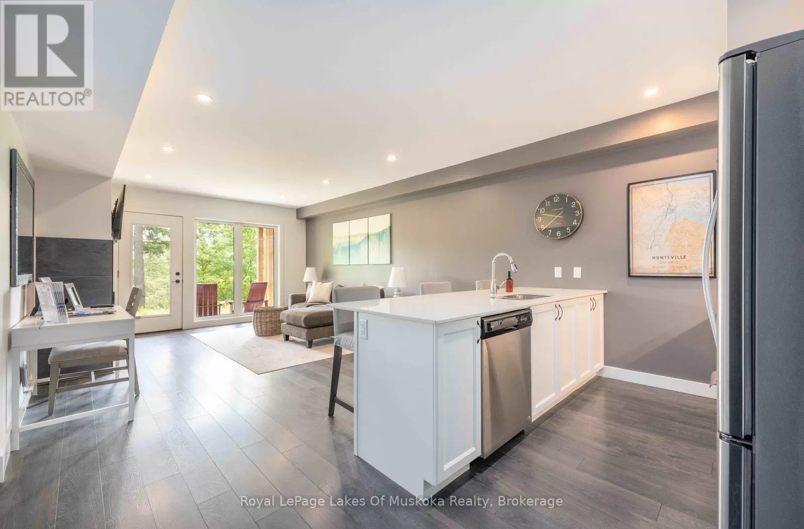 Cross Streets: Tree Tops Lane/Deerhurst Drive. ** Directions: HWY 60 To Canal Road to Deerhurst dr to Tree Tops (number 3). Amazing opportunity to own this beautiful condo close to Deerhurst, built in 2019 and nestled in a private quiet enclave in the heart of all the finest recreational amenities Huntsville has to offer. Just down the street from Hidden Valley Highlands ski hill where you are now a member! Members enjoy a private members lounge at the ski hill and a 300' + sandy beachfront with a beach volley ball court on beautiful Peninsula Lake - part of Huntsville's 4 lake system. You are also now a member of Mark O'Meara a prestigious ClubLink platinum level golf course. Enjoy an incredible new lifestyle in your like new 2 bedroom 2 bathroom condo with upscale finishes. Perfect for pets with high end vinyl flooring and a walk out to your ground level patio facing a wall of trees. So many bonuses- affordable condo fees, in floor heating, gas fireplace, glass shower in ensuite, open concept, designer kitchen, ample storage, and in-suite laundry. Sunlit and thoughtfully designed. Spacious for your relaxation and entertaining apres ski, golf, beach day or just enjoying the sun on your patio while you barbecue. Just across the road from Deerhurst but on a dead end quiet street so you can walk to all the neighbouring restaurants, beach, ski hill, mountain bike trails, hiking trails and more! Also could be a fantastic low maintenance option for an alternative cottage and cover some costs by renting out part time. (id:27476)