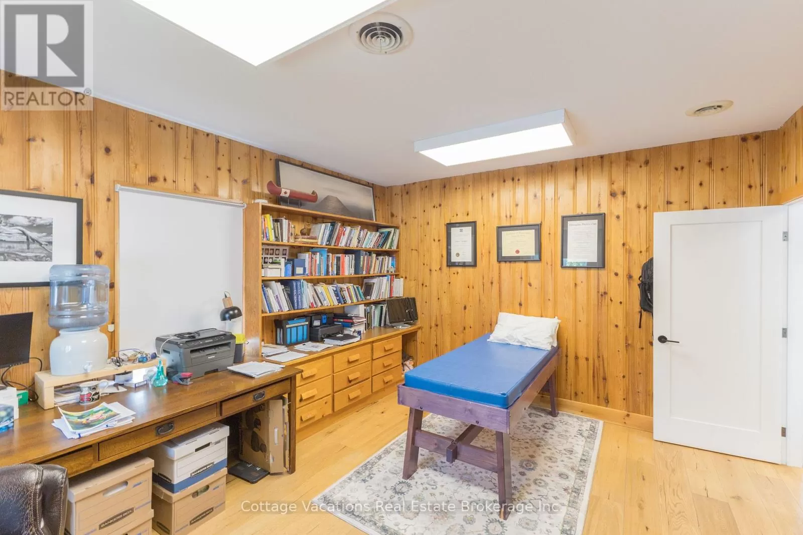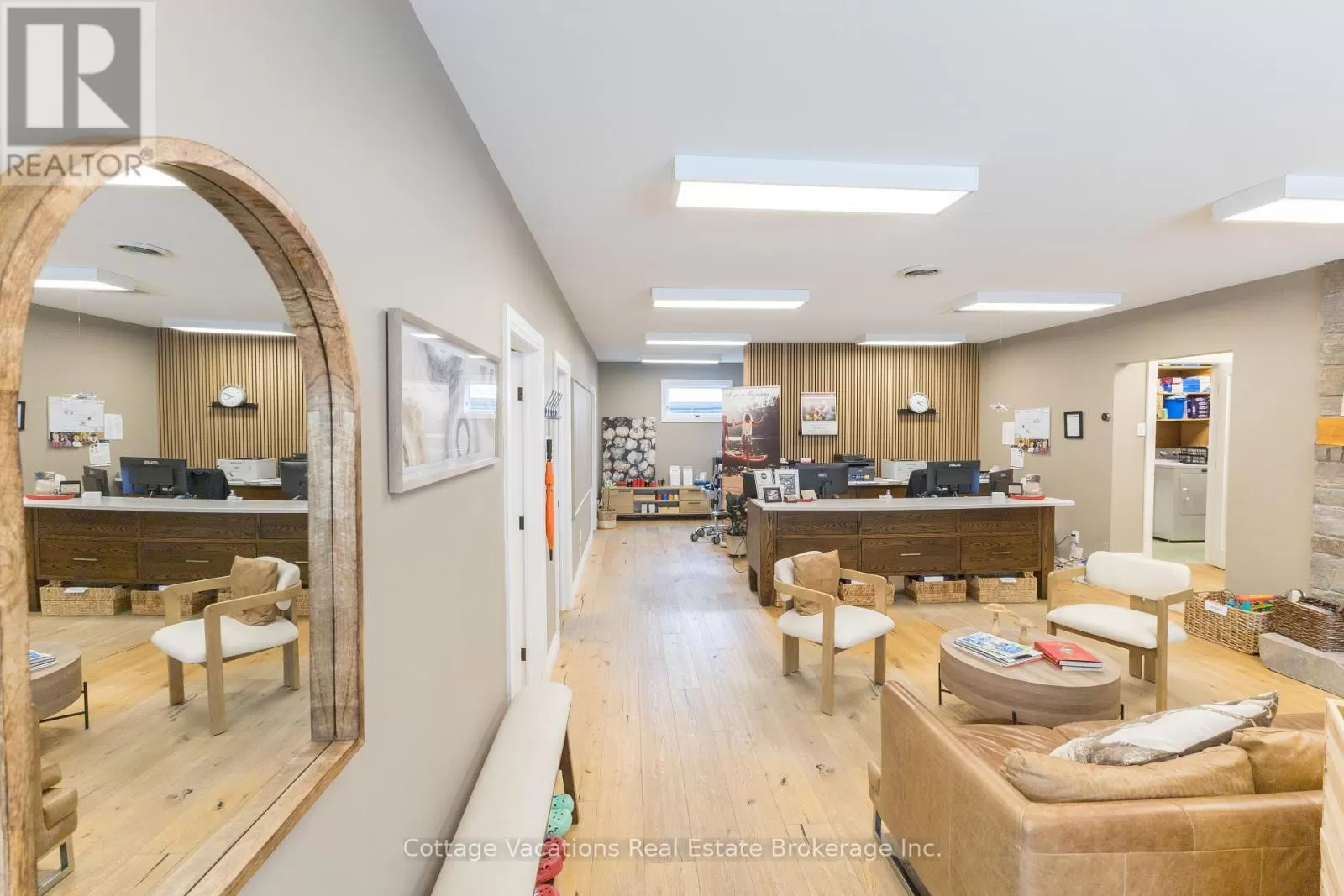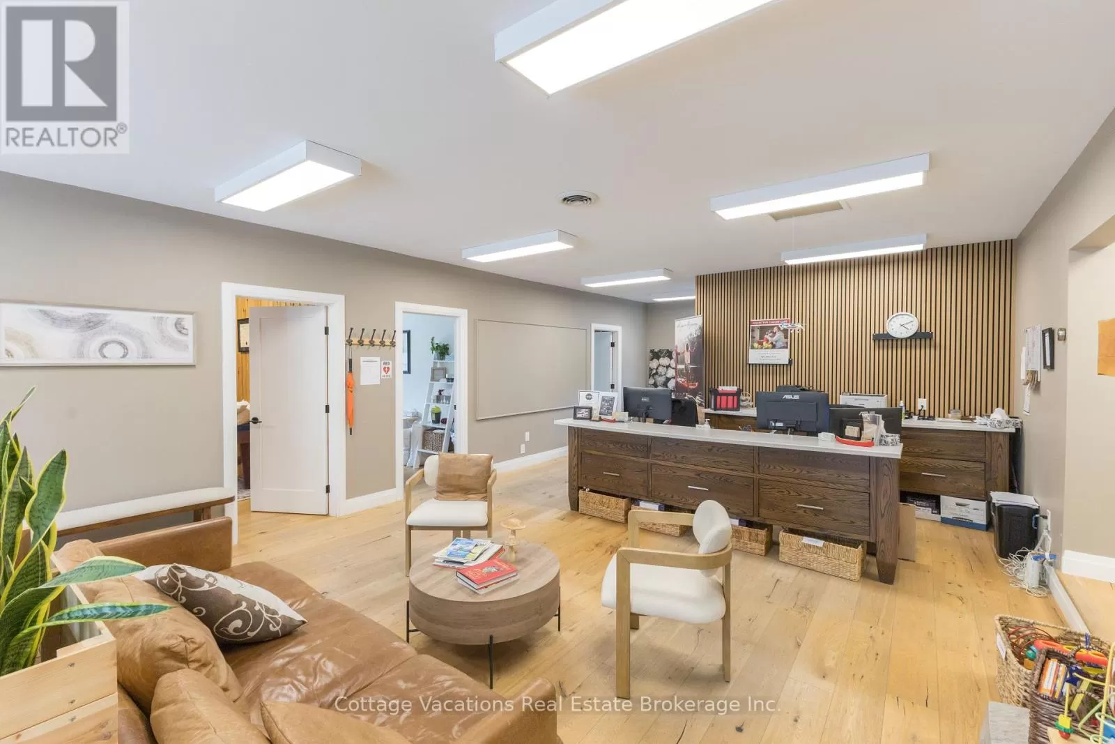 Cross Streets: King William. ** Directions: King William to Brunel Road. Ideal location for a commercial building featuring two available lease spaces. One is occupied by a triple-A long-term tenant, while the other is vacant and ready for leasing. This prime location in downtown Huntsville is just steps away from Main Street, the Muskoka River, the renowned swing bridge, and the lively community that Huntsville provides.The upper level boasts a spacious 1,500 square foot bright office area with walk-in entry. It is equipped with fibre internet and phone connectivity. The space includes enhancements such as Caesarstone countertops in the kitchen and bathroom, solid engineered hardwood flooring, and robust interior doors. Additionally, there is a granite entryway and a wood-burning fireplace. The layout comprises three private, roomy offices, a large open workspace, a kitchen area, a bathroom with a shower, and two storage rooms. The renovations are quite impressive. The lower level features a wall of windows providing excellent street front visibility, situated near the intersection of Main Street and Brunel, with a rare and commanding 33 feet of street-level frontage on Brunel Road. The 920 square foot area is designed with three offices, an open common area with a reception space, and one restroom. This property is located in the Central Business District with C7 zoning, allowing for a wide range of permitted uses, and includes six dedicated parking spots. (id:27476)