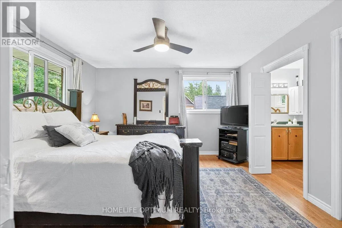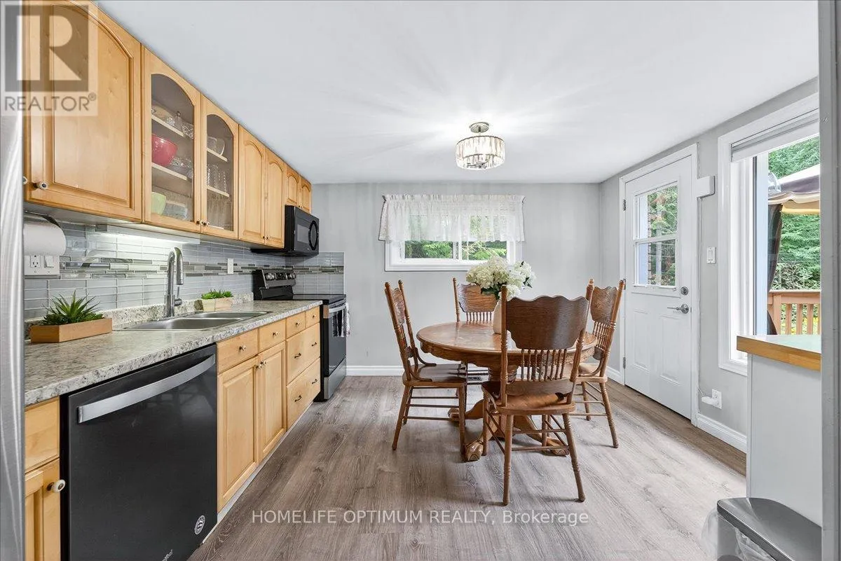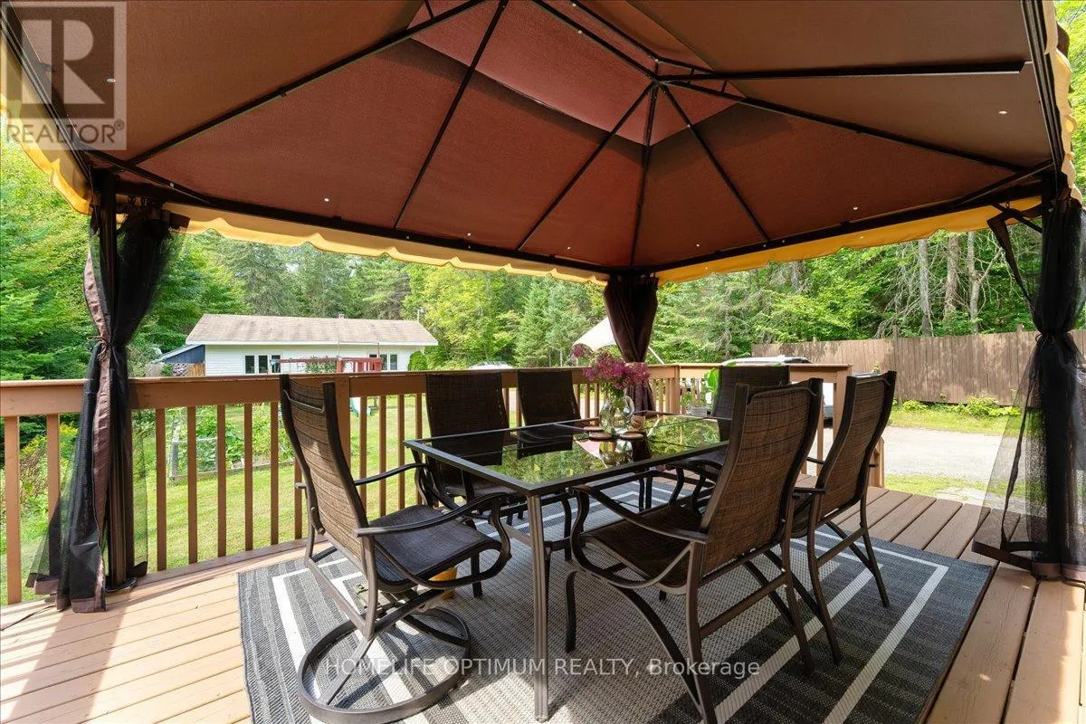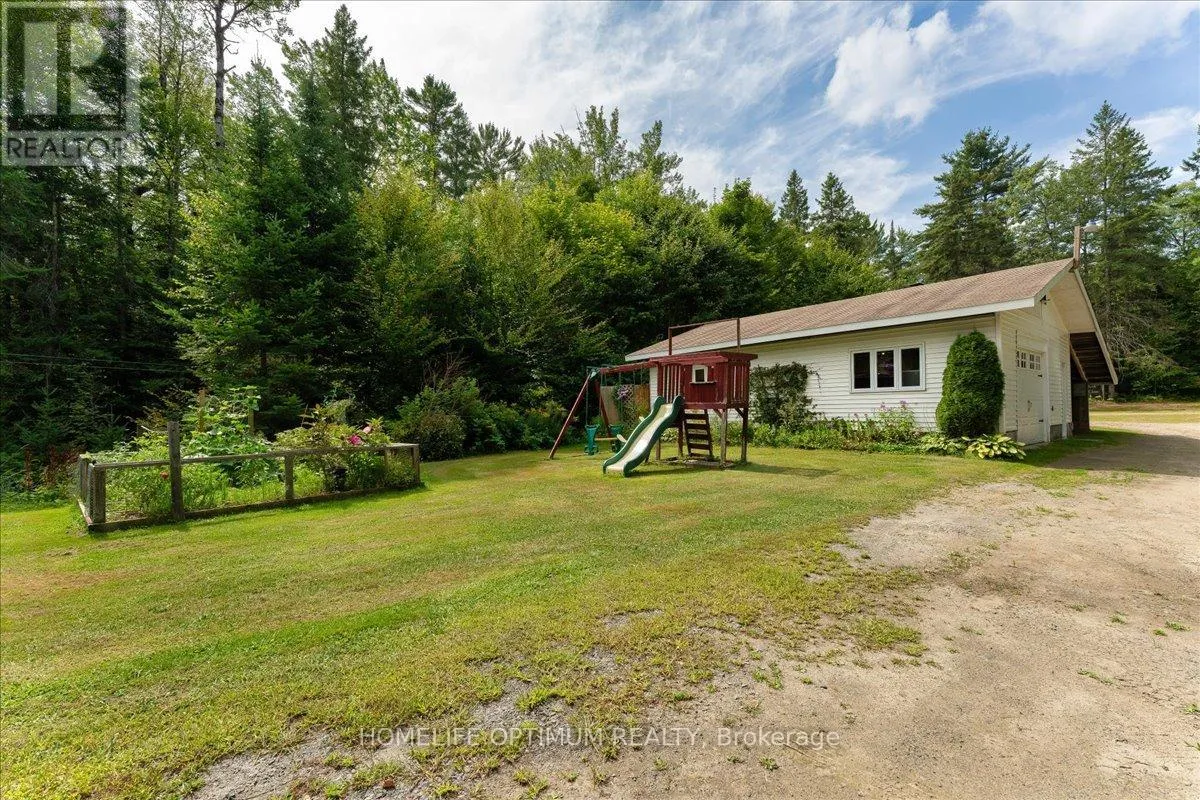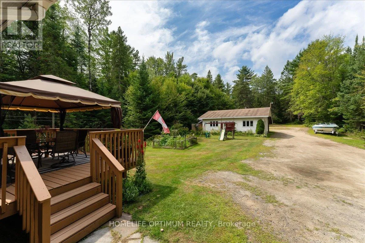 Cross Streets: Muskoka rd 3 N and Woodstream DR. ** Directions: Hwy 11 to Hwy 60 and then turn left on Muskoka RD 3 N to 788. Welcome to this charming 3-bedroom side-split home set on a deep 258-foot lot, backing onto beautiful green space with a walking trail. While located in town, this property offers the peaceful feeling of country living and a rare combination of convenience and tranquility. Inside, the main floor features a bright living room with hardwood floors, a spacious kitchen with pantry, walk-out to the deck, and a convenient main floor laundry. A main floor bedroom and 4-piece bathroom complete this level. Upstairs, you'll find the primary bedroom with walk-in closet and 2-piece ensuite, along with the third bedroom.The lower level offers additional living space with a basement walk-up and a cozy wood stove perfect for those Muskoka evenings. The home is efficiently heated with forced-air propane, ensuring year-round comfort.For those who need extra storage or work space, the property includes a 22 x 30 two-car garage with a carport, plus a handy temporary shelter.Surrounded by a natural setting yet close to all town amenities, this home truly delivers the best of both worlds: small-town convenience with a welcoming country feel all in a fantasticHuntsville location. (id:27476)