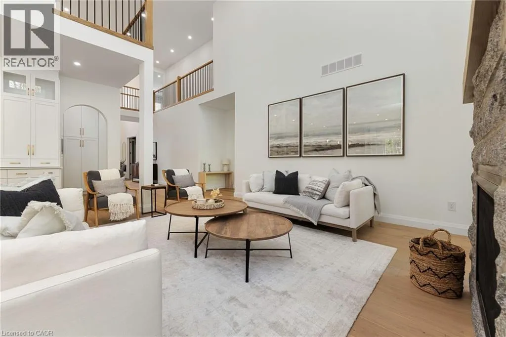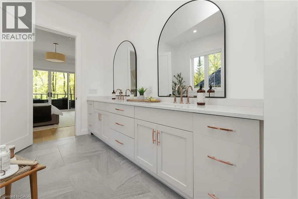 St Andrew's Circle to St Georges This stunning residence embodies the epitome of modern luxury, seamlessly integrated into a breathtaking natural landscape. Nestled among towering trees and backing onto Hole 11 of Deerhurst Highlands Golf Course, this 6800+ Square foot masterpiece offers 6 spacious bedrooms and 4.5 bathrooms, privacy, tranquility, and every imaginable comfort. The open-concept main floor features pre-engineered oak flooring and a striking granite stone fireplace that anchors the living space. The gourmet kitchen is equipped with top-tier appliances, including a double wall oven, French door fridge, and built-in coffee maker. It also includes quartz countertops, a walk-in pantry, and custom cabinetry designed for both beauty and functionality. The thoughtful layout offers both a main floor and 2nd floor primary suite, each complete with luxurious en-suites featuring steam showers (main floor only) and soaker tubs. Every bathroom exudes spa-like sophistication. Enjoy 2 cozy fireplaces, 2 balconies, and a walk-out patio inviting you to relax and take in the beauty of the surrounding forest. The 2nd floor offers 3 additional bedrooms and 2 bathrooms, allowing for additional family to enjoy their own luxurious spaces. The walk-out lower level features in-floor heating, a stylish wet bar, additional bedrooms, and a generous living space ideal for entertaining. The heated 3 bay garage, also with in-floor heating, provides exceptional comfort and convenience year-round. Outside, the landscaped grounds are perfect for evenings spent under the stars. Conveniently located near schools, shopping, and scenic trails, yet tucked away in a quiet enclave, this home offers the perfect balance of seclusion and accessibility. With easy highway access, exploring all that Huntsville and Muskoka have to offer has never been easier. Don't miss your chance to own this rare retreat where luxury meets nature. Prepare to fall in love with the unparalleled beauty and craftsmanship of this home. (id:27476)