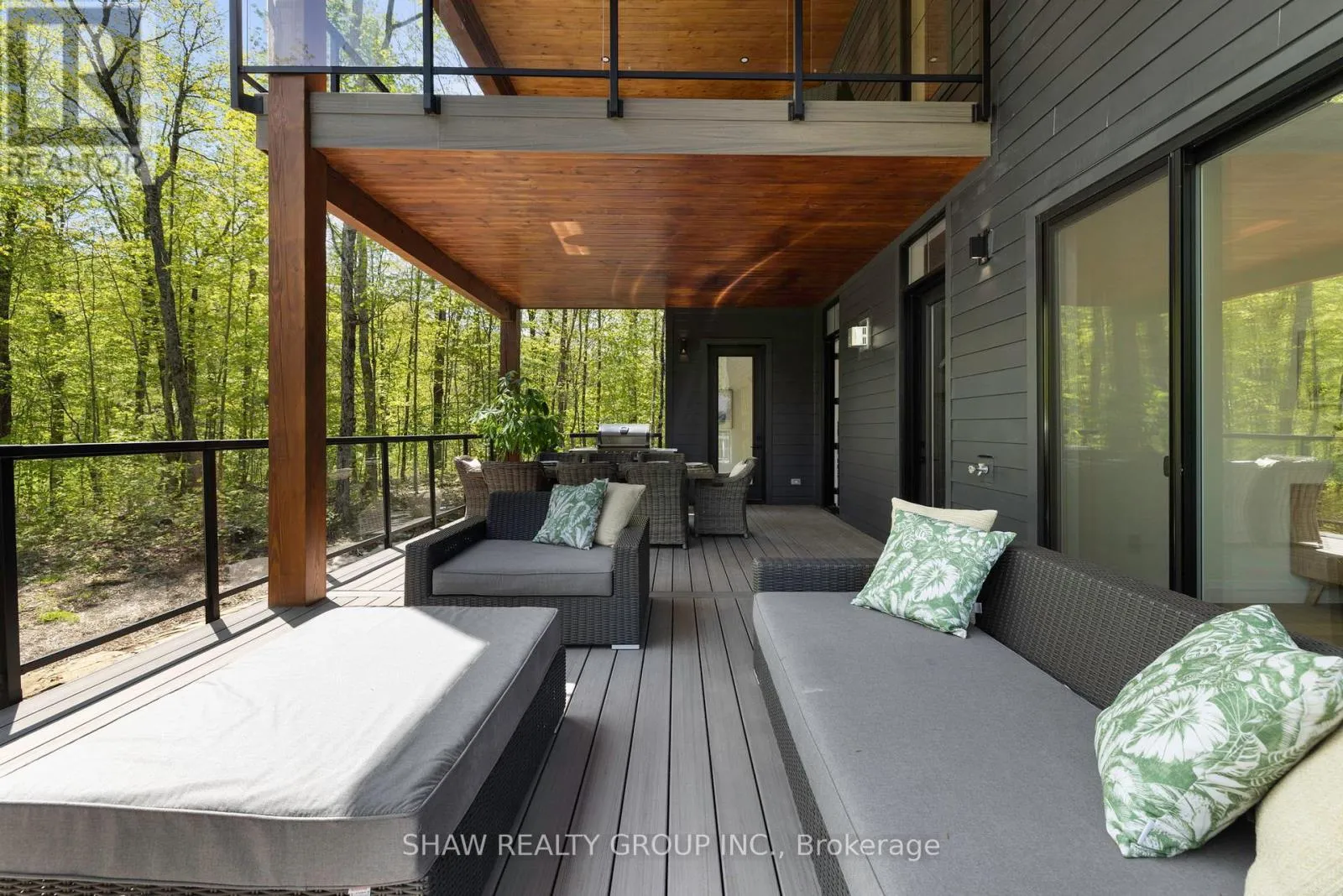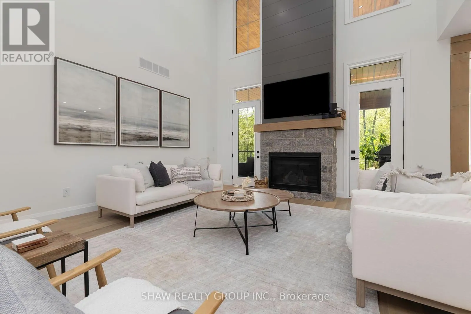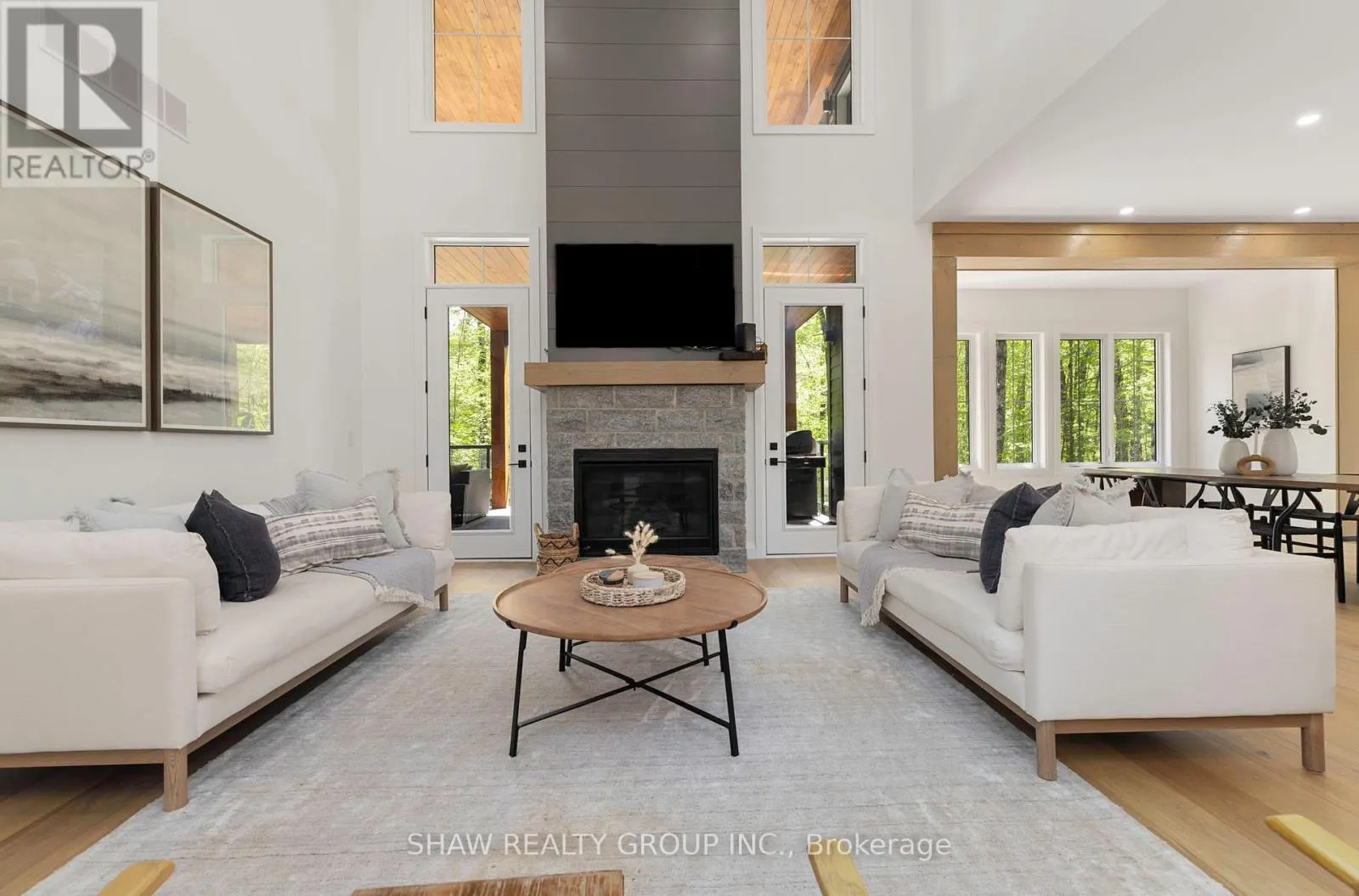 St Andrew's Circle to St Georges This stunning residence embodies the epitome of modern luxury, seamlessly integrated into a breathtaking natural landscape. Nestled among towering trees and backing onto Hole 11 of Deerhurst Highlands Golf Course, this 6800+ Square foot masterpiece offers 6 spacious bedrooms and 4.5 bathrooms, privacy, tranquility, and every imaginable comfort. The open-concept main floor features pre-engineered oak flooring and a striking granite stone fireplace that anchors the living space. The gourmet kitchen is equipped with top-tier appliances, including a double wall oven, French door fridge, and built-in coffee maker. It also includes quartz countertops, a walk-in pantry, and custom cabinetry designed for both beauty and functionality. The thoughtful layout offers both a main floor and 2nd floor primary suite, each complete with luxurious en-suites featuring steam showers (main floor only) and soaker tubs. Every bathroom exudes spa-like sophistication. Enjoy 2 cozy fireplaces, 2 balconies, and a walk-out patio inviting you to relax and take in the beauty of the surrounding forest. The 2nd floor offers 3 additional bedrooms and 2 bathrooms, allowing for additional family to enjoy their own luxurious spaces. The walk-out lower level features in-floor heating, a stylish wet bar, additional bedrooms, and a generous living space ideal for entertaining. The heated 3 bay garage, also with in-floor heating, provides exceptional comfort and convenience year-round. Outside, the landscaped grounds are perfect for evenings spent under the stars. Conveniently located near schools, shopping, and scenic trails, yet tucked away in a quiet enclave, this home offers the perfect balance of seclusion and accessibility. With easy highway access, exploring all that Huntsville and Muskoka have to offer has never been easier. Don't miss your chance to own this rare retreat where luxury meets nature. Prepare to fall in love with the unparalleled beauty and craftsmanship of this home. (id:27476)
