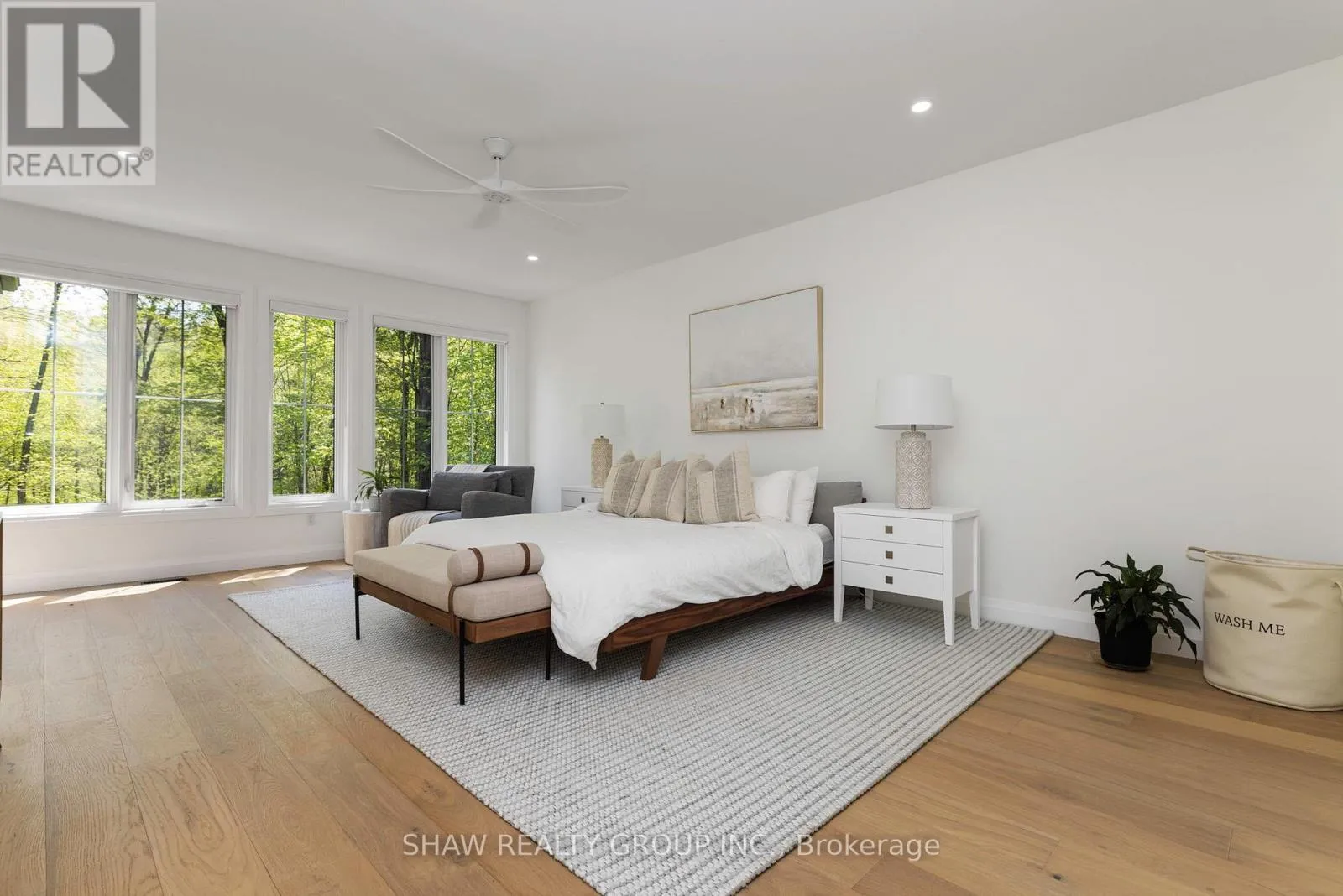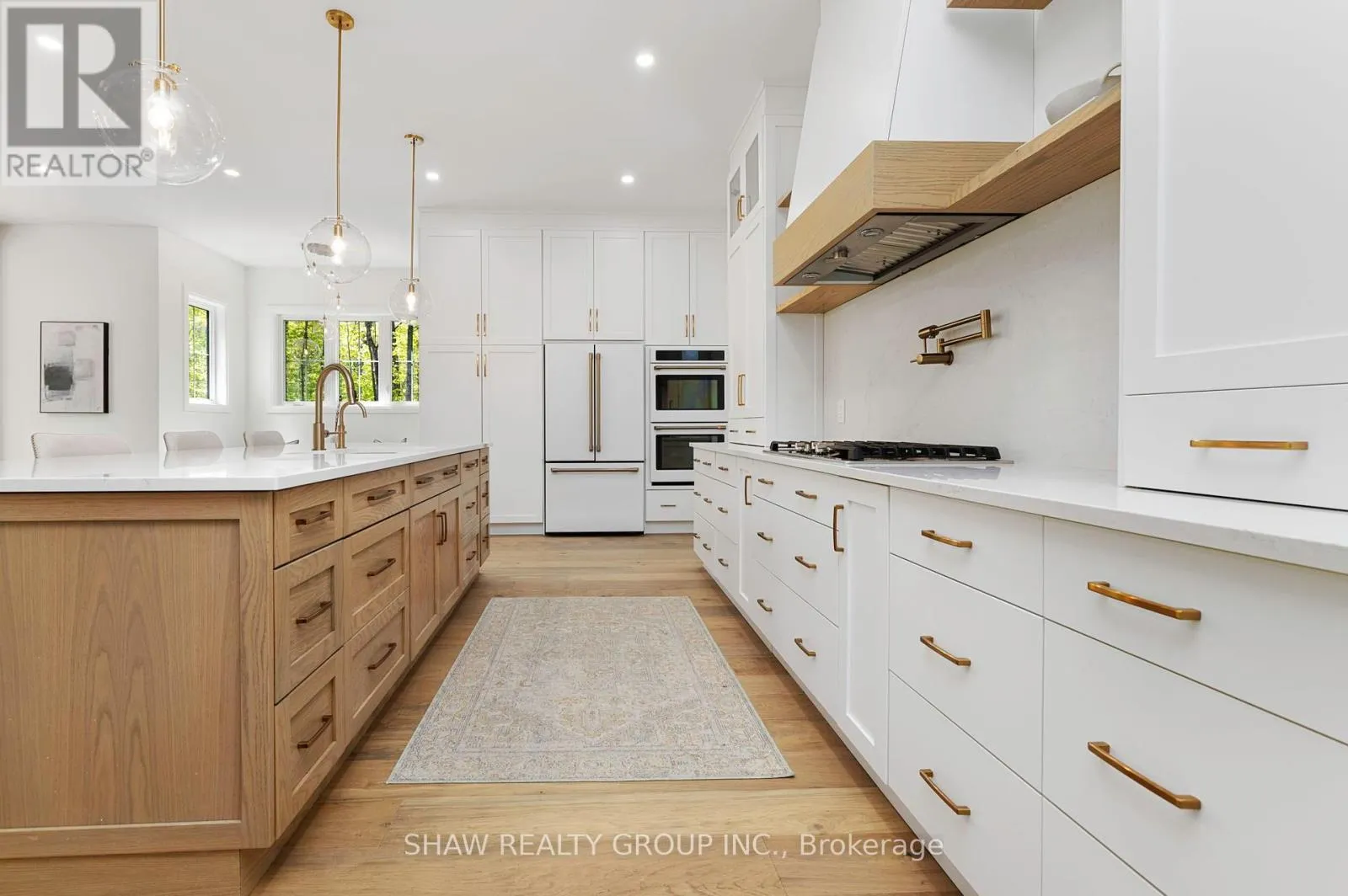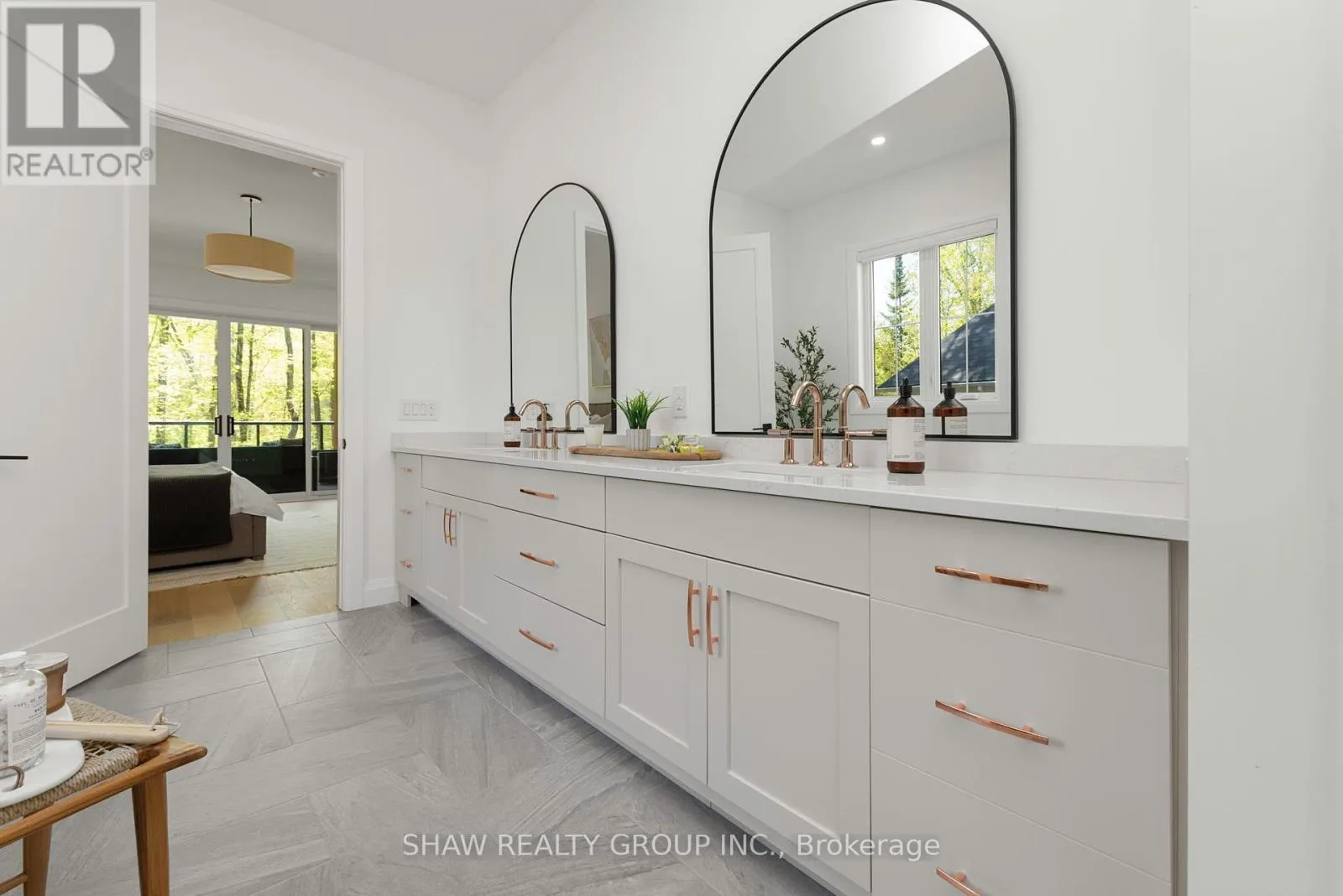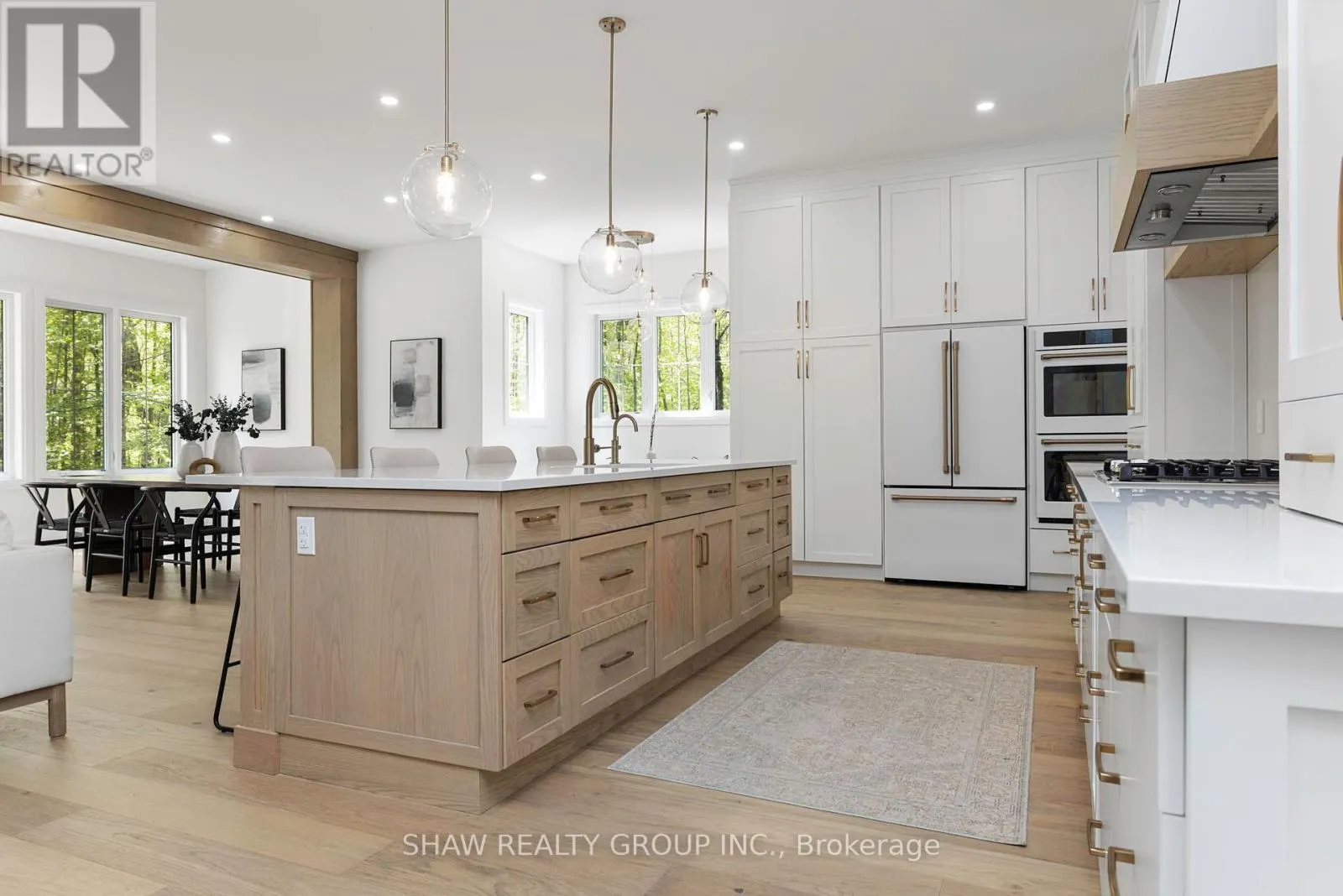 St Andrew's Circle to St Georges This stunning residence embodies the epitome of modern luxury, seamlessly integrated into a breathtaking natural landscape. Nestled among towering trees and backing onto Hole 11 of Deerhurst Highlands Golf Course, this 6800+ Square foot masterpiece offers 6 spacious bedrooms and 4.5 bathrooms, privacy, tranquility, and every imaginable comfort. The open-concept main floor features pre-engineered oak flooring and a striking granite stone fireplace that anchors the living space. The gourmet kitchen is equipped with top-tier appliances, including a double wall oven, French door fridge, and built-in coffee maker. It also includes quartz countertops, a walk-in pantry, and custom cabinetry designed for both beauty and functionality. The thoughtful layout offers both a main floor and 2nd floor primary suite, each complete with luxurious en-suites featuring steam showers (main floor only) and soaker tubs. Every bathroom exudes spa-like sophistication. Enjoy 2 cozy fireplaces, 2 balconies, and a walk-out patio inviting you to relax and take in the beauty of the surrounding forest. The 2nd floor offers 3 additional bedrooms and 2 bathrooms, allowing for additional family to enjoy their own luxurious spaces. The walk-out lower level features in-floor heating, a stylish wet bar, additional bedrooms, and a generous living space ideal for entertaining. The heated 3 bay garage, also with in-floor heating, provides exceptional comfort and convenience year-round. Outside, the landscaped grounds are perfect for evenings spent under the stars. Conveniently located near schools, shopping, and scenic trails, yet tucked away in a quiet enclave, this home offers the perfect balance of seclusion and accessibility. With easy highway access, exploring all that Huntsville and Muskoka have to offer has never been easier. Don't miss your chance to own this rare retreat where luxury meets nature. Prepare to fall in love with the unparalleled beauty and craftsmanship of this home. (id:27476)