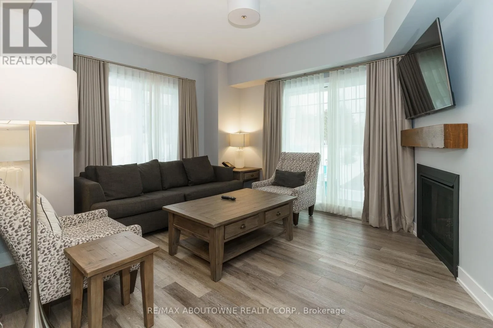Cross Streets: Hwy 60, Right onto Deerhurst Drive, past the main pavilion, right towards the lake to Lakeside Lodge. ** Directions: Hwy 60, Right onto Deerhurst Drive, past the main pavilion,right towards the lake to Lakeside Lodge. Stunning 2-Bedroom Milford Bay Model at Lakeside Lodge, Deerhurst Resort. This rare corner suite offers breathtaking eastern views of Peninsula Lake. Featuring two spacious bedrooms and two bathrooms, including a private 3-piece ensuite and a walk-in closet in the primary bedroom, this unit is designed for comfort and style. Enjoy a custom kitchen with granite countertops and stainless steel appliances, and relax in the cozy living room with a gas fireplace and walkout to a second balcony, perfect for soaking in the morning sun and panoramic lake views. The suite is fully furnished and part of Deerhurst's rental program, allowing you to enjoy it as a personal retreat or generate rental income when not in use. As an owner, you'll have access to an impressive array of resort amenities, including indoor and outdoor pools, a beach, tennis courts, scenic trails, hot tubs, skating rinks, cross-country skiing, and more. Hidden Valley Ski Resort and Deerhurst Golf Course are just steps away, with Huntsville and Algonquin Park only a short drive from your door. (id:27476)