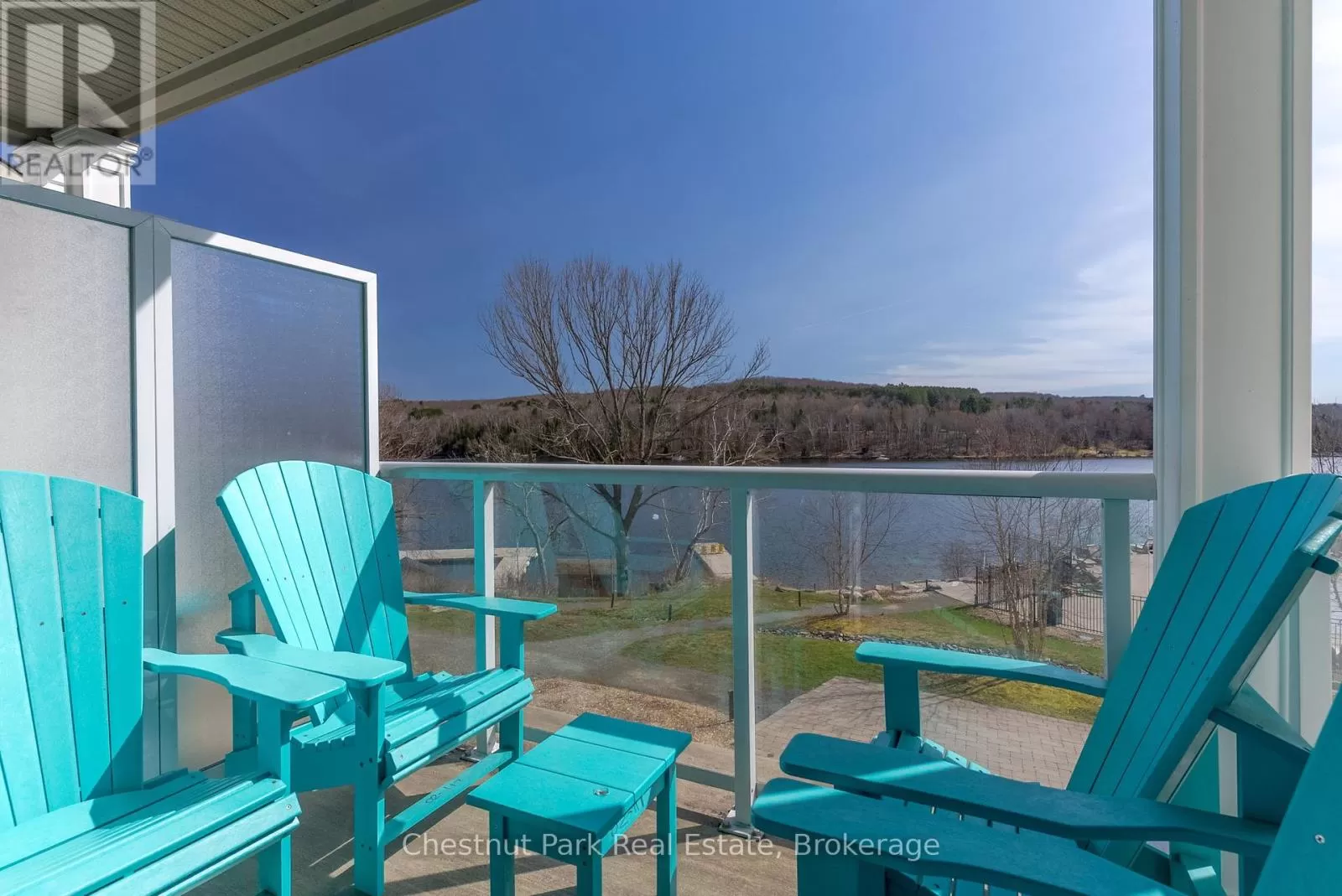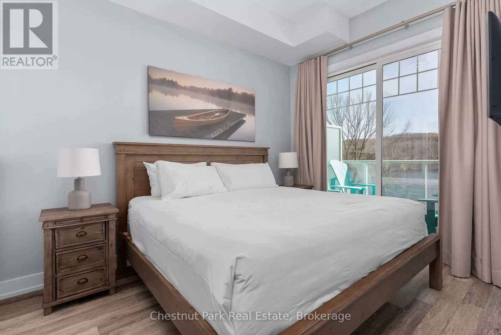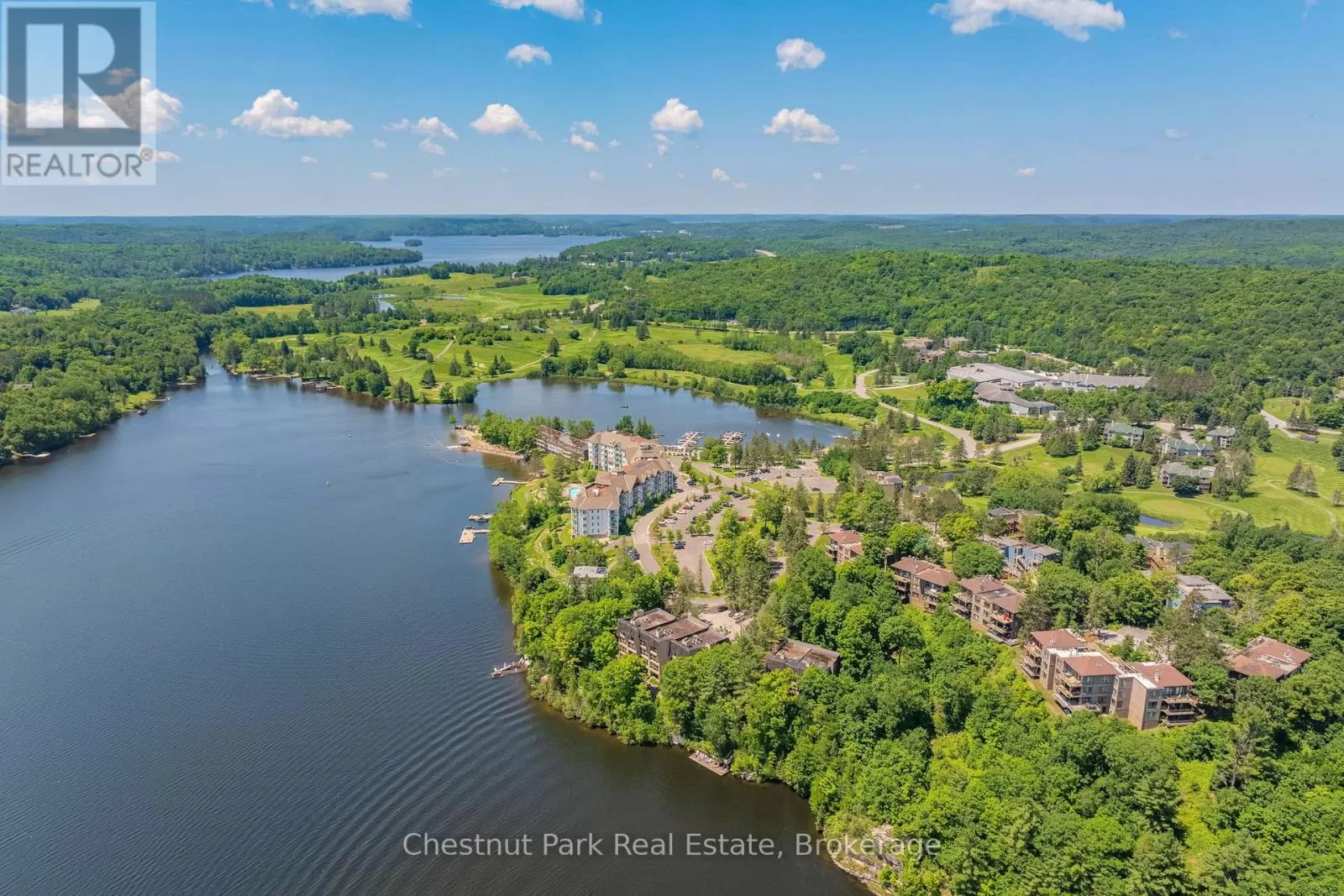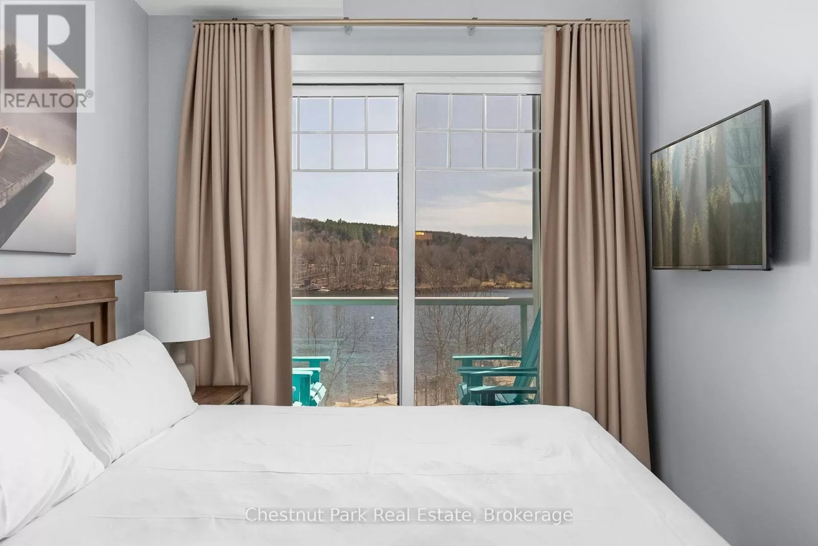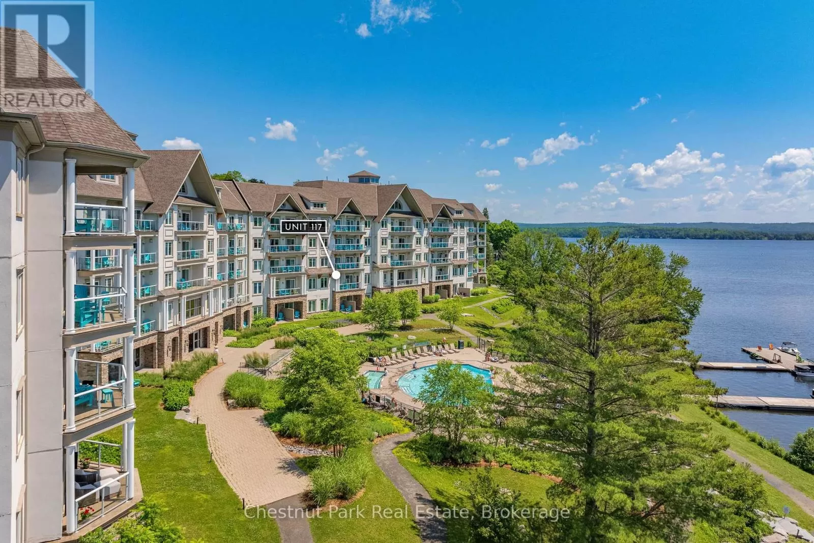 Cross Streets: Deerhurst Lakeside. ** Directions: HWY 60 to Canal Road to Deerhurst Drive to Pen Lake Point Road to 25 Pen Lake Point Road /Lakeside Lodge to Unit #117. Welcome to this south-facing, 2-bedroom, 2-bathroom waterfront condo on the main floor of Lakeside Lodge, perfectly positioned on the shores of Peninsula Lake. Here, breathtaking views and lakeside serenity meet modern comfort without the hassle of upkeep.This turnkey unit offers flexibility for both lifestyle and investment. Currently part of the Deerhurst rental program, it generated over $20,000 in income from May - December 2024, with the added benefit of personal use whenever you choose. Inside, the open-concept layout showcases a sleek kitchen, in-suite laundry, and elegant finishes, all framed by uninterrupted lake views that set the stage for both quiet mornings and vibrant gatherings. As an owner, you will enjoy full access to Deerhurst Resorts world-class amenities, including: indoor & outdoor pools, fitness facilities & spa services. Exclusive owner discounts on golf, dining, and activities. Ownership at Lakeside Lodge also includes access to the private owners lounge, a welcoming hub for gatherings that fosters a true sense of community. Additional conveniences include a building gym, extra laundry facilities, and an outdoor pool overlooking the water. At Pen Lake Point, every day feels like a getaway. Whether you are seeking a peaceful retreat, a smart investment, or the perfect blend of both this property delivers the Muskoka lifestyle of leisure, recreation, and relaxation. (id:27476)