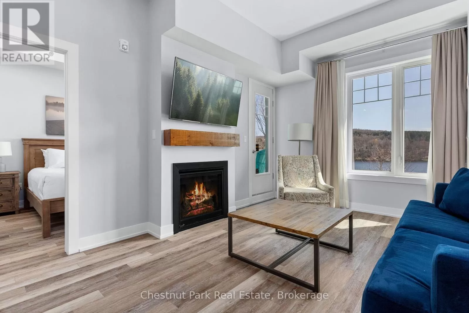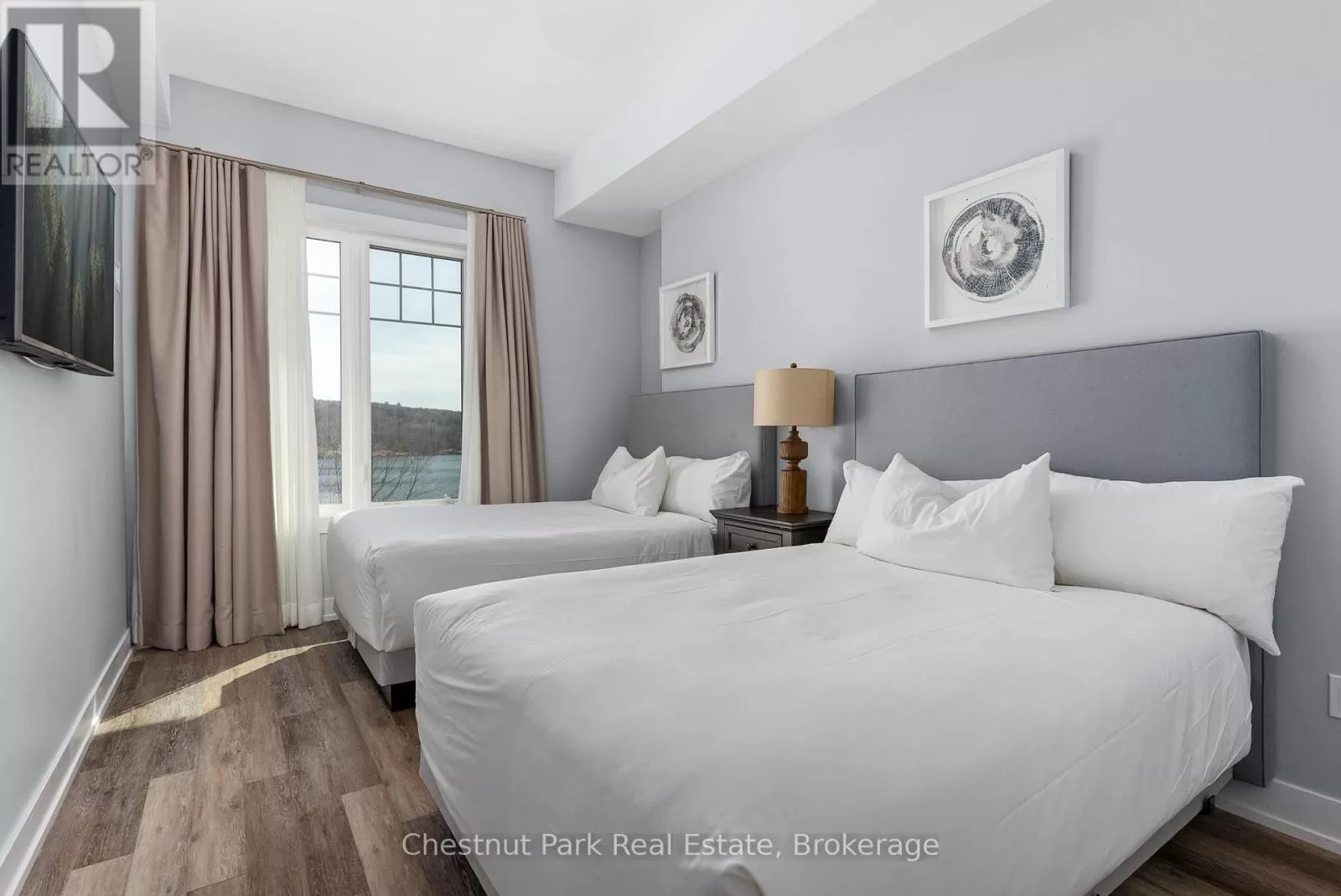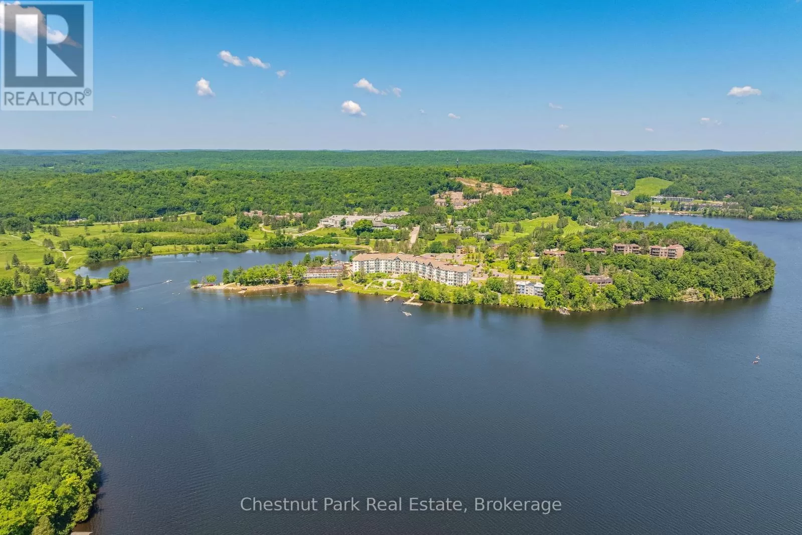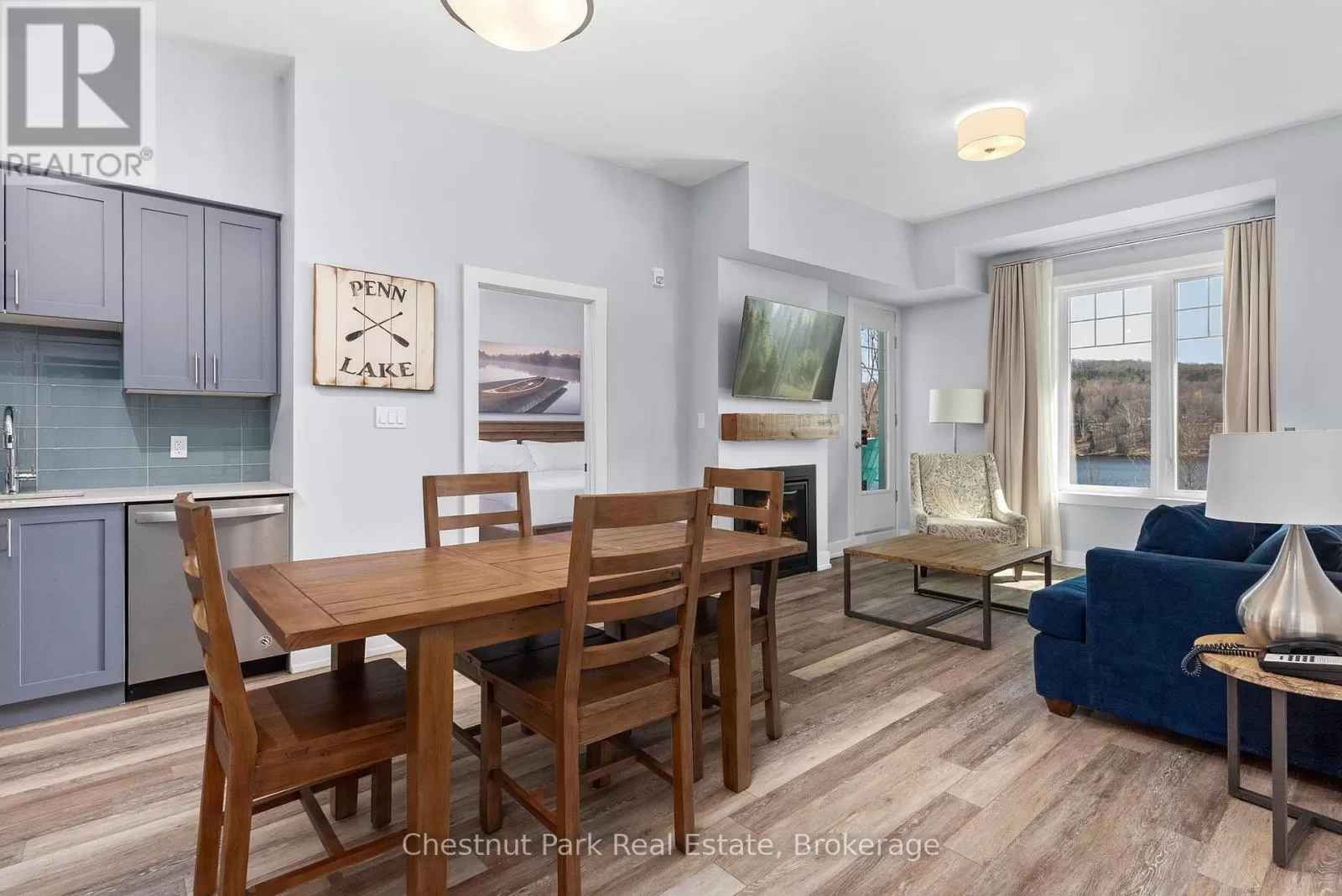 Cross Streets: Deerhurst Lakeside. ** Directions: HWY 60 to Canal Road to Deerhurst Drive to Pen Lake Point Road to 25 Pen Lake Point Road /Lakeside Lodge to Unit #117. Welcome to this south-facing, 2-bedroom, 2-bathroom waterfront condo on the main floor of Lakeside Lodge, perfectly positioned on the shores of Peninsula Lake. Here, breathtaking views and lakeside serenity meet modern comfort without the hassle of upkeep.This turnkey unit offers flexibility for both lifestyle and investment. Currently part of the Deerhurst rental program, it generated over $20,000 in income from May - December 2024, with the added benefit of personal use whenever you choose. Inside, the open-concept layout showcases a sleek kitchen, in-suite laundry, and elegant finishes, all framed by uninterrupted lake views that set the stage for both quiet mornings and vibrant gatherings. As an owner, you will enjoy full access to Deerhurst Resorts world-class amenities, including: indoor & outdoor pools, fitness facilities & spa services. Exclusive owner discounts on golf, dining, and activities. Ownership at Lakeside Lodge also includes access to the private owners lounge, a welcoming hub for gatherings that fosters a true sense of community. Additional conveniences include a building gym, extra laundry facilities, and an outdoor pool overlooking the water. At Pen Lake Point, every day feels like a getaway. Whether you are seeking a peaceful retreat, a smart investment, or the perfect blend of both this property delivers the Muskoka lifestyle of leisure, recreation, and relaxation. (id:27476)