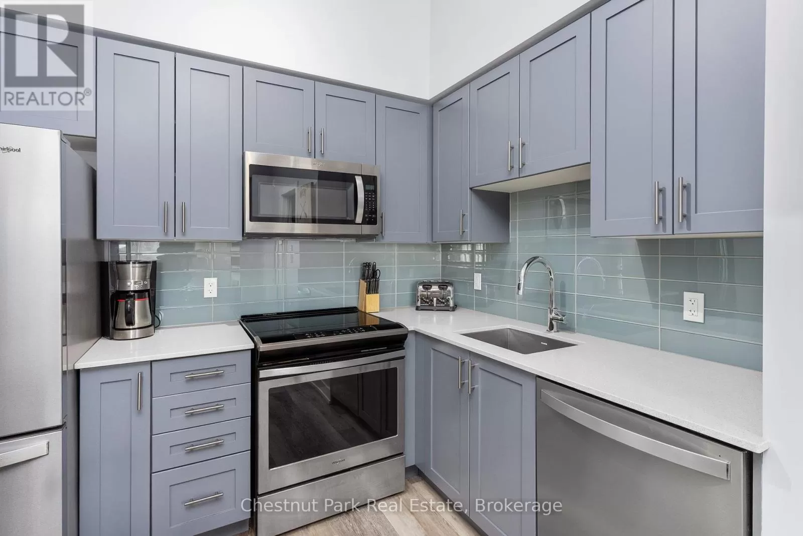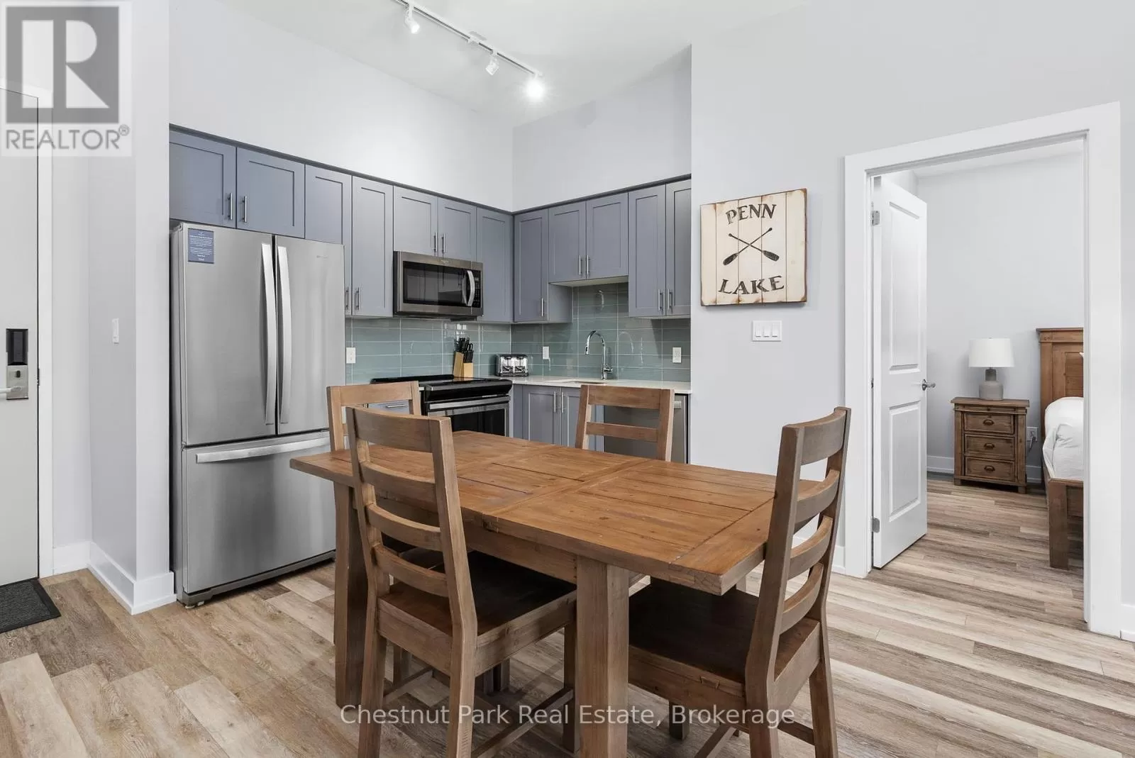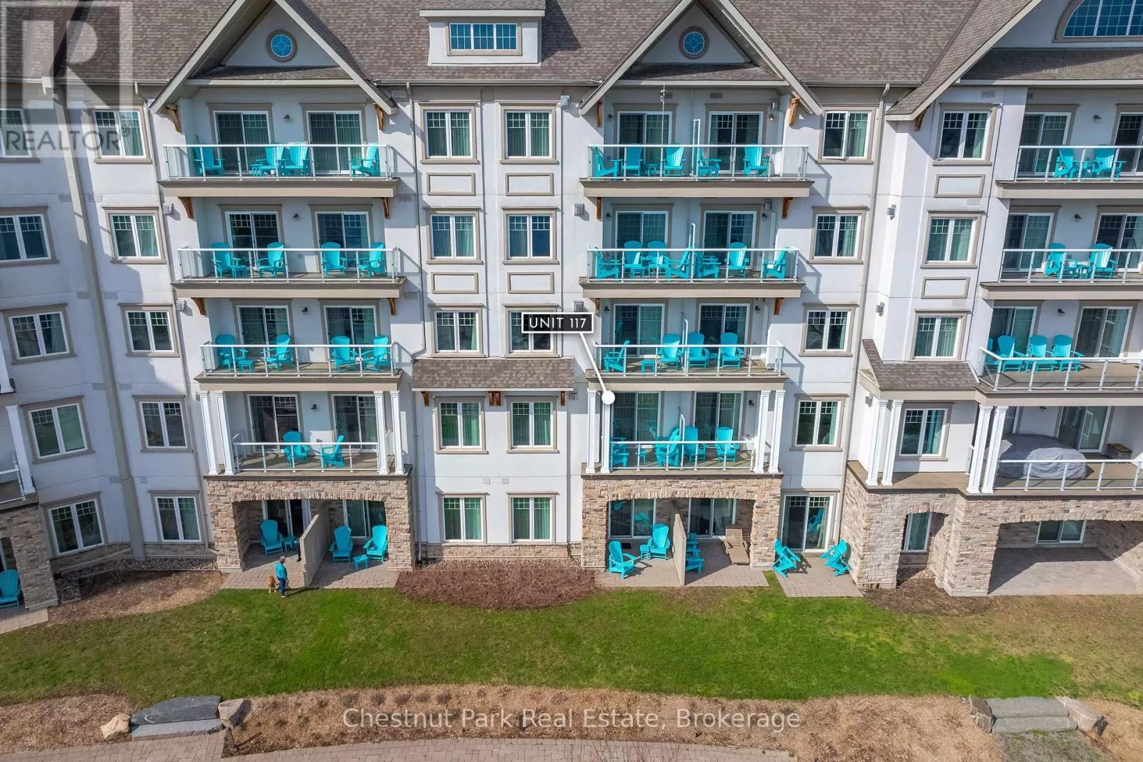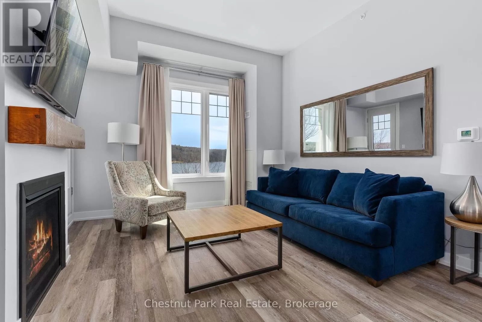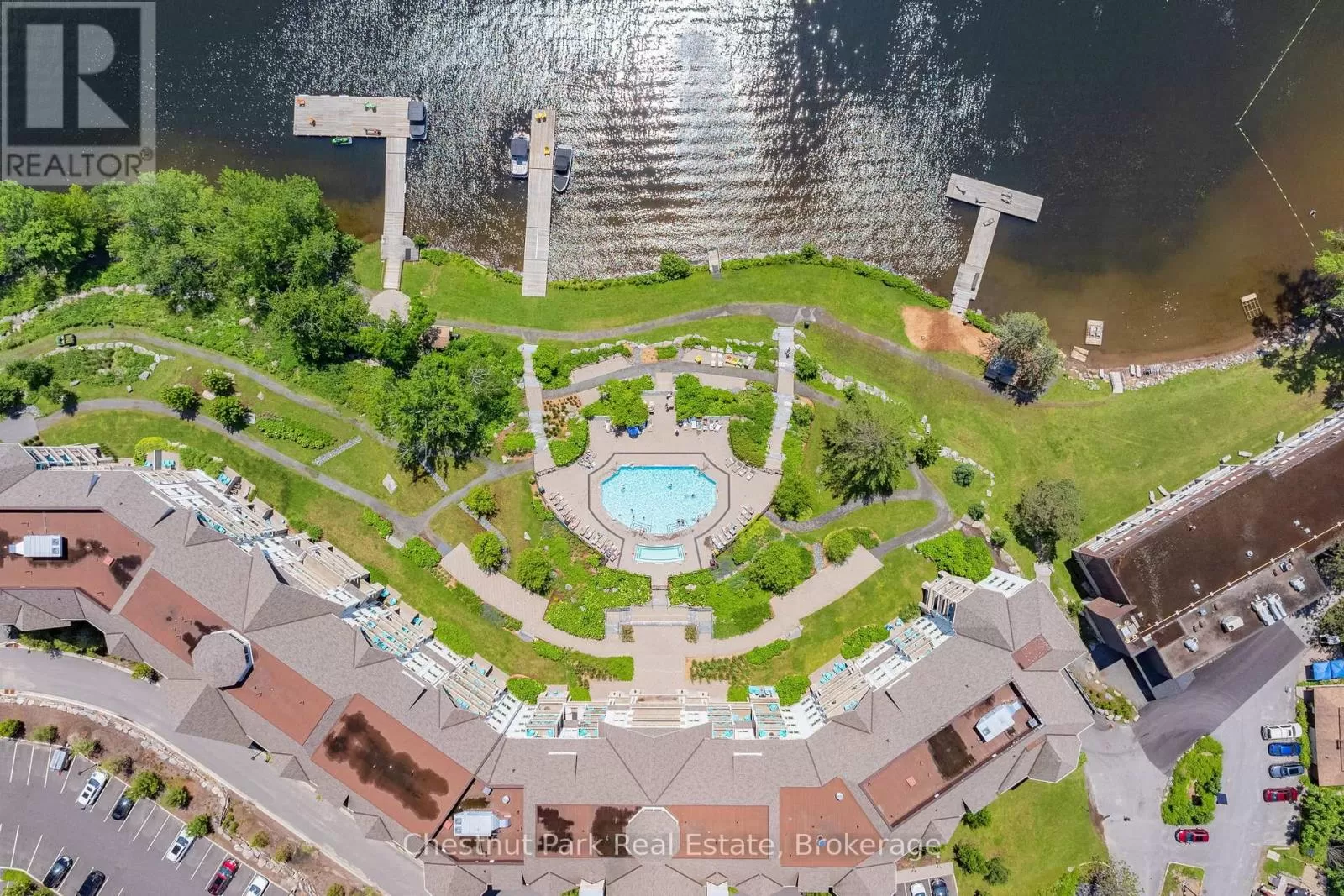 Cross Streets: Deerhurst Lakeside. ** Directions: HWY 60 to Canal Road to Deerhurst Drive to Pen Lake Point Road to 25 Pen Lake Point Road /Lakeside Lodge to Unit #117. Welcome to this south-facing, 2-bedroom, 2-bathroom waterfront condo on the main floor of Lakeside Lodge, perfectly positioned on the shores of Peninsula Lake. Here, breathtaking views and lakeside serenity meet modern comfort without the hassle of upkeep.This turnkey unit offers flexibility for both lifestyle and investment. Currently part of the Deerhurst rental program, it generated over $20,000 in income from May - December 2024, with the added benefit of personal use whenever you choose. Inside, the open-concept layout showcases a sleek kitchen, in-suite laundry, and elegant finishes, all framed by uninterrupted lake views that set the stage for both quiet mornings and vibrant gatherings. As an owner, you will enjoy full access to Deerhurst Resorts world-class amenities, including: indoor & outdoor pools, fitness facilities & spa services. Exclusive owner discounts on golf, dining, and activities. Ownership at Lakeside Lodge also includes access to the private owners lounge, a welcoming hub for gatherings that fosters a true sense of community. Additional conveniences include a building gym, extra laundry facilities, and an outdoor pool overlooking the water. At Pen Lake Point, every day feels like a getaway. Whether you are seeking a peaceful retreat, a smart investment, or the perfect blend of both this property delivers the Muskoka lifestyle of leisure, recreation, and relaxation. (id:27476)