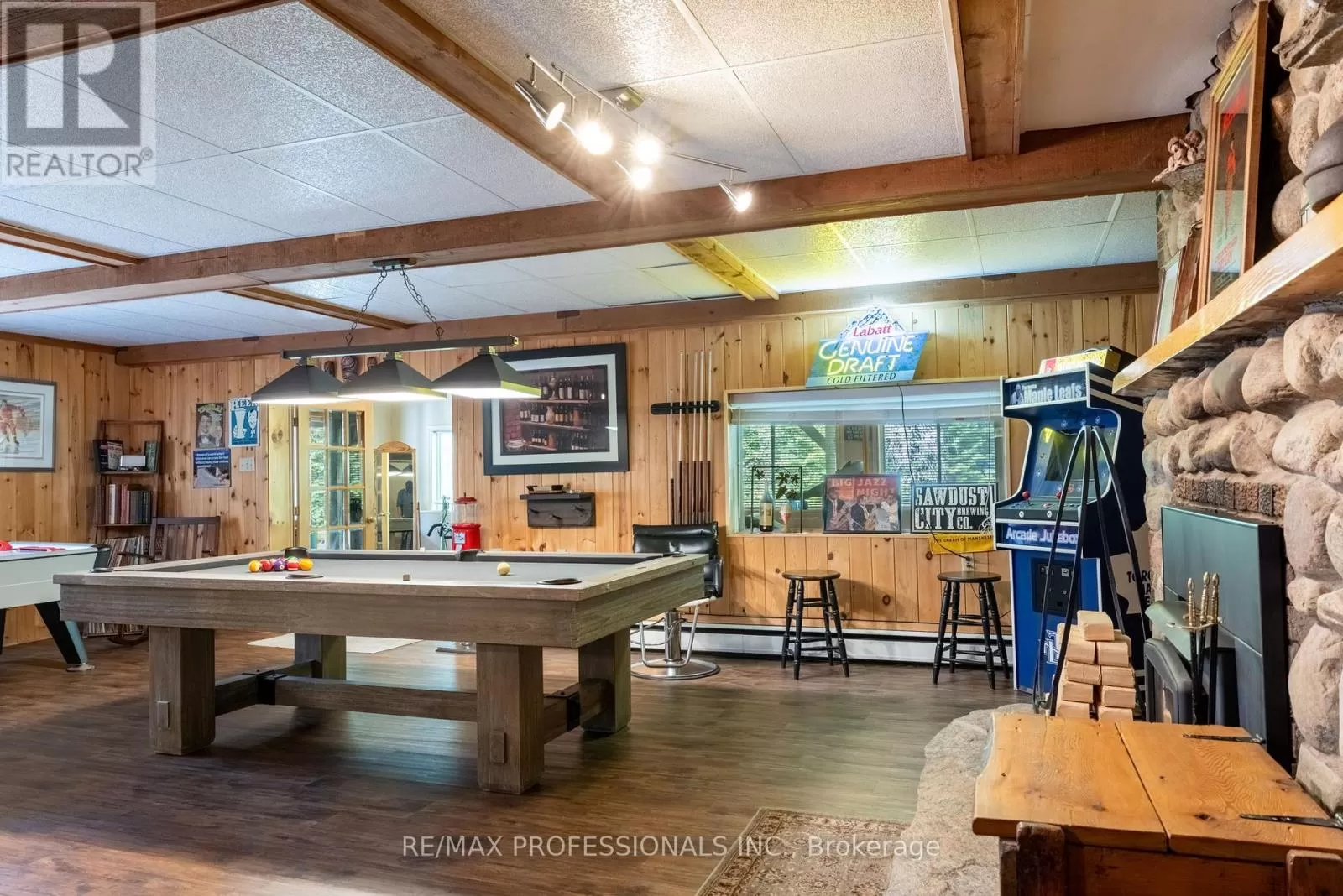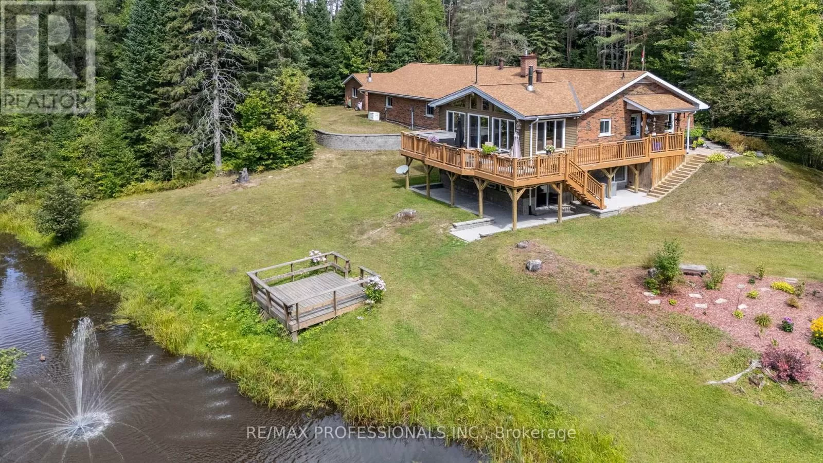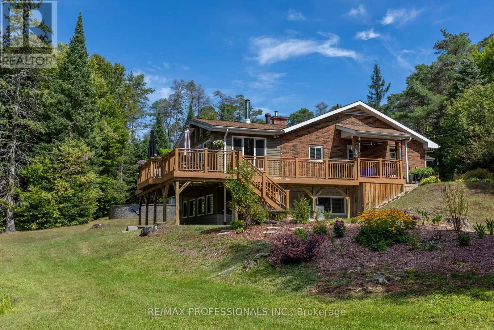 Cross Streets: Old Muskoka/South Lancelot. ** Directions: Use Apple Maps, Google Maps, or Waze. Muskoka Retreat on 3+ Acres with Pond, Trails & Endless Possibilities. Enjoy the best of country living with easy access to all essential amenities in Huntsville, Port Sydney, and Bracebridge. This private 3+ acre property combines natural beauty with everyday practicality, featuring a serene pond with fountain, winding wooded trails, and plenty of space for the whole family to enjoy. Open concept kitchen/dining ideal for entertaining. Primary bedroom with 4pc ensuite bathroom. Finished lower level with wood-burning fireplace and 3pc bathroom offers excellent flexibility for multi-generational living or guests. Efficient radiant heat keeps the home comfortable year-round. A double garage plus separate workshop provide ample room for vehicles, storage, or hobbies. With Lakeland fibre optic internet available, you can stay connected while soaking in Muskoka's peace and quiet. Conveniently located near Hwy 11 and just 2 hours from the GTA, this is a true four-season escape. A must-see gem, book your showing today! (id:27476)