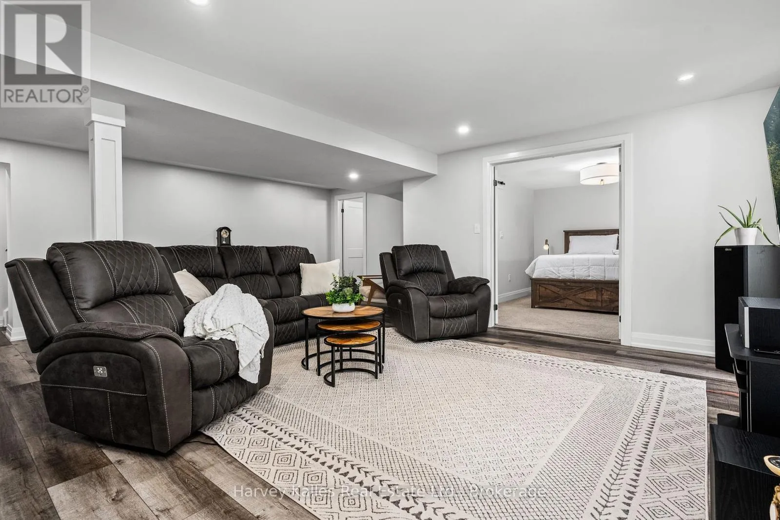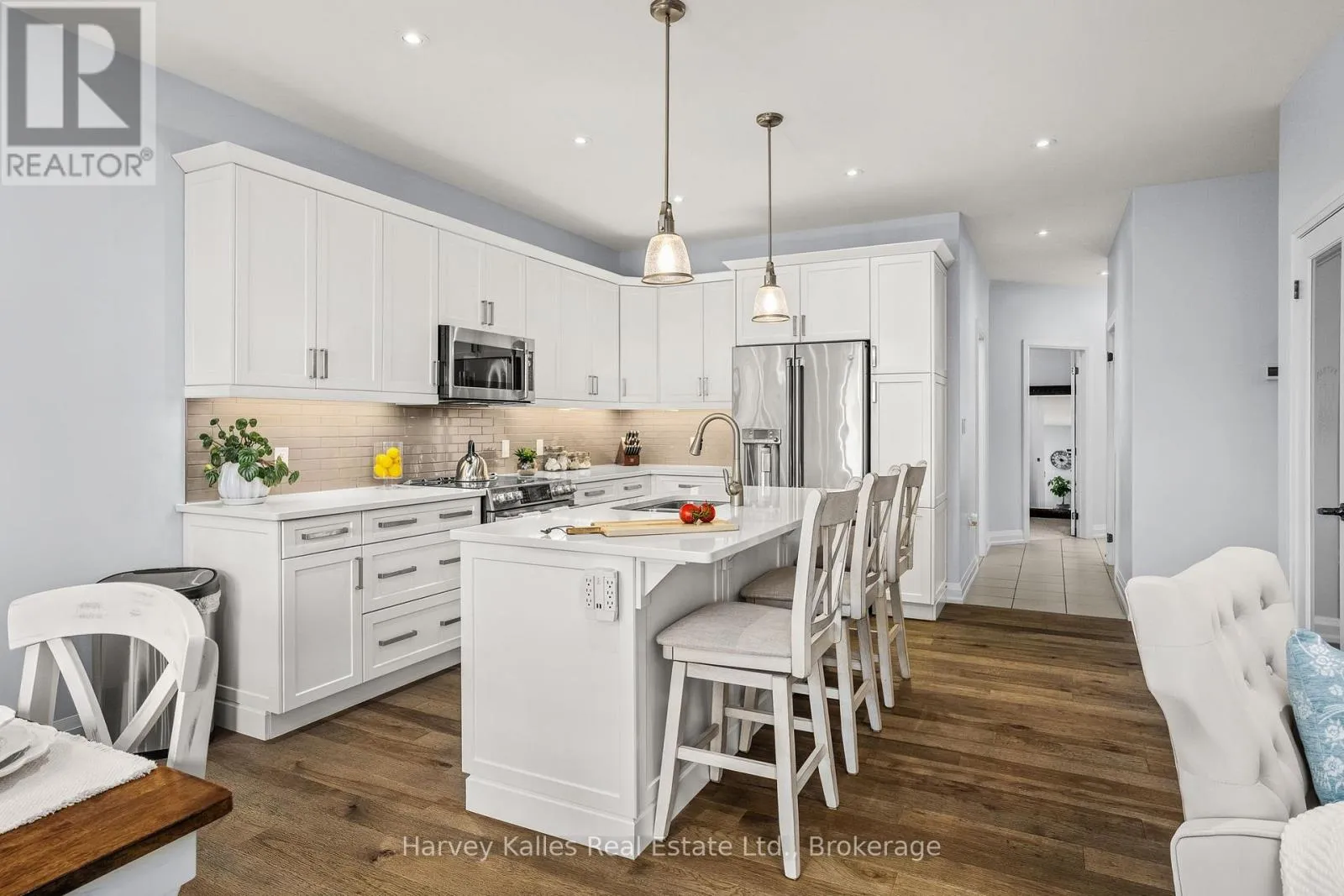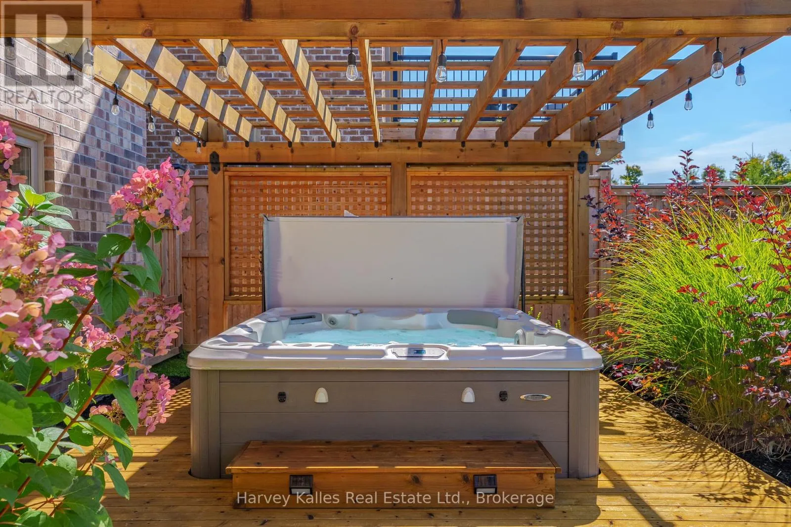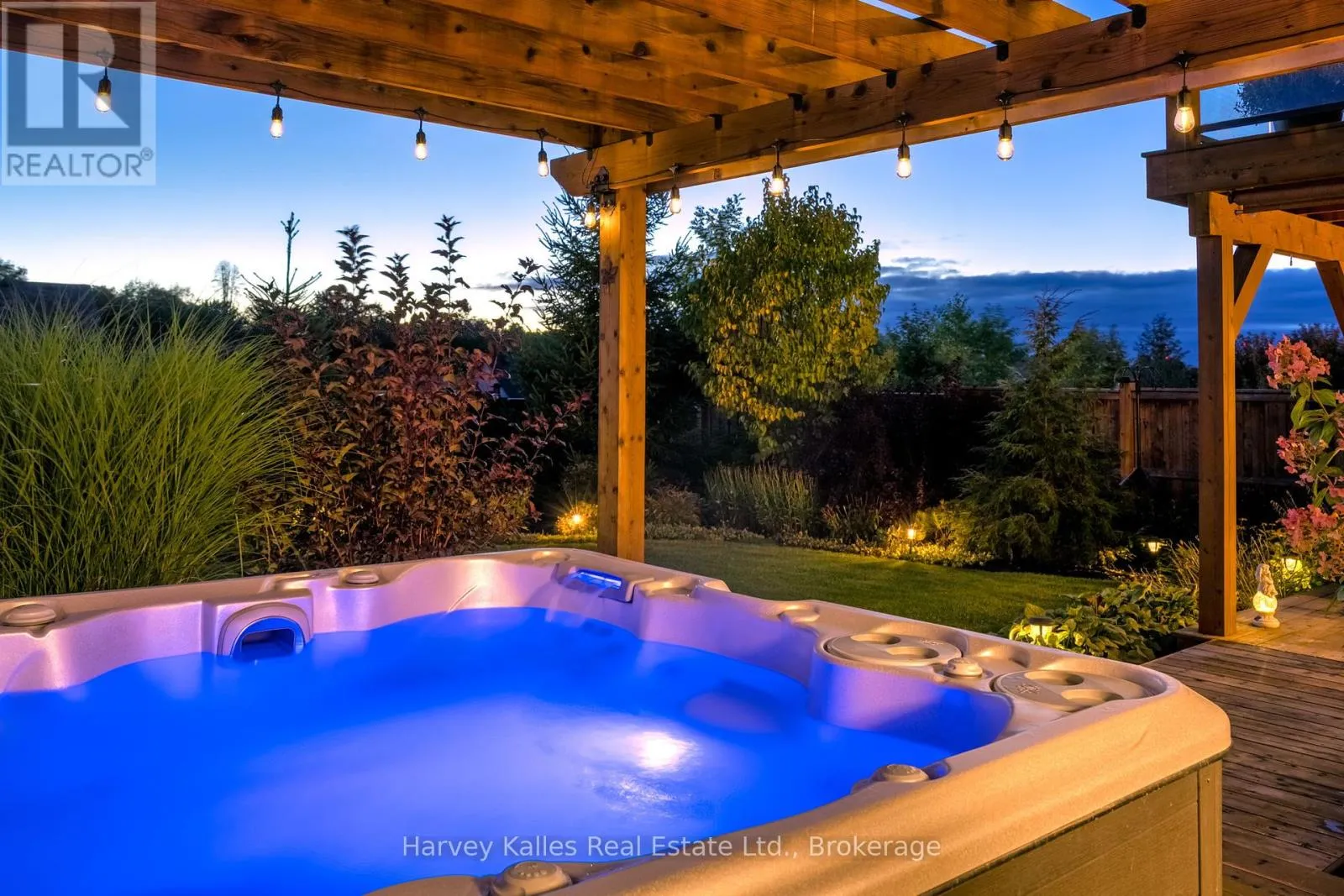 Cross Streets: Muskoka Road 3 North / Selkirk Drive. ** Directions: Muskoka Road #3 North Selkirk Drive Braeside Crescent. Situated in the highly sought-after Settlers Ridge community, this stunning 2700+sqft bungalow is the perfect blend of style, comfort, and sophistication. With its family-friendly location close to a park, elementary school, hospital, and just minutes from highways and downtown Huntsville, convenience is at your doorstep. Step inside to discover an open-concept layout designed for both everyday living and effortless entertaining. The heart of the home is the show-stopping kitchen, featuring quartz countertops, a sprawling island, abundant storage, and top-of-the-line GE Café appliances that bring both beauty and performance. The living room exudes warmth with its gas fireplace, while the dining area ideal for hosting family and friends flows seamlessly to a custom deck with sleek glass railings, creating the ultimate indoor-outdoor connection.Freshly painted and finished with engineered hardwood flooring throughout the main level, this home radiates modern elegance. The primary suite is a true retreat with a walk-in closet and 4-piece ensuite, complemented by upgraded vanities and designer lighting. Motorized blinds add a touch of luxury and convenience to the bright and airy spaces.The lower level is equally impressive, boasting a spacious recreation room, bright bedroom, a versatile den or additional bedroom, and a stylish 3-piece bath. From here, walk out to a fabulous outdoor seating area that overlooks your backyard sanctuary. Fully fenced for privacy and beautifully landscaped with mature perennial gardens, a pergola, and a hot tub, this outdoor haven feels like your own private resort. Every detail of this home has been meticulously maintained and thoughtfully upgraded, offering a lifestyle that is as functional as it is luxurious. Move in and experience a sanctuary where every day feels like a getaway. (id:27476)