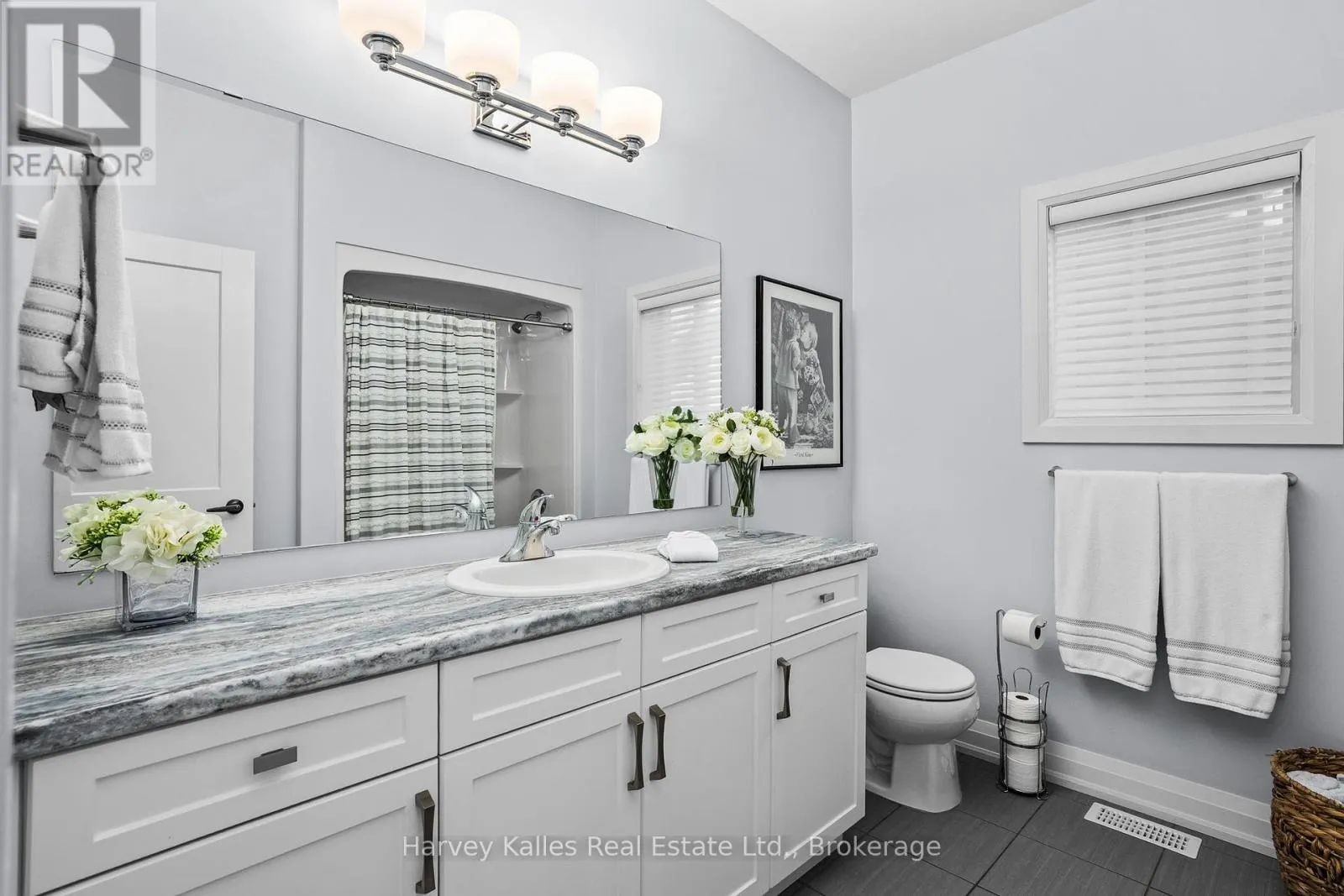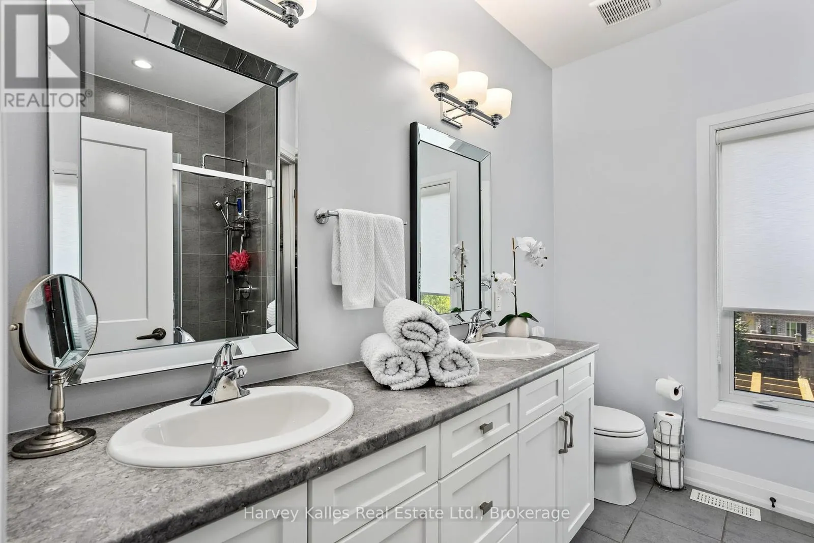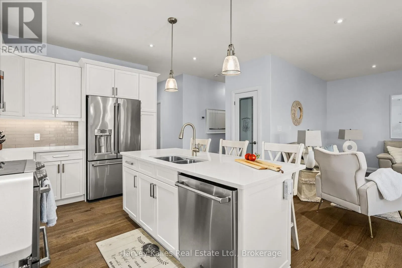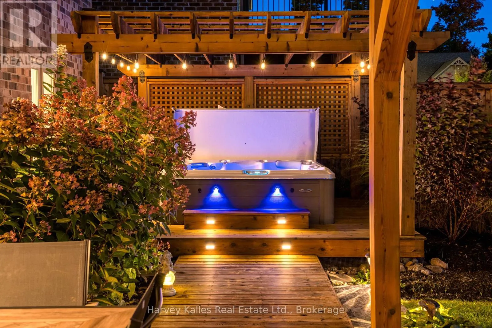 Cross Streets: Muskoka Road 3 North / Selkirk Drive. ** Directions: Muskoka Road #3 North Selkirk Drive Braeside Crescent. Situated in the highly sought-after Settlers Ridge community, this stunning 2700+sqft bungalow is the perfect blend of style, comfort, and sophistication. With its family-friendly location close to a park, elementary school, hospital, and just minutes from highways and downtown Huntsville, convenience is at your doorstep. Step inside to discover an open-concept layout designed for both everyday living and effortless entertaining. The heart of the home is the show-stopping kitchen, featuring quartz countertops, a sprawling island, abundant storage, and top-of-the-line GE Café appliances that bring both beauty and performance. The living room exudes warmth with its gas fireplace, while the dining area ideal for hosting family and friends flows seamlessly to a custom deck with sleek glass railings, creating the ultimate indoor-outdoor connection.Freshly painted and finished with engineered hardwood flooring throughout the main level, this home radiates modern elegance. The primary suite is a true retreat with a walk-in closet and 4-piece ensuite, complemented by upgraded vanities and designer lighting. Motorized blinds add a touch of luxury and convenience to the bright and airy spaces.The lower level is equally impressive, boasting a spacious recreation room, bright bedroom, a versatile den or additional bedroom, and a stylish 3-piece bath. From here, walk out to a fabulous outdoor seating area that overlooks your backyard sanctuary. Fully fenced for privacy and beautifully landscaped with mature perennial gardens, a pergola, and a hot tub, this outdoor haven feels like your own private resort. Every detail of this home has been meticulously maintained and thoughtfully upgraded, offering a lifestyle that is as functional as it is luxurious. Move in and experience a sanctuary where every day feels like a getaway. (id:27476)