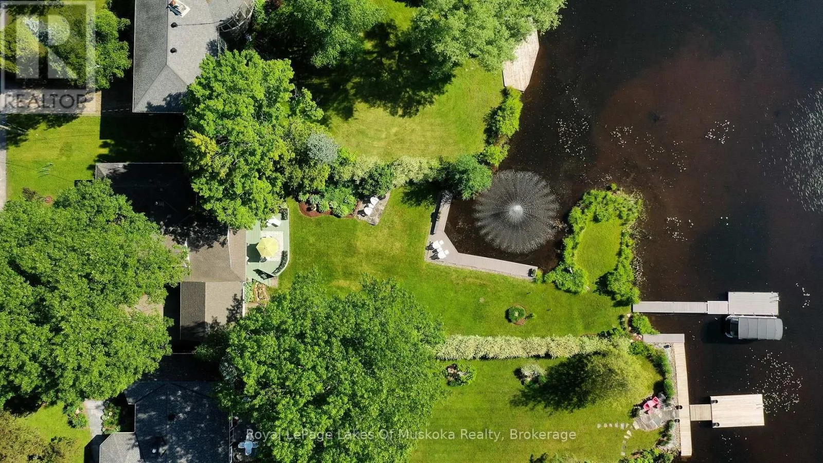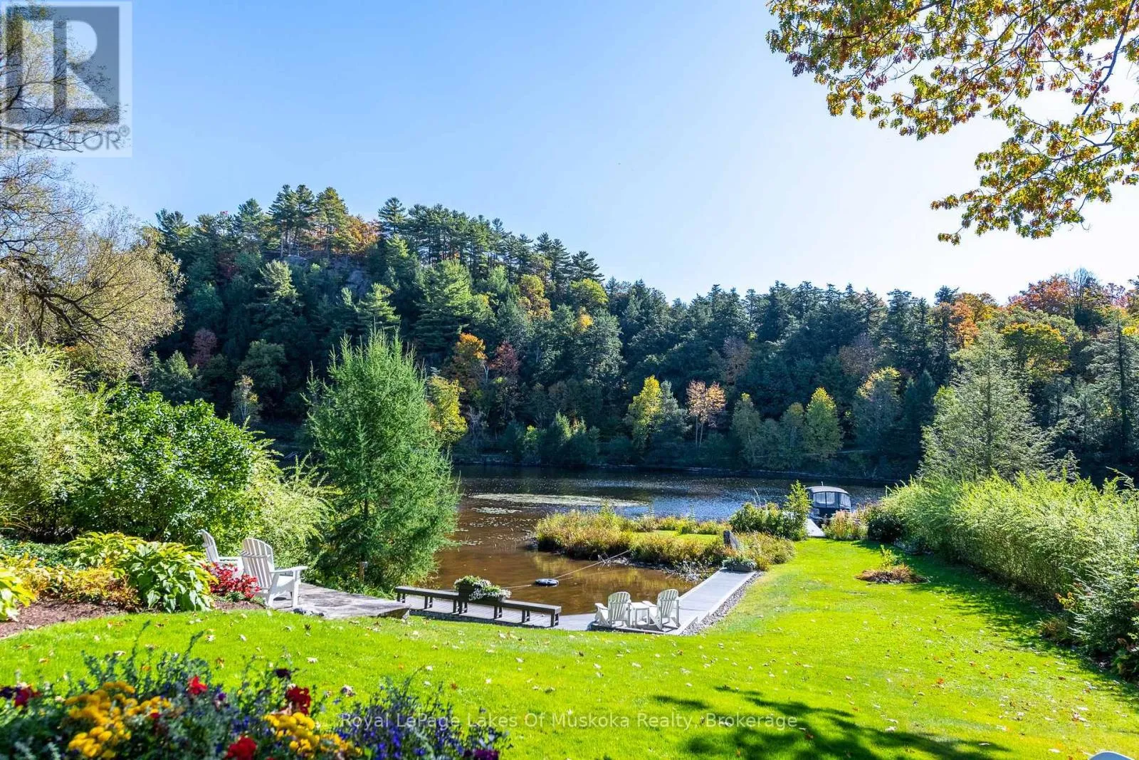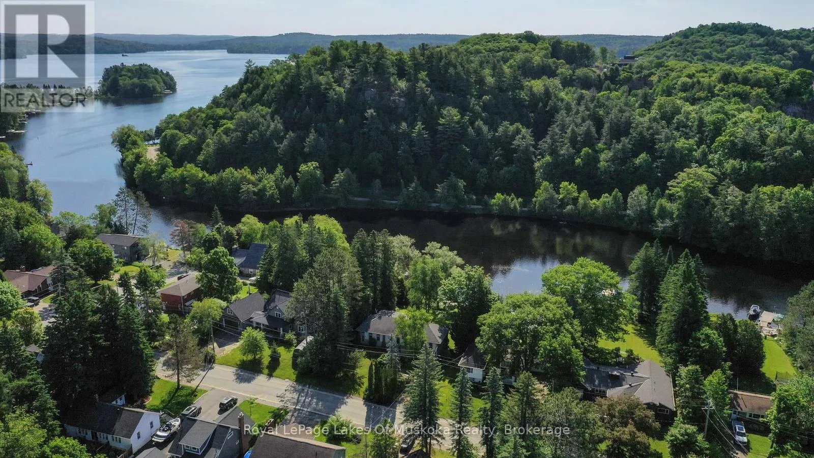 Cross Streets: Church. ** Directions: King William St to Church St turn right Mountview. Complete privacy featured on one of the best lots on Muskoka River on one of the quietest in town streets in Huntsville. The gently sloped thoughtfully and professionally landscaped property offers a private cove with a fabulous fountain and spectacular view of the Lookout mountain and Muskoka forest...you will forget you live only a couple of blocks to the vibrant downtown core. The lovely recreational residence is nestled back from the road and is a stand out from the street or the river. Beautiful 4 bedroom home has been a beloved family cottage for many years. The interior features the quintessential open concept primary rooms with vaulted ceilings and window wall overlooking your breathtaking property and riverfront. Living room with attractive gas fireplace, kitchen seating at counter, dining suitable for those who like to entertain, main level family or sitting room with views of your porch and gardens. Hardwood floors, front foyer with arched entry, bedrooms with corner windows to maximize natural light, are all thoughtful design features of this beautiful home. The 2nd level is an ideal office or kids room. Lower level features another bright beautiful room currently used as a bedroom but can be a gym, office or whatever you may need. The double car garage has a rear door for lawn mower, kayaks, etc. The lot features a private cove with a high end composite walkway around it and an idyllic fountain in the middle. The dock is also composite and has ample space for your boat parking. There is a large patio on the riverside for dining and bbqing. Another granite sitting area is for thoughtful viewing of the panoramic views that you will want to take in with your coffee or glass of wine. The lot, the residence, and the views create a rare package that is difficult to find. This one of a kind opportunity includes some furnishings and could be available for you to enjoy mid August or after. (id:27476)