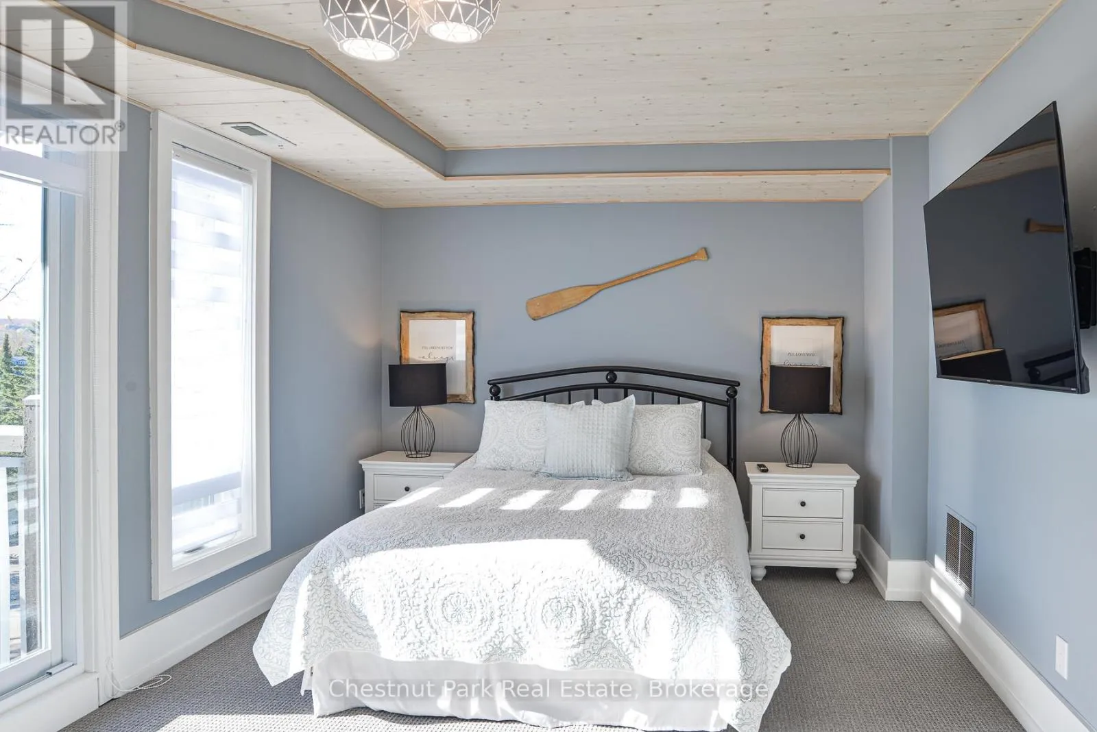 Cross Streets: Deerhurst Drive & Ski Club Road. ** Directions: Deerhurst to Ski Club Road / Valley Road or Hidden Valley Road to Skyline Drive / Chalet Crescent to Turner Drive (Brown Condo Buildings Adjacent to Hidden Valley Resort) to #4. SKI SEASON IS RIGHT AROUND THE CORNER & there is no better place to enjoy it than right here at 4 Turner Drive! WHETHER YOU CHOOSE TO LIVE, WORK OR PLAY AT THIS BEAUTIFUL HIDDEN VALLEY LAKESIDE CHALET - IT COMES COMPLETELY FURNISHED, TURN-KEY & READY TO ENJOY! Discover this beautifully renovated (2022), 3+ bedroom, 2 bathroom condo with sweeping views of PENINSULA LAKE. Mere minutes from Huntsville amenities in the highly sought-after Hidden Valley area, this year round gem is just steps from both the lakefront & Hidden Valley Highlands Ski Area, making it an incredible ski chalet or 4-seasons retreat. With nearby golf courses, hiking trails, charming local dining & shopping, this location is perfect for those seeking a true Muskoka escape or a SMART INVESTMENT OPPORTUNITY. From the moment you step inside, you will appreciate the craftsmanship, attention to detail & thoughtful layout. Main floor boasts 2 spacious bedrooms & 4-piece bath - perfectly suited to provide maximum privacy for family & guests. The second floor features an open concept living area with a custom crafted & fully equipped kitchen (appliances included), a welcoming dining space, a cozy great room with a wood-burning fireplace, plus the added convenience of in-suite laundry. BONUS SITTING ROOM off of the kitchen is an ideal space for a large HOME OFFICE, or potential creation of a 4TH BEDROOM. The private penthouse level boasts an oversized primary bedroom suite, complete with a gorgeous 3-piece ensuite & custom closets (be sure not to miss the huge storage area behind the wall-to-wall closet - GREAT MULTI-SEASON STORAGE for your skis, paddle boards, golf clubs, etc). Ready to MOVE IN & ENJOY from day one, this extremely well appointed offering also offers 3 private balconies to take in those peaceful Peninsula Lake views. With DEEDED ACCESS TO A PRIVATE BEACH and the option to rent a BOAT SLIP, this is a rare opportunity to own a hassle-free Muskoka property designed for every season. Call today (id:27476)
