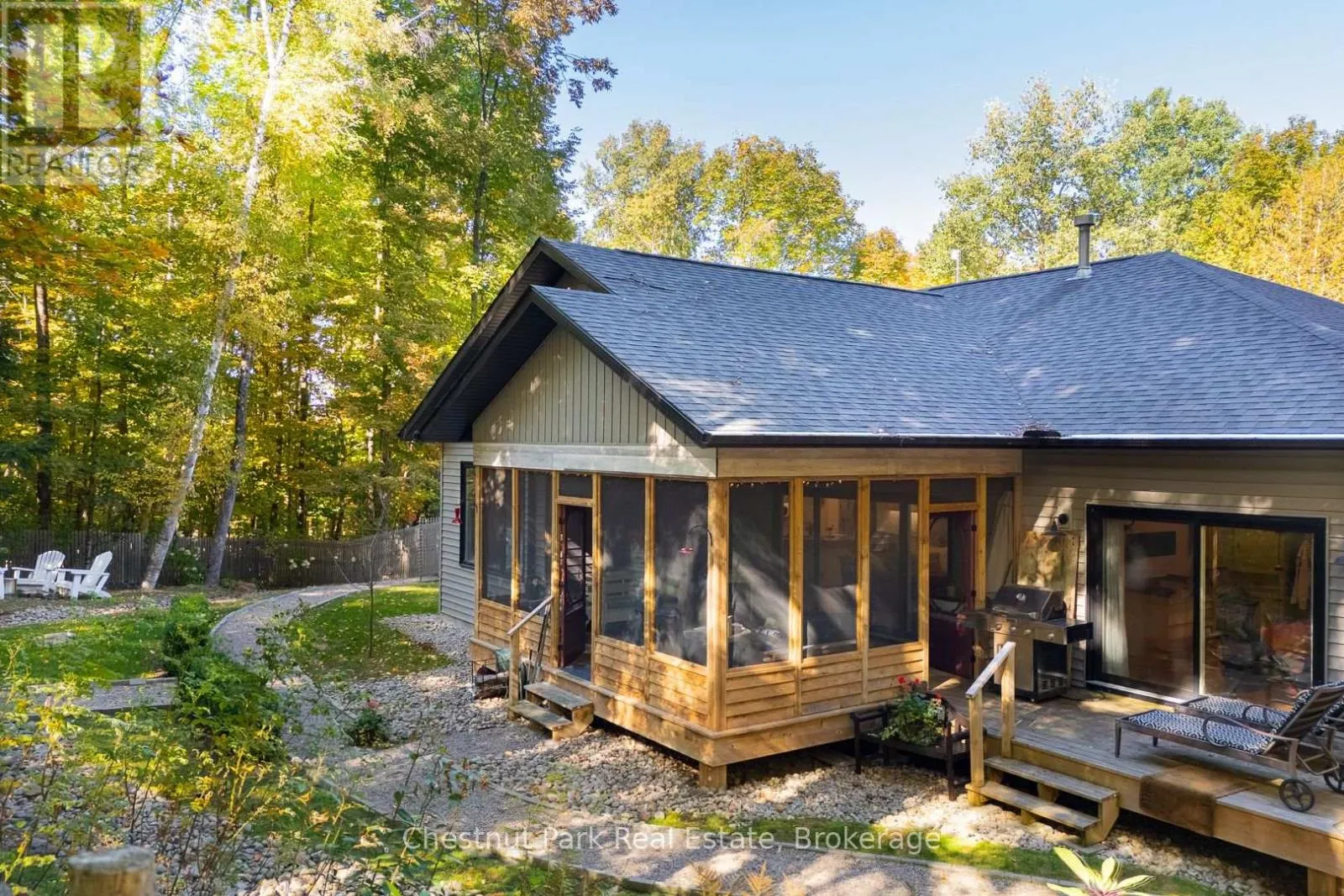 Brunel Road to West Browns Road, to Springfield Road. #170 SOP. Welcome to 170 Springfield Rd., a stunning newer constructed three-bedroom home situated in an ideal location, just seven minutes from downtown Huntsville. This property offers the perfect blend of convenience and tranquility, with easy access to world-class golf courses, high- end restaurants, and excellent shopping options. As you step inside, you'll be greeted by a beautiful and open floor plan, approx. 2,641 sq. ft., highlighted by a captivating double-sided stone fireplace. This focal point adds a touch of elegance and warmth, creating a cozy atmosphere throughout this home. The spacious living room seamlessly connects to the fireplace and overlooks the screened in Muskoka room, providing a seamless flow for entertaining and relaxation. The property sits on a generous sized lot with just under 3 acres, featuring a beautifully landscaped backyard and a private meandering drive. Beyond the backyard, you'll find a peaceful tree forest, offering a serene backdrop and added privacy. Home comes with an automatic full home generator. The crawl space is 4 ft high and offers dry storage. Don't miss the opportunity to make this exquisite home your own. Contact today to schedule a viewing and experience the best of Huntsville living! (id:27476)