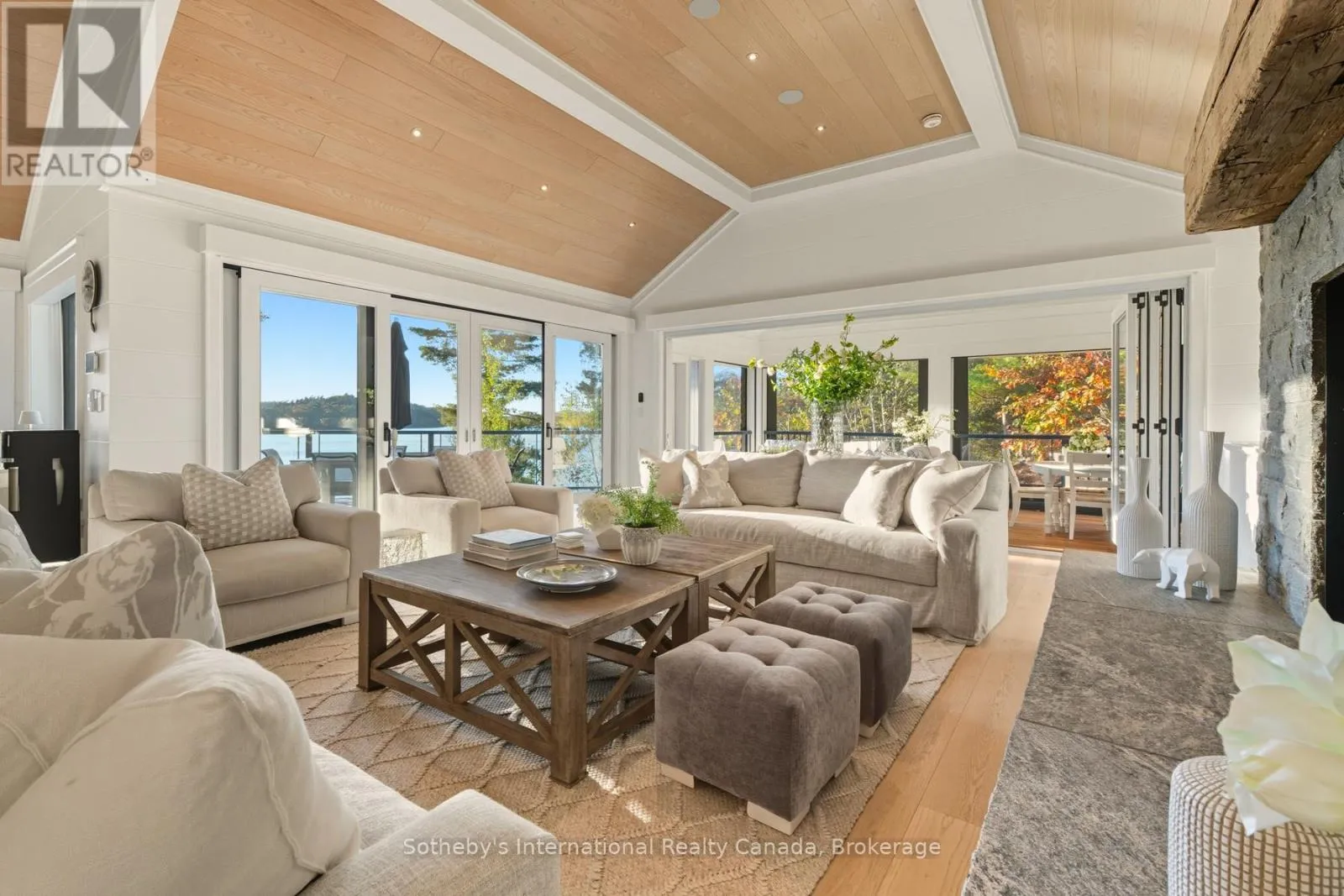 Cross Streets: not applicable. ** Directions: marina at 143 south drive to property. Embrace breathtaking sunsets with over 650 feet of southwest-facing frontage on beautiful Lake Vernon. This fully automated six-bedroom, five-bathroom cottage is a perfect retreat for families and entertaining. Step inside to a spacious layout designed for stunning water views. The large kitchen, living, and dining areas ensure you capture the beauty of the lake from every angle. The main level features a luxurious primary suite with windows on three sides, his and hers vanities, a separate water closet, and a walk-in closet. A guest suite with an en-suite offers added privacy. Downstairs, four additional bedrooms and two bathrooms provide ample space for family and friends. Enjoy seamless indoor-outdoor living with multiple heat-treated ash decks outfitted with motorized screens, transforming your Muskoka room into an open-air deck at the touch of a button. For boating enthusiasts, a covered boat port and oversized dock await you, perfect for sunset cocktails or lounging by the shore. A charming tree grows through the deck, adding unique character, and an inclinator is conveniently available for easy access to drinks....no heavy lifting required! The cottage is heated and cooled by a modern heat pump, eliminating the need for frequent propane refills. Located just a one-minute boat ride from the marina, 800 Big Island is not just a cottage; its a magical retreat you have to see to believe. Schedule your visit today! (id:27476)