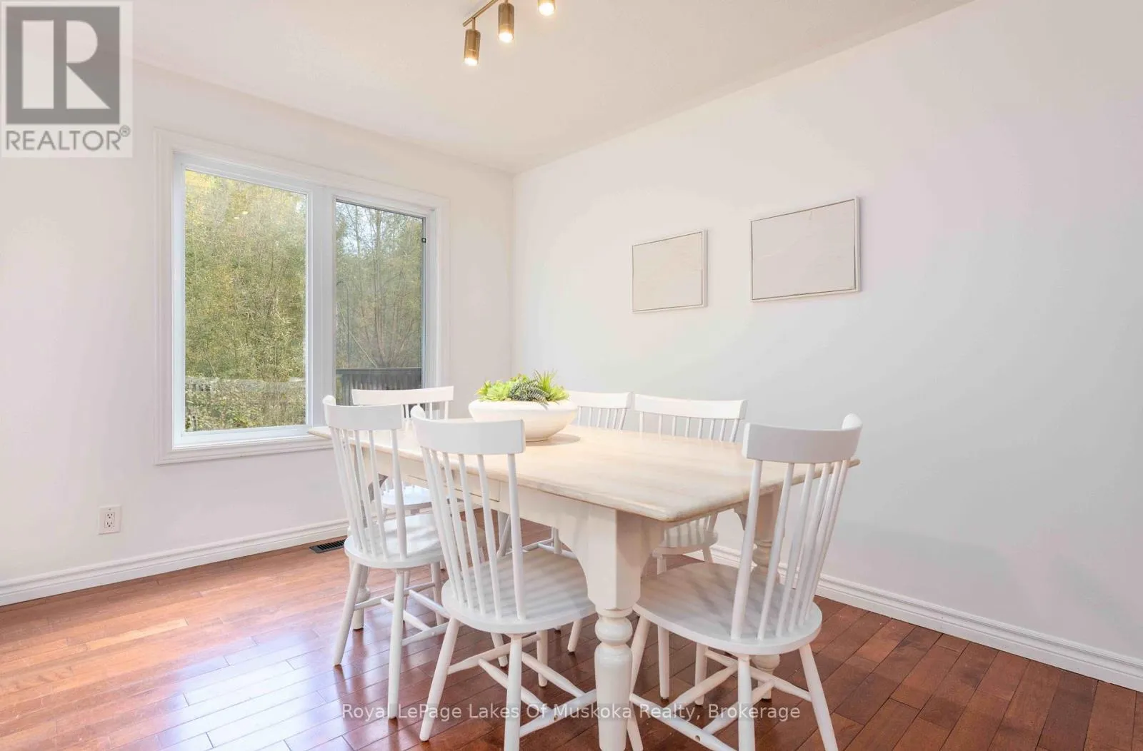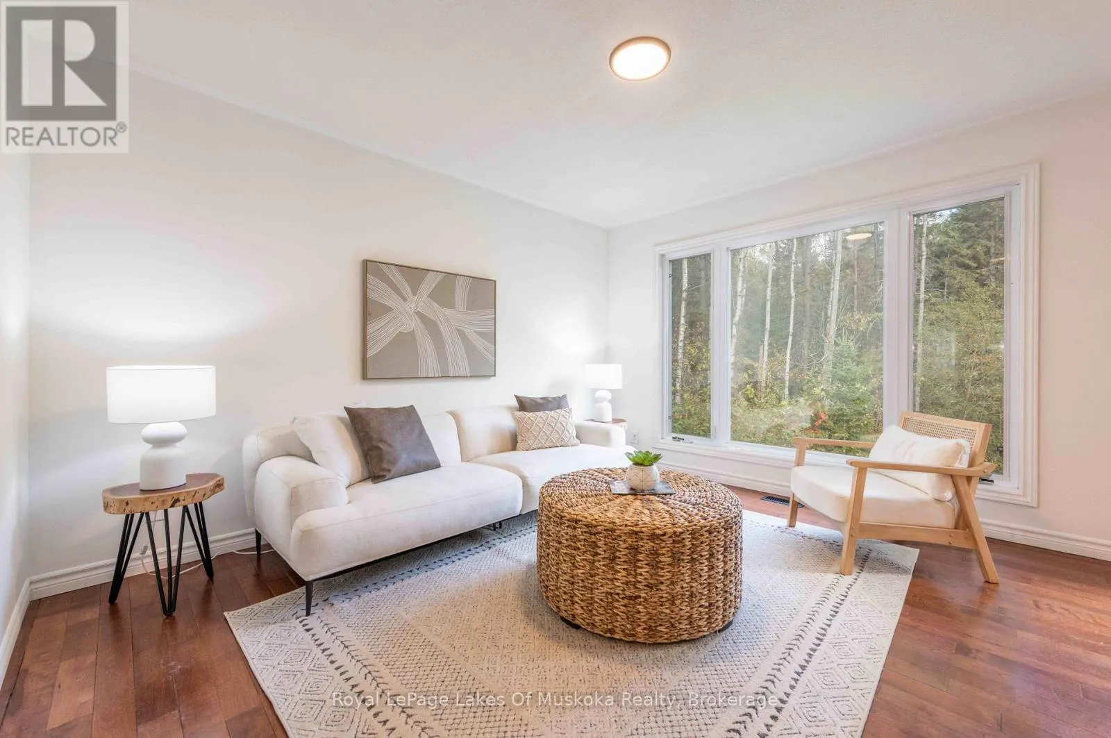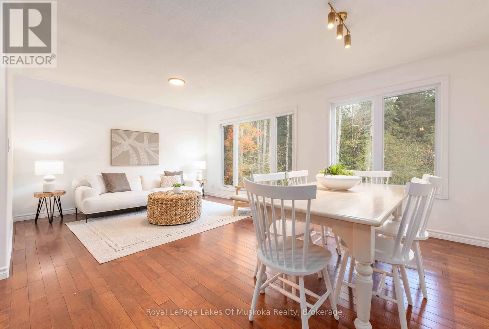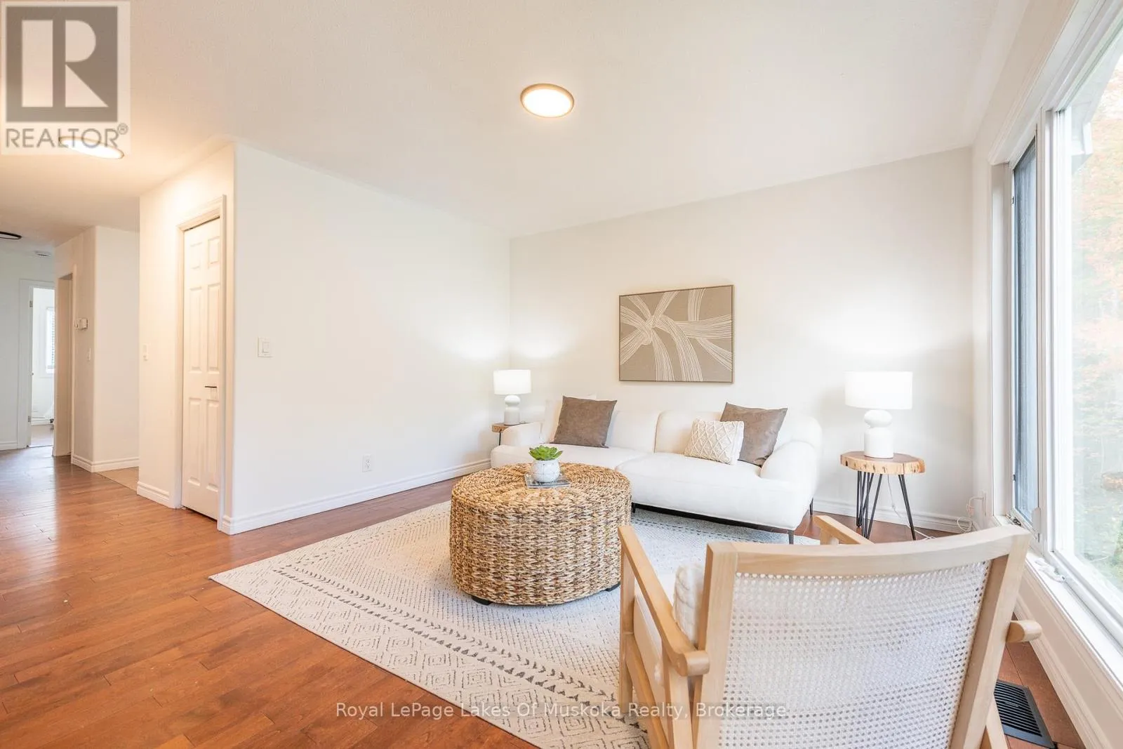Cross Streets: Muskoka Rd 3. ** Directions: Muskoka Rd 3 N, right onto Chaffey Township Rd, to #134 SOP. Wonderful Semi-Detached home, close to Huntsville with a back yard that is perfect for cosy campfires! This 2 bedroom, 2 den residence is an absolute pleasure to view. Sunlit main level with open spacious living and dining with hardwood flooring. Kitchen features ample cabinets and stainless appliances. The attractive lower level walkout has a sliding patio door leading to the rear yard. This level features a family room, a newer 3 piece bathroom with large tile and glass shower. Two dens at the end of the hallway can be used to suit the buyers needs but are currently staged as a gym and an office. This is not a legal apartment. This home boasts a new furnace installed within the last 5 years with central air, municipal water and sewer, vinyl siding for low maintenance, and close to amenities for ease of convenience! (id:27476)