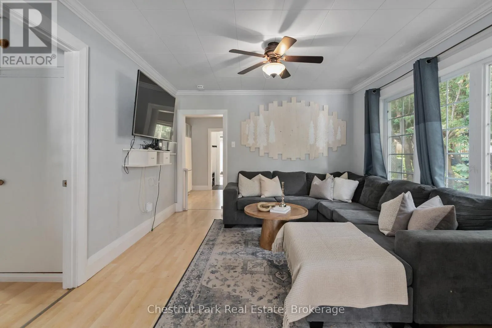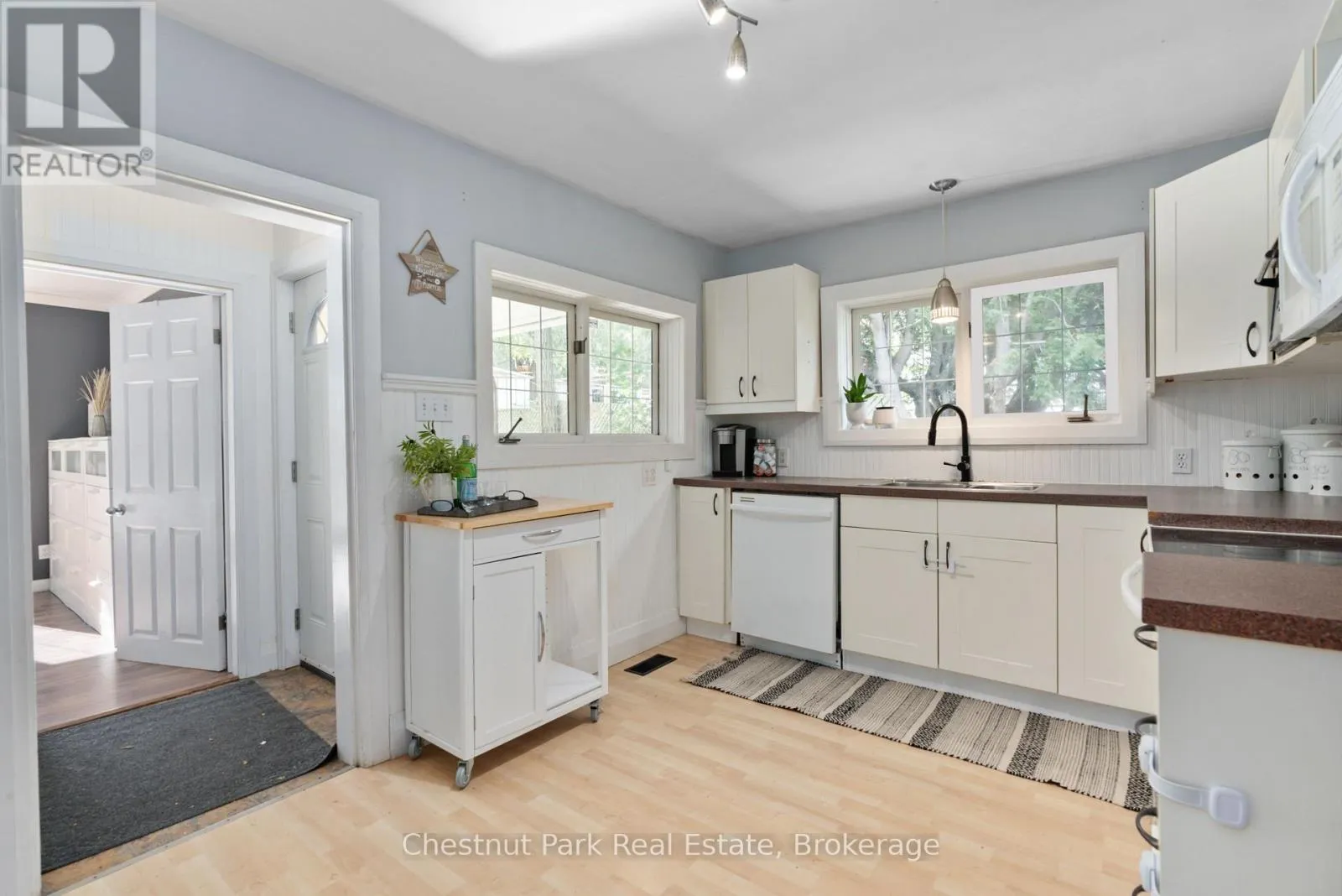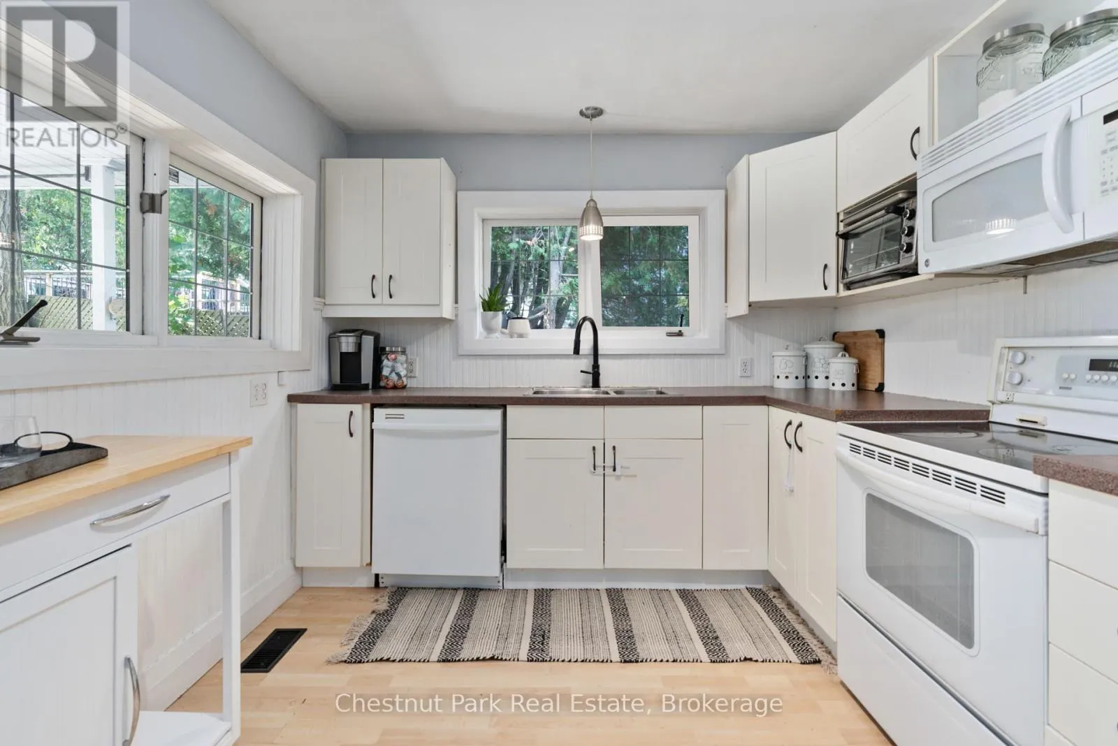 Main Street W to Centre St S to Cora St E. #3 SOP Welcome to this cute-as-a-button in-town bungalow, ideal for first-time home buyers or those looking to downsize! This approx. 1046 sq. ft, 3-bedroom, 2 bathroom home is ideally situated in a superb location, just a short walk from both elementary and secondary schools, as well as Huntsville's bustling downtown core. With its traditional layout featuring a cozy living room and dining room, this home offers comfortable one-level living with fresh updates throughout. Kitchen upgrades include new appliances such as refrigerator, stove, microwave and dishwasher. A brand new central air conditioner has also been installed. A noteworthy feature of this home includes the floor to ceiling windows in the primary bedroom through which are views of the backyard space. Step outside to enjoy the partially fenced, private backyard, a great space for kids to play or for pets to roam freely. If you're in the mood for some outdoor fun, Rivermill Park is just a short walk away, complete with a playground for little ones to enjoy. Whether you're a young family starting your homeownership journey or an empty nester looking for a more manageable space, this home offers the best of in town living and full municipal services! (id:27476)