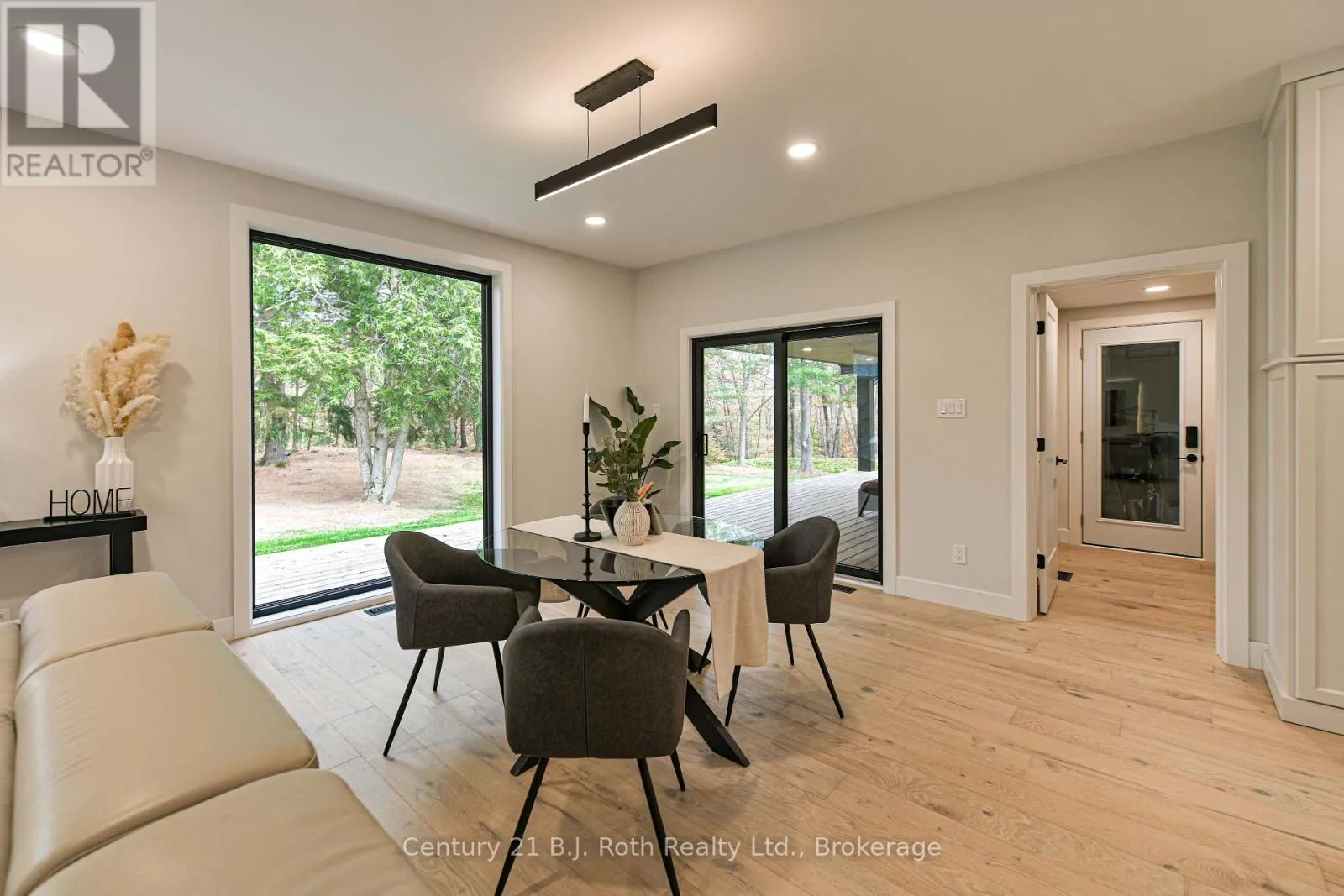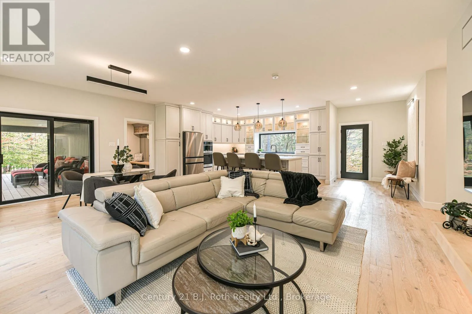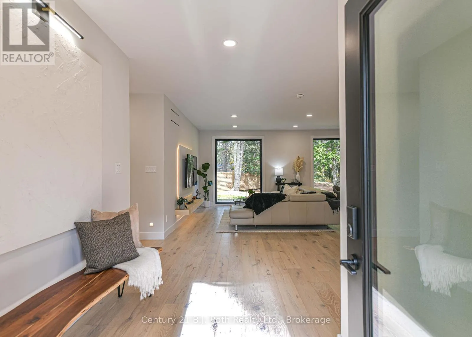 Cross Streets: Muskoka Rd. 2 & South Waseosa Lake Rd. ** Directions: From Orillia: 11N, left on Muskoka Rd 2, right on S. Waseosa Lake Rd to SOP. In the prestigious community of Huntsville, this home is your gateway to a dynamic lifestyle, complete with trendy restaurants, parks and cultural hotspots. A striking blend of luxury and modern design set on 4.3 acres of pure treed serenity. Enjoy over 2000 sq. ft of one floor living, .this bungalow has been tastefully renovated with sleek finishes such as engineered hardwood throughout and floor to ceiling windows that flood the space with natural light. Step onto your covered back deck and enjoy your morning coffee surrounded by breathtaking views and peaceful wildlife. Some major upgrades include 1100 sq ft addition with a heated double car garage, new septic system, furnace, air conditioning, HRV system, kitchen, bathrooms, windows, doors, covered deck, eaves, soffit, facia, roof, siding, property grading and new crushed granite circular driveway. Sit back, relax and enjoy this home for years to come. Don't miss your chance to own this one-of-a-kind sanctuary - book your private tour today! (id:27476)