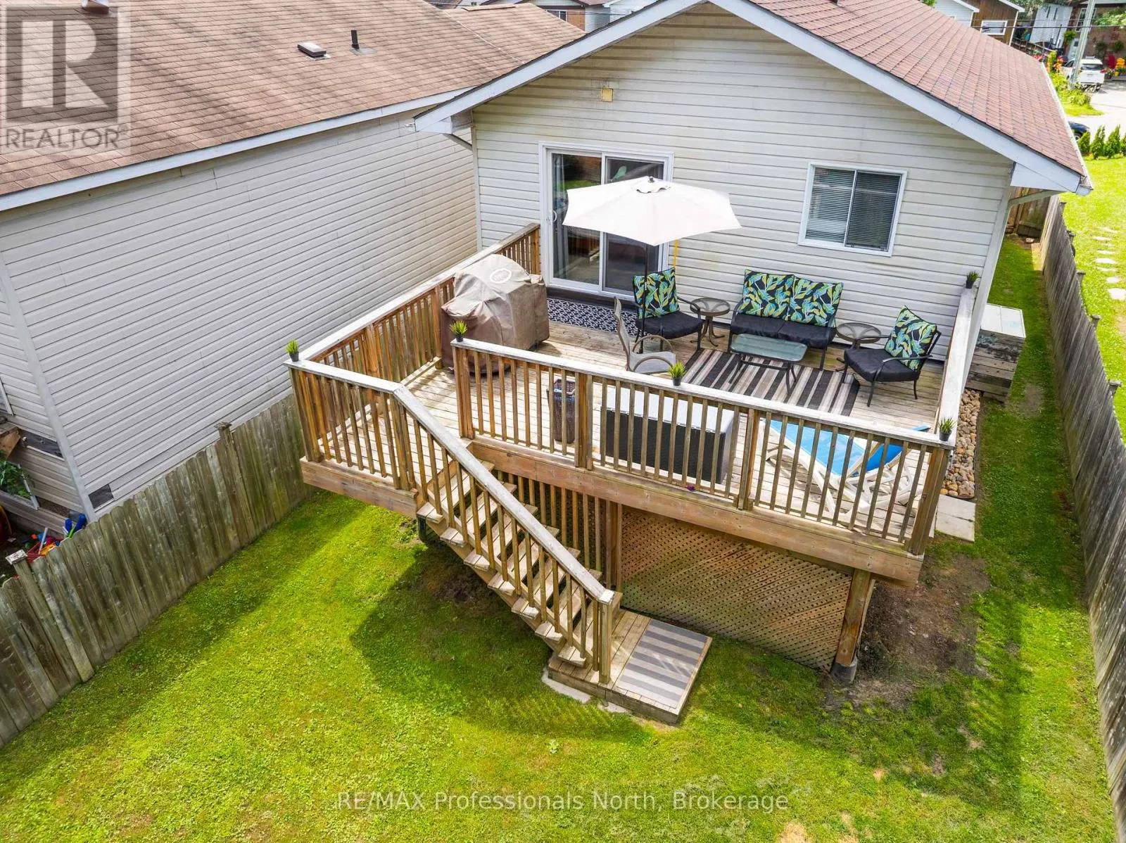 Cross Streets: Iris. ** Directions: West Road, left on Iris, right onto Sabrina Drive. Welcome to this delightful in-town home, ideally located in a family-friendly neighbourhood just a short stroll from shopping, restaurants, schools, and Huntsville's vibrant downtown and beautiful River Mill waterfront park. This home offers the perfect blend of comfort and functionality, starting with a versatile front sunroom or mudroom -your choice! Walk out to the sunny back deck and fully fenced, level backyard that is ideal for kids, pets, and outdoor entertaining. With two full bathrooms and a finished lower-level family room warmed by a cozy gas stove, there's plenty of space for the whole family to relax and unwind. Efficient natural gas heating, central air conditioning, and municipal services provide year-round comfort and convenience. Don't miss this opportunity to live in a walkable community setting while enjoying all the benefits of a move-in ready home with flexible living space and a great yard with shed. Perfect for storage. (id:27476)