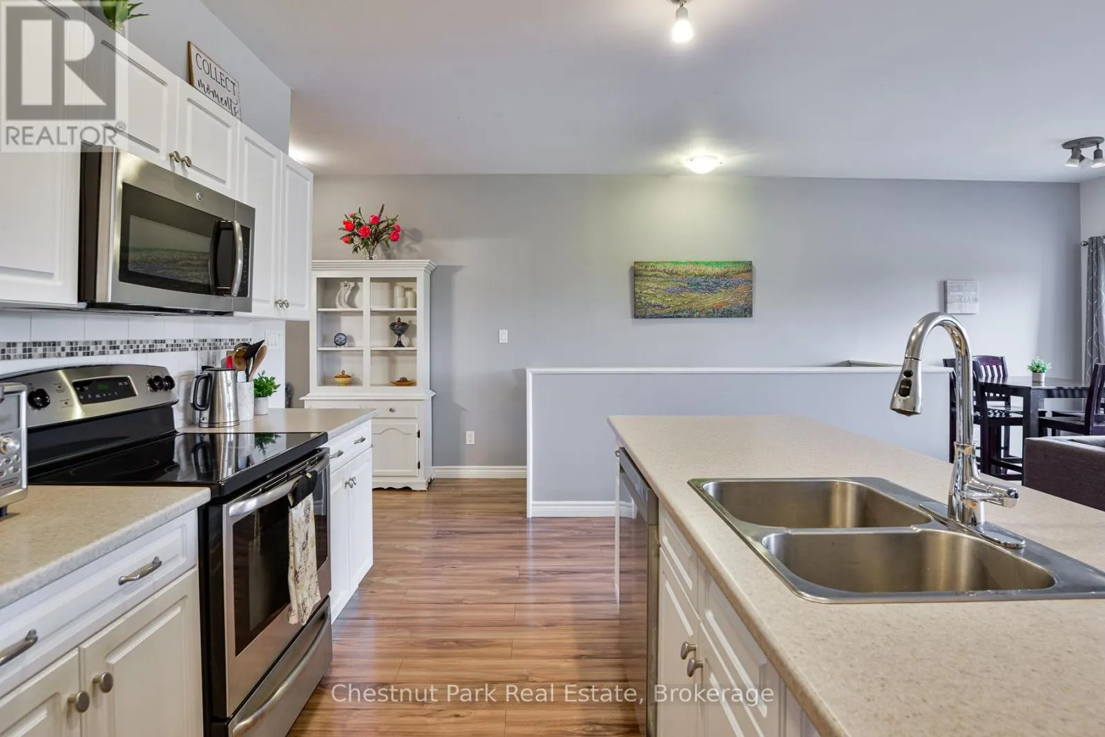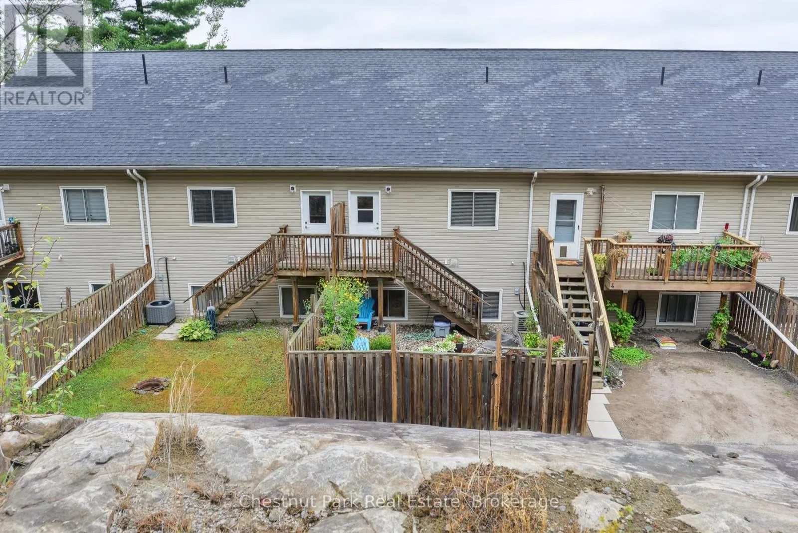 Cross Streets: Main St. W & Hwy 11. ** Directions: Hwy 11 to Main St. W to #99 - Unit 5. MOVE-IN READY TOWNHOME, located close to downtown Huntsville, offers the perfect mix of MUSKOKA CHARM, modern comfort, and everyday CONVENIENCE. Enjoy picturesque WATERFRONT VIEWS of Hunters Bay in this unbeatable location - just a short walk to Avery Beach and the Hunters Bay Trail - its so easy to enjoy the best of both nature and edge of town living. Inside, the home features a thoughtful layout with a bright and spacious 2-bedroom, 1-bath arrangement on the main floor, complemented by an additional bedroom with ensuite bathroom upstairs. The flexible floor plan works beautifully for families, first-time buyers, or those looking to downsize into a low-maintenance space without sacrificing comfort. Built with ICF construction for lasting durability and energy efficiency, the home has been well maintained and clearly cared for. The backyard has been transformed into a charming garden space, fully fenced for privacy, and perfect for outdoor enjoyment along with dedicated space for cultivating your own vegetables and flowers. Additional conveniences include on-site parking to accommodate 2 vehicles for extended family and friends (or renters if desired), plus the garage for inside parking and extra storage, all in a location that makes everyday errands and recreation effortless. From leisurely walks along the Hunters Bay Trail to evenings by the water, this property places you right at the centre of it all. With its rare combination of prime location, versatile layout, and low-maintenance lifestyle, this Main Street townhouse is an excellent choice for buyers seeking a home, a Muskoka retreat, or a smart investment in one of the regions most desirable communities. Call today for more information or to book your private tour of this absolute gem. Flexible closing available. (id:27476)