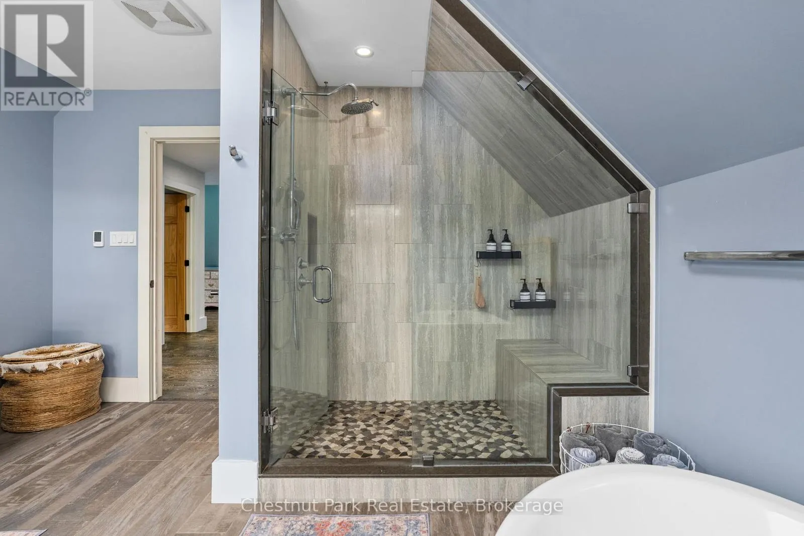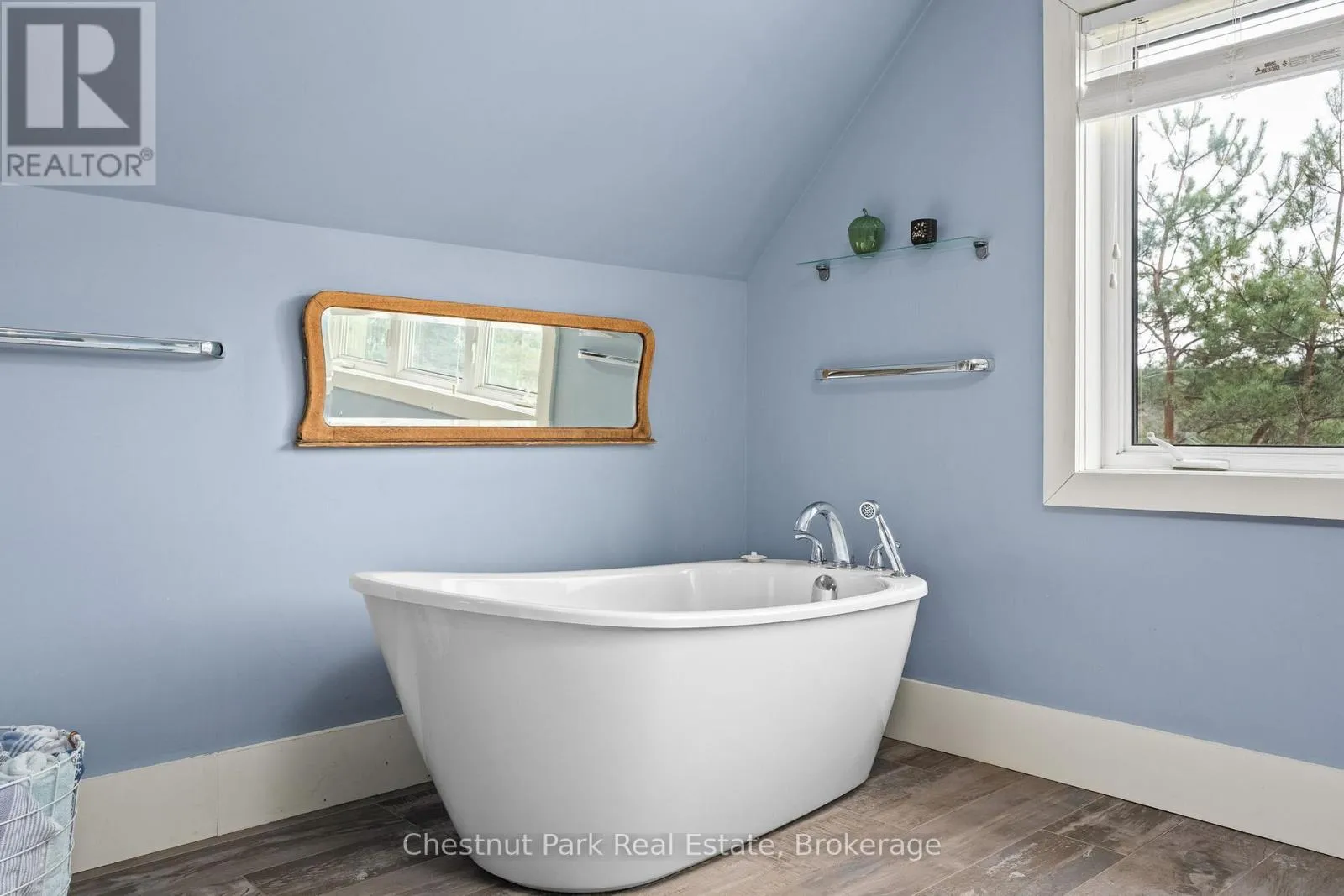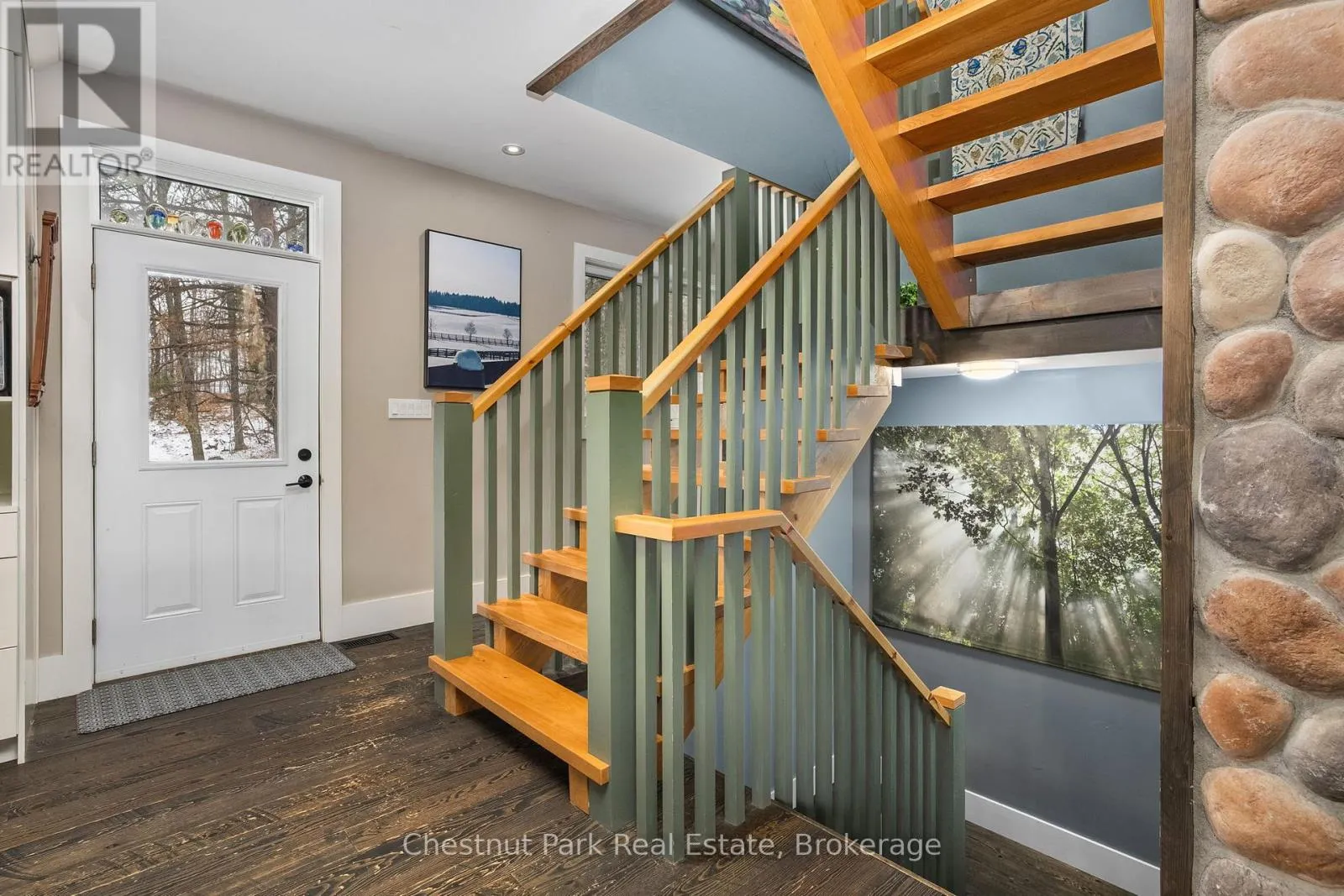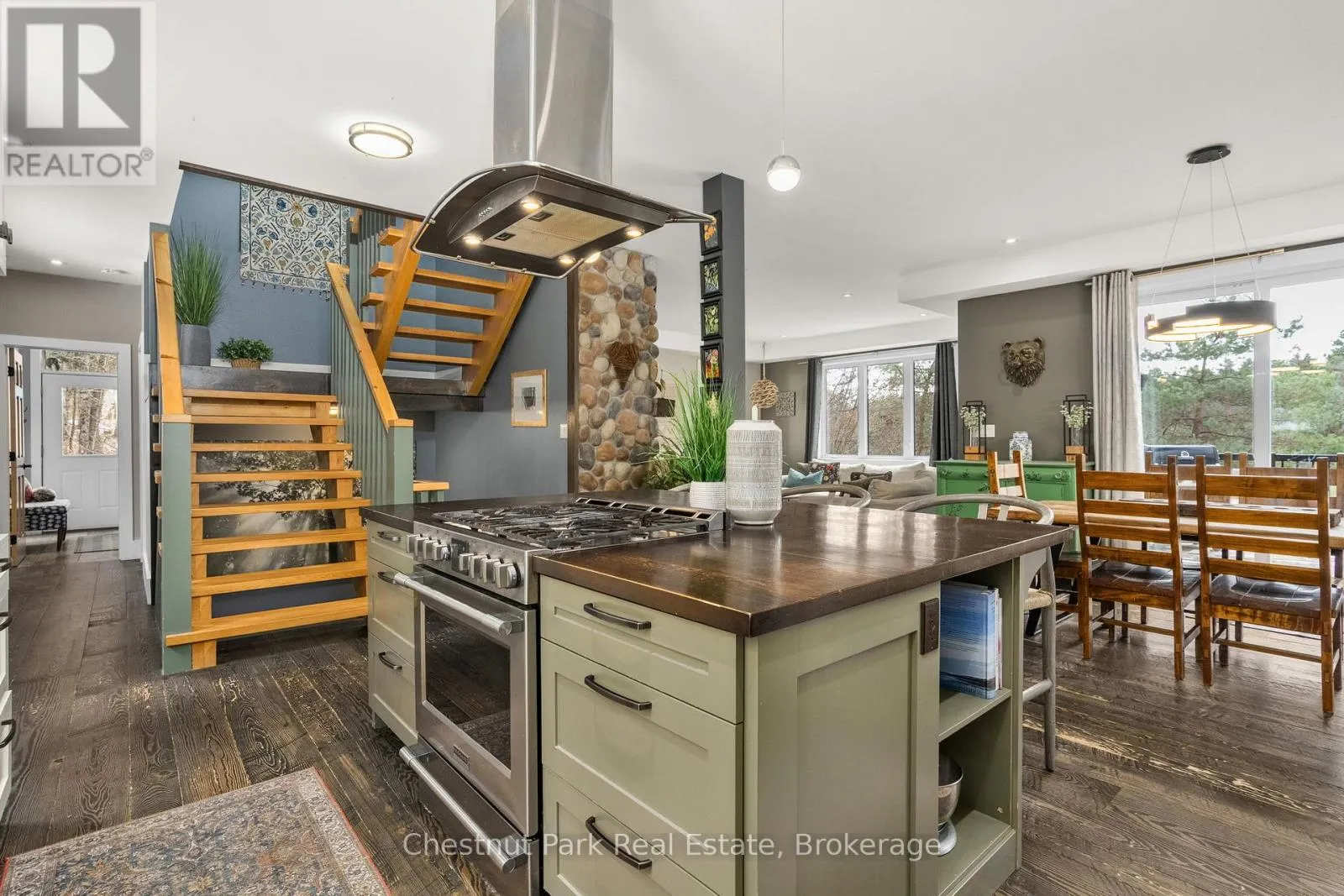 Cross Streets: Aspdin Road. ** Directions: Hwy 11 to Aspdin Road to Etwell Drive. #1555. SOP. Welcome to 1555 Etwell Road, Huntsville-an exceptional custom-built 2,988 sq. ft. retreat set on 90 acres, where refined upgrades meet a relaxed, kick-your-shoes-off Muskoka lifestyle. Built in 2017 with remarkable attention to detail, this home features an inviting open-concept main floor with a beautifully upgraded kitchen, spacious dining area, and a warm great room anchored by a stunning river rock wood-burning fireplace. Large windows frame serene views of rolling fields and the forest beyond, enhancing the home's peaceful ambiance. A charming three-season Muskoka room extends the living space and is perfect for morning coffee or evening gatherings. Upstairs, the primary bedroom feels like a private sanctuary with its own balcony and cozy dormer sitting area, while the spa-inspired 5-piece bathroom offers double sinks, a glass shower, and a luxurious soaker tub. A second generously sized bedroom completes this level. The ground floor features a professionally renovated (2022) walkout basement that adds stylish, functional living space. The spacious recreation room is ideal for a games area, home gym, or family space, and two additional bedrooms, one with a walkout to the yard and provides excellent versatility for guests or extended family. A circular driveway framed by mature trees sets the tone for the tranquility and natural beauty surrounding the home. The 90-acre property includes hardwood and softwood forests, open meadows, a dramatic exposed granite ridge, and miles of trails to explore-perfect for outdoor enthusiasts and abundant wildlife. Whether you're seeking a year-round residence or a peaceful Muskoka getaway with room to roam, this exceptional property offers high-end comfort, relaxed charm, and convenient access to Huntsville's shops, schools, and amenities. A rare offering that truly must be experienced to be appreciated. (id:27476)